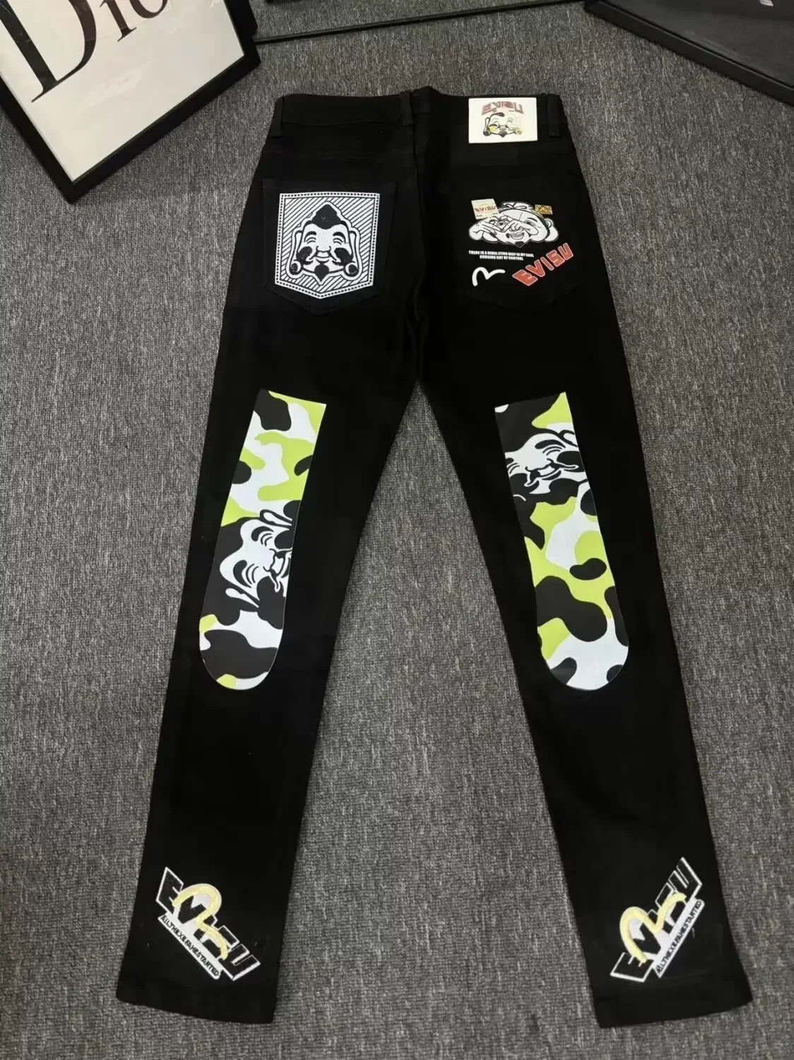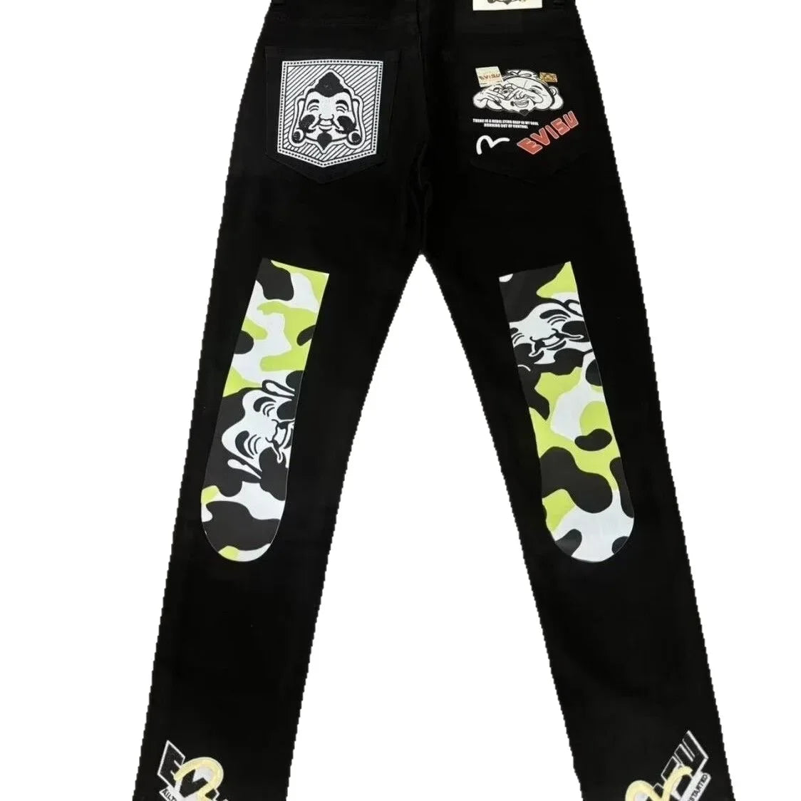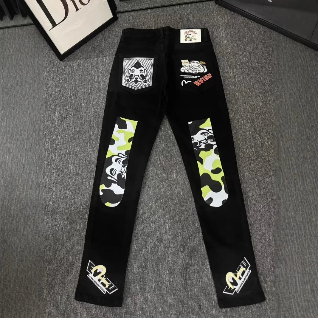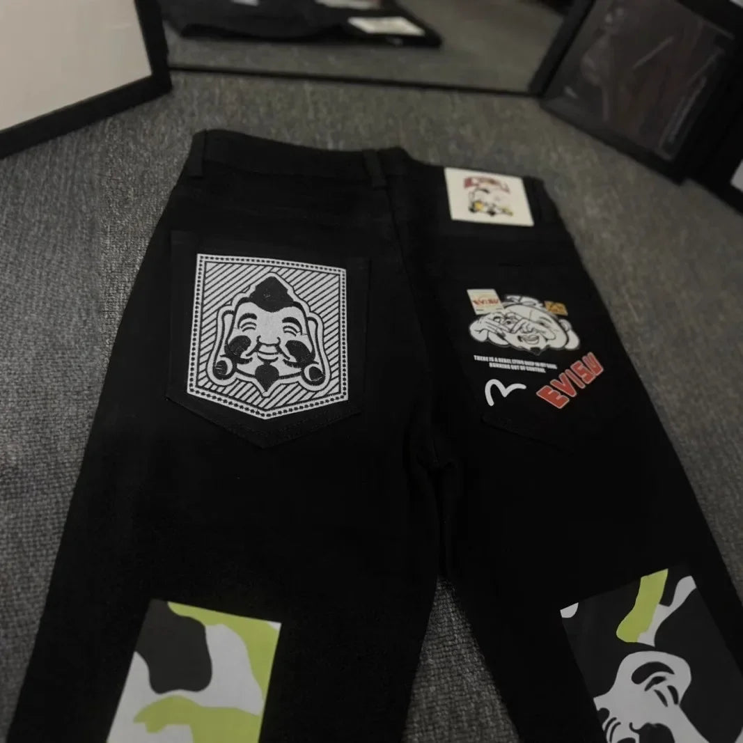 Hiphop-stijl herenjeans met rechte pijpen en lange broek met bedrukte letters...
