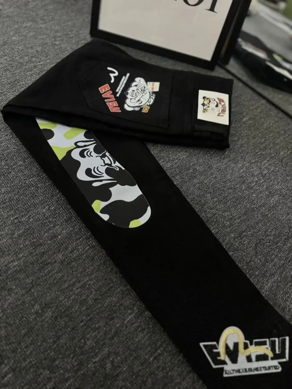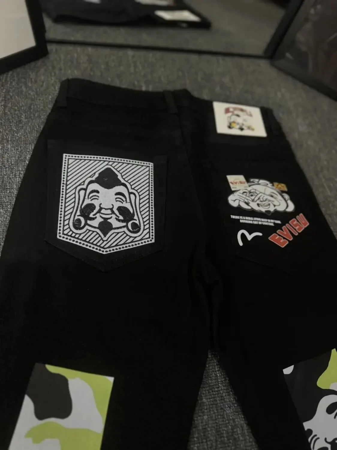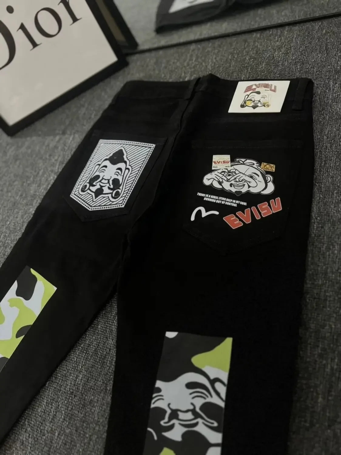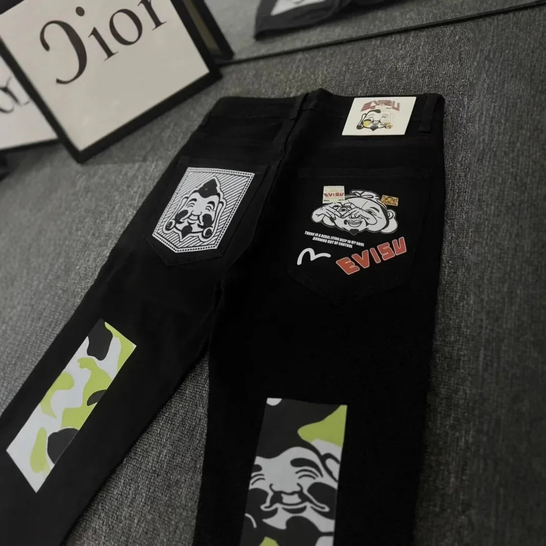 Hiphop-stijl herenjeans met rechte pijpen en lange broek met bedrukte letters...