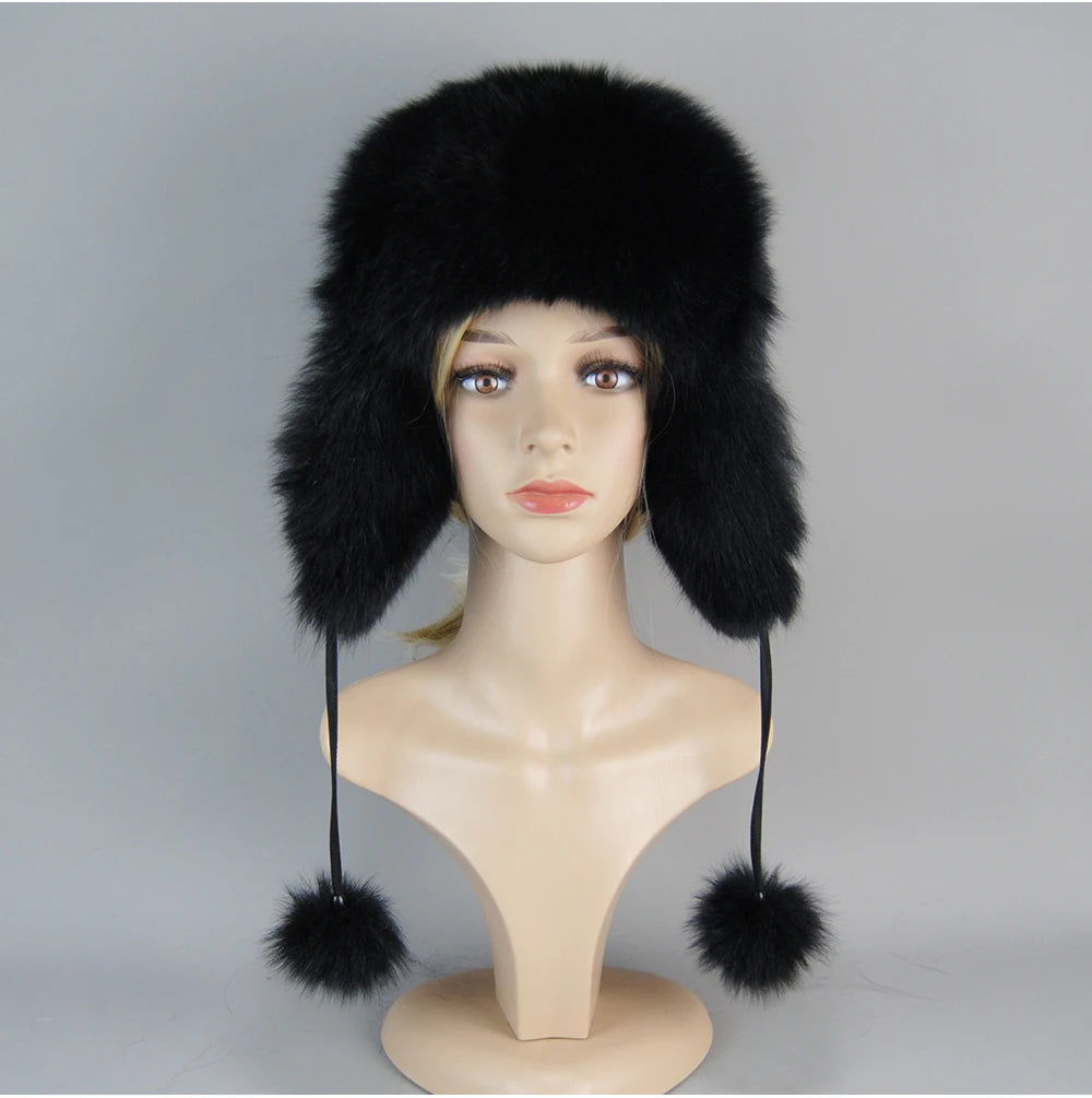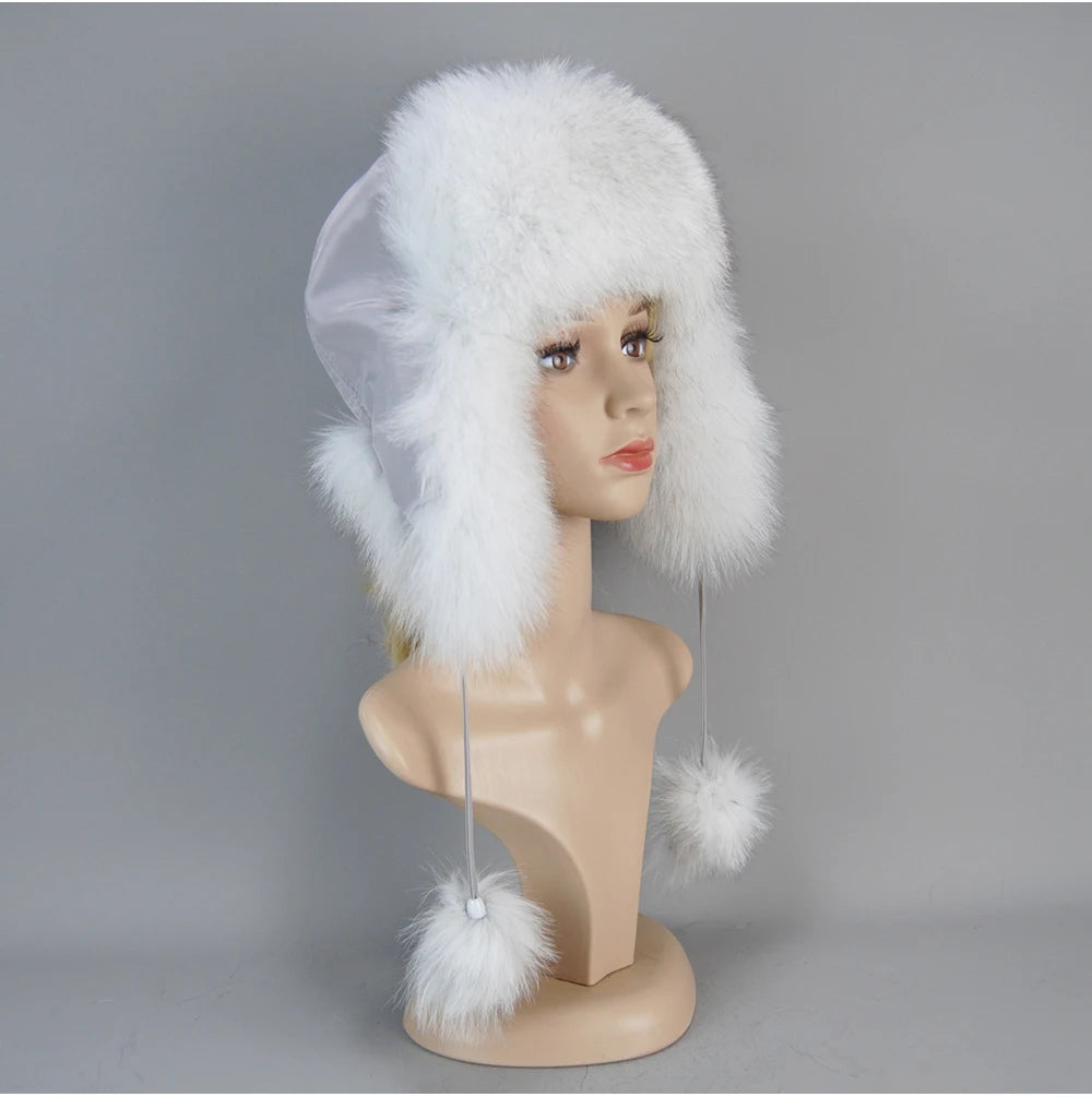 Vrouwen Natuurlijke Vossenbont Russische Oesjanka Hoeden Winter Dikke Warme O...