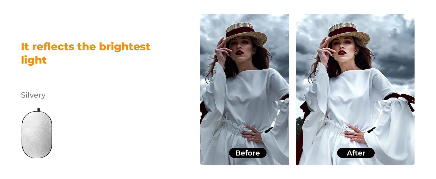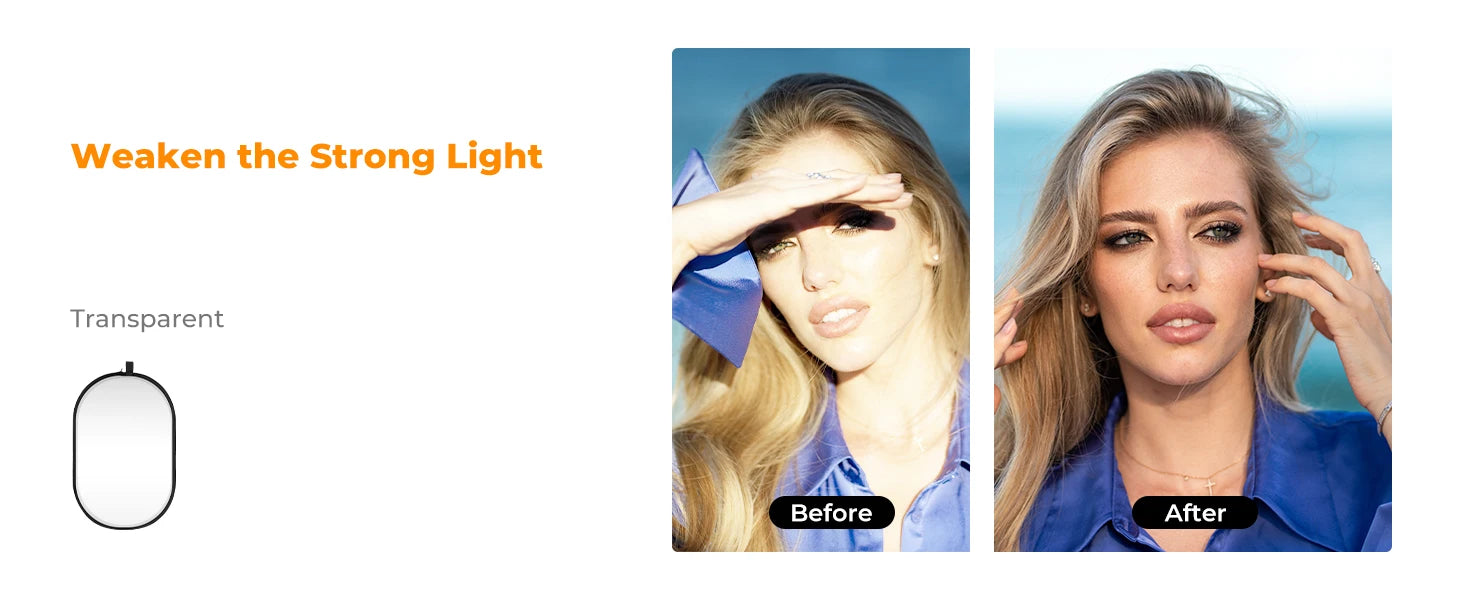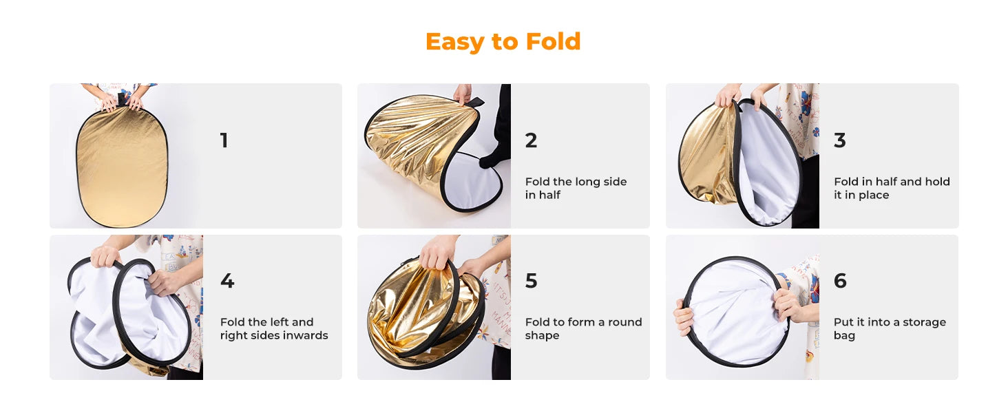 Let op : De 5-in-1-reflector bevat een doorschijnend paneel met vier kleurcoatings