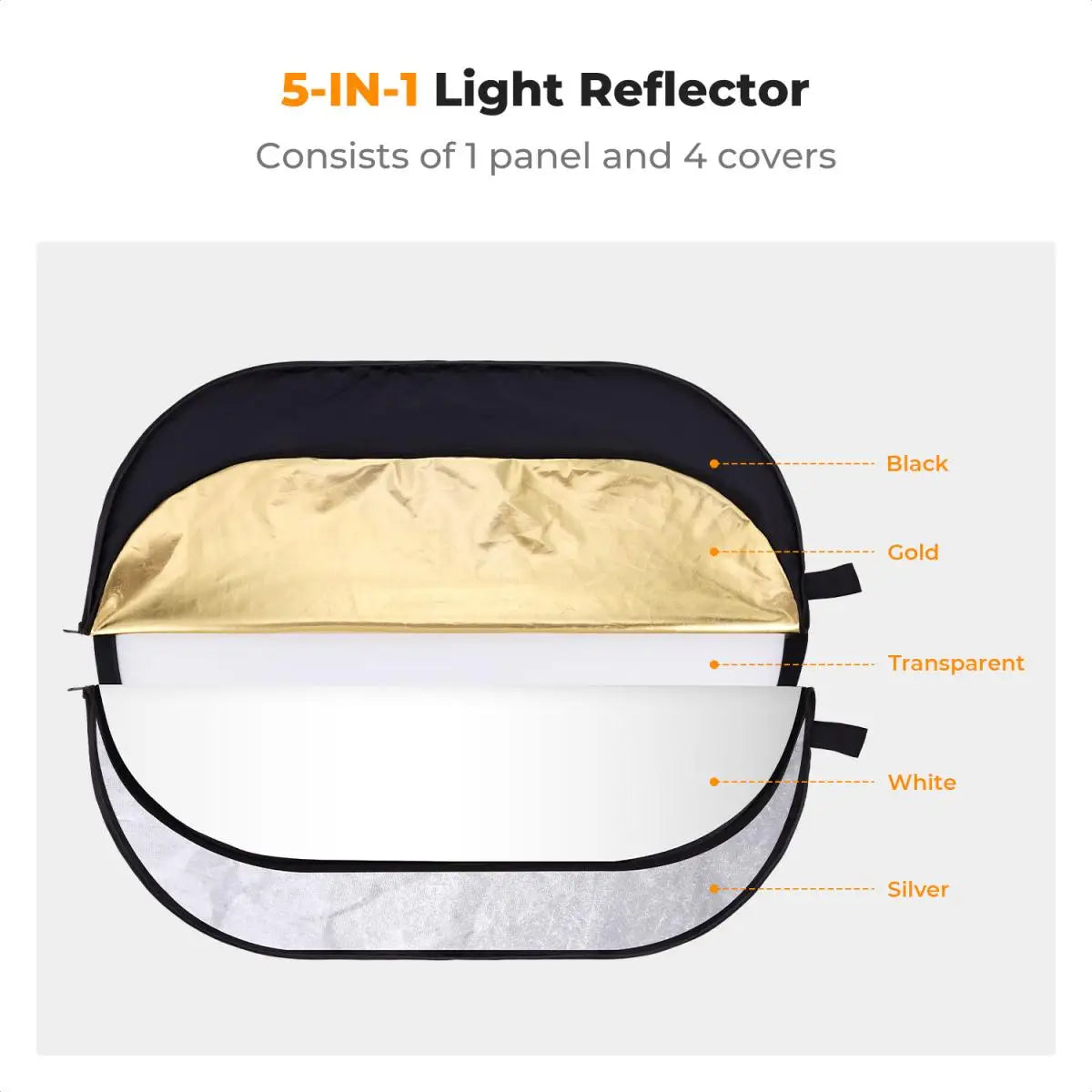 K&F Concept 100x150cm 60x90cm 5 in 1 ovale fotografielichtreflector met h...