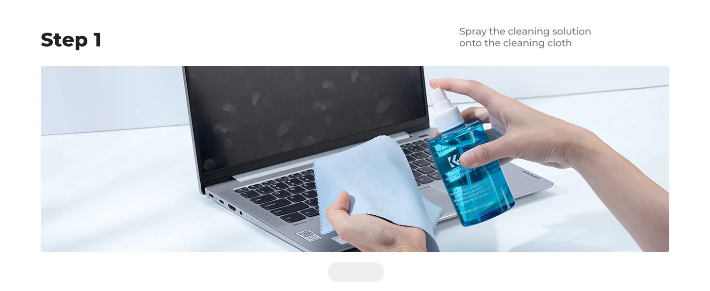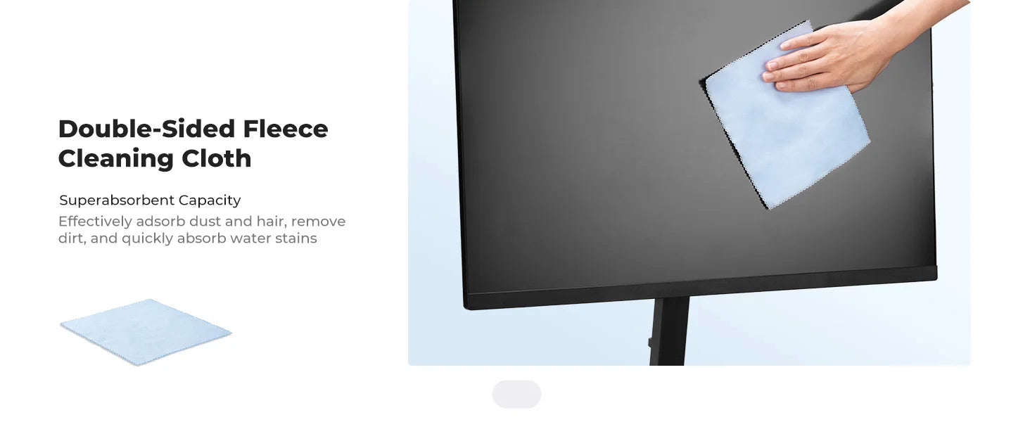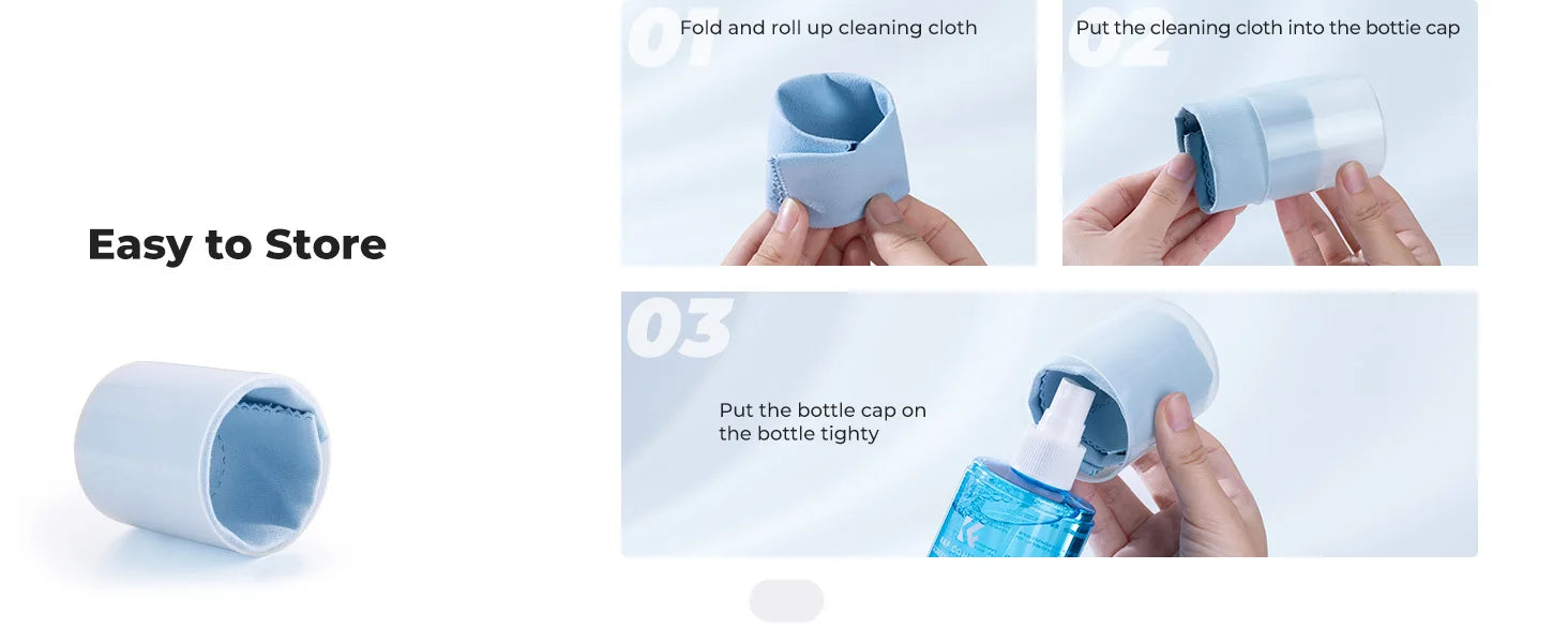 Reinigingsset bevat : 200 ml spray + 2 * microvezeldoek + 1 * dubbelzijdige fleecedoek