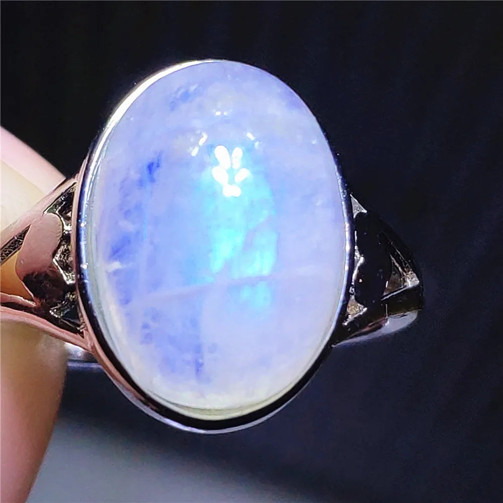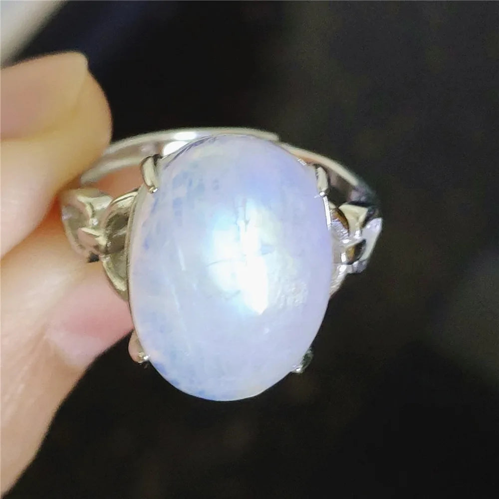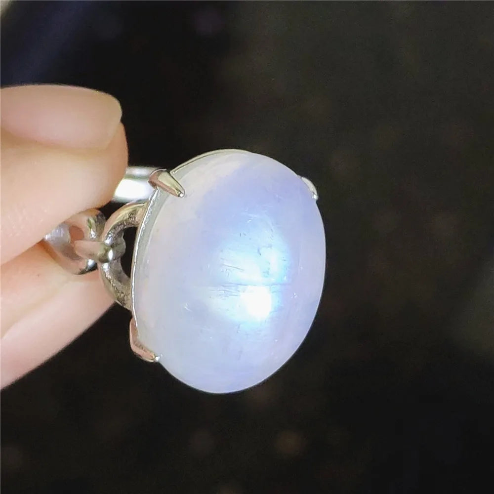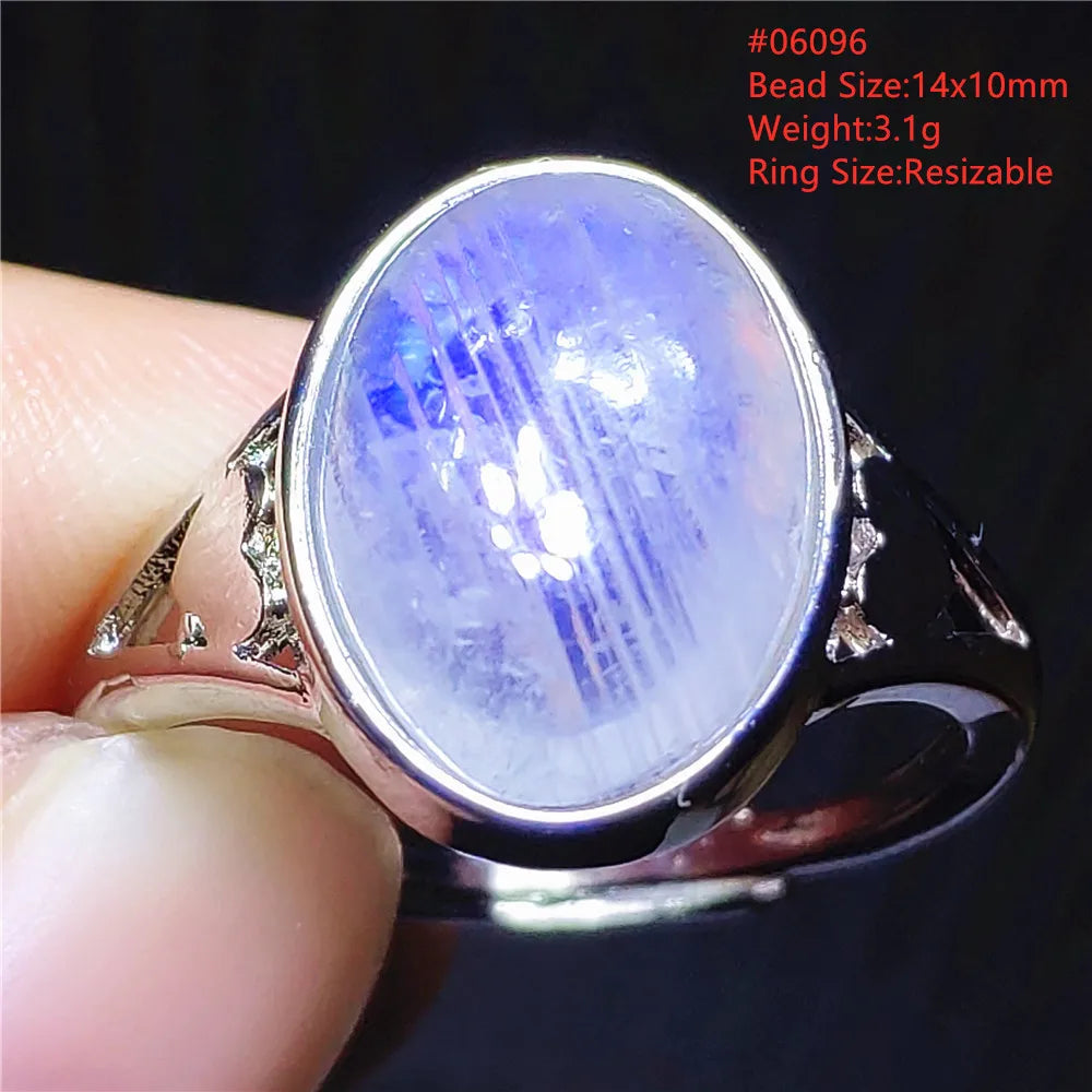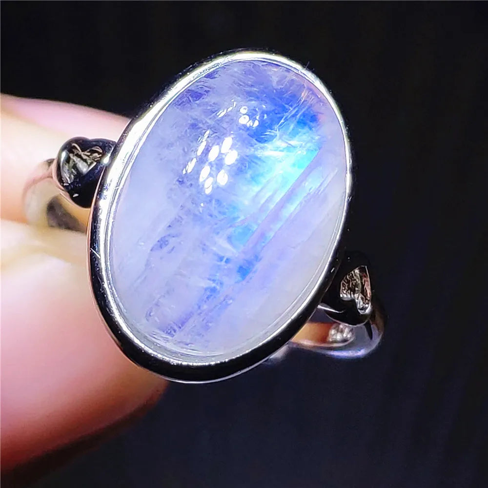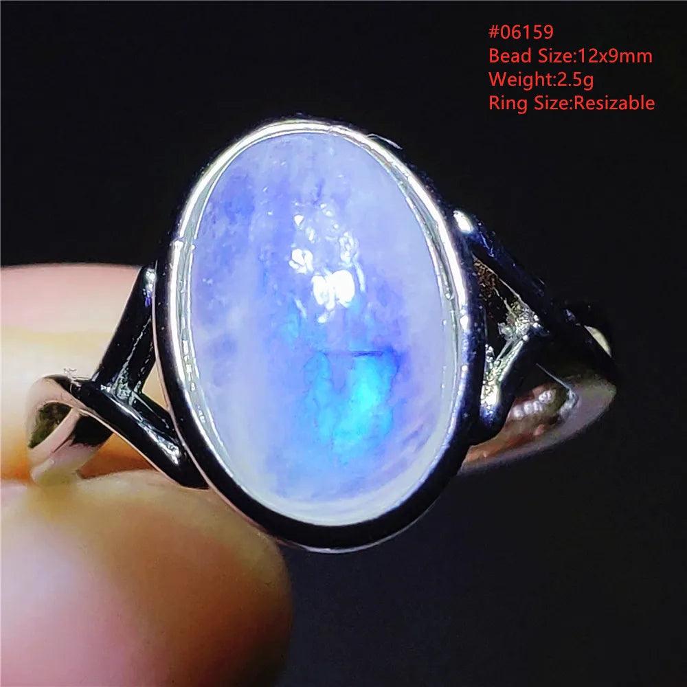 Natuurlijke blauwe maansteen ring ovaal verstelbaar alle maten vrouwen 925 zilver helderblauwe maansteen
