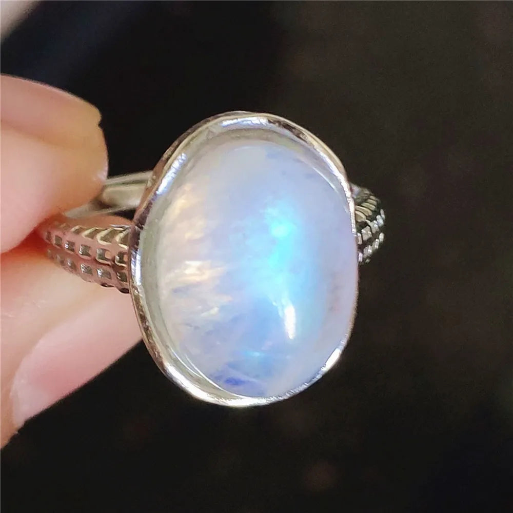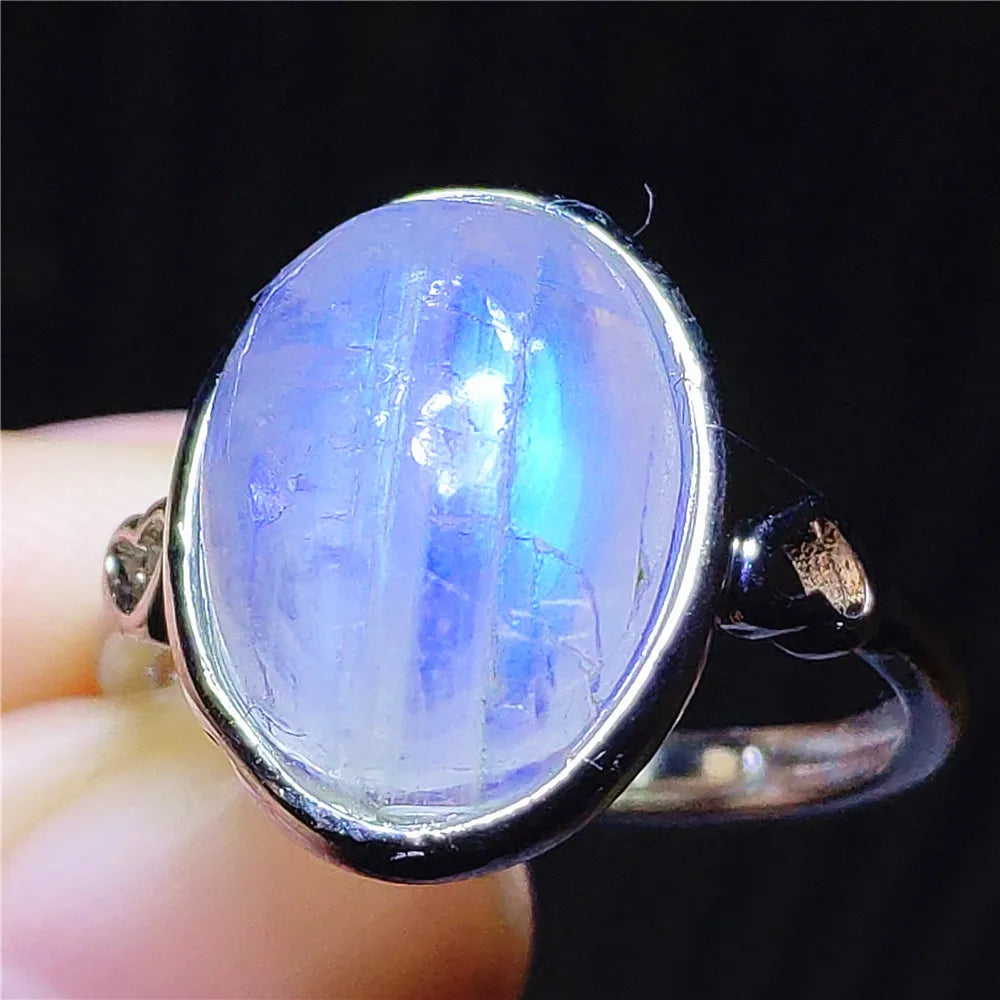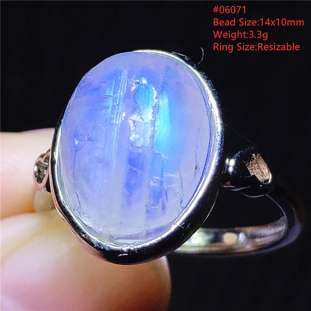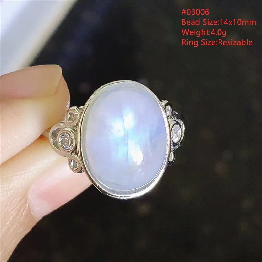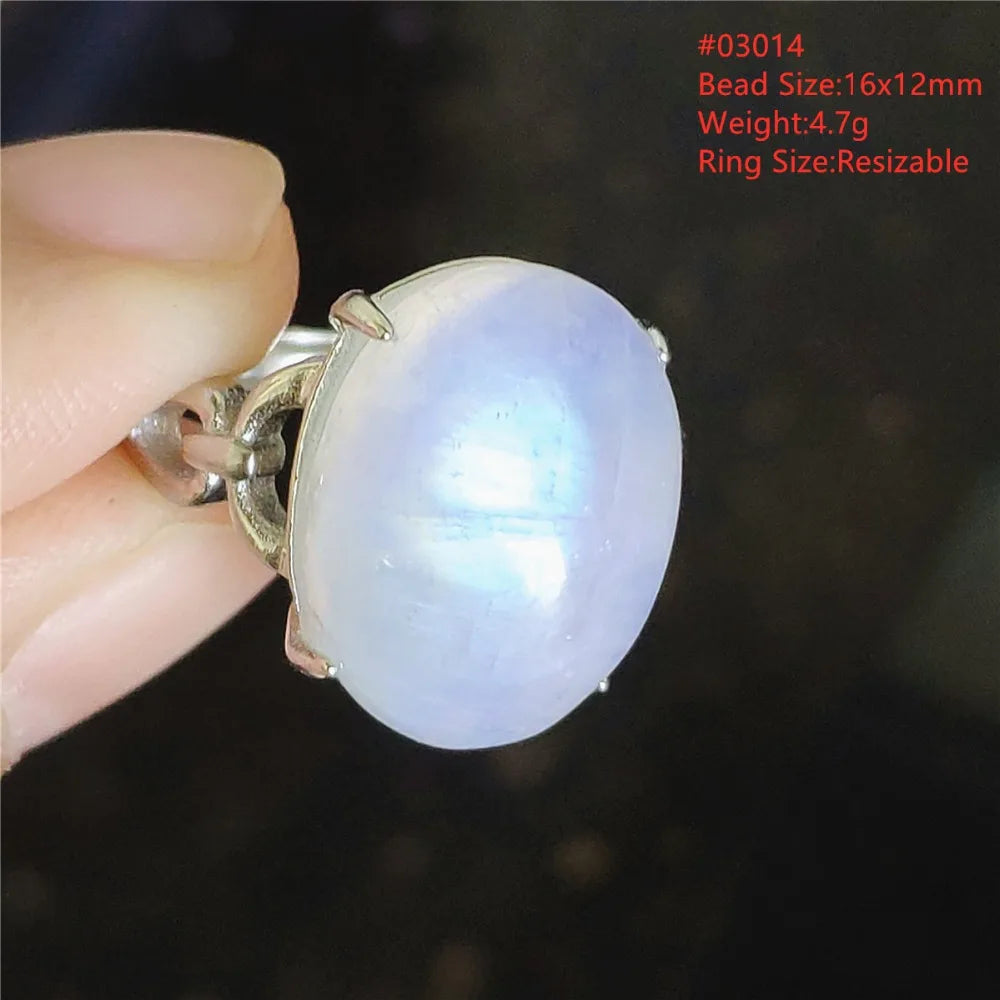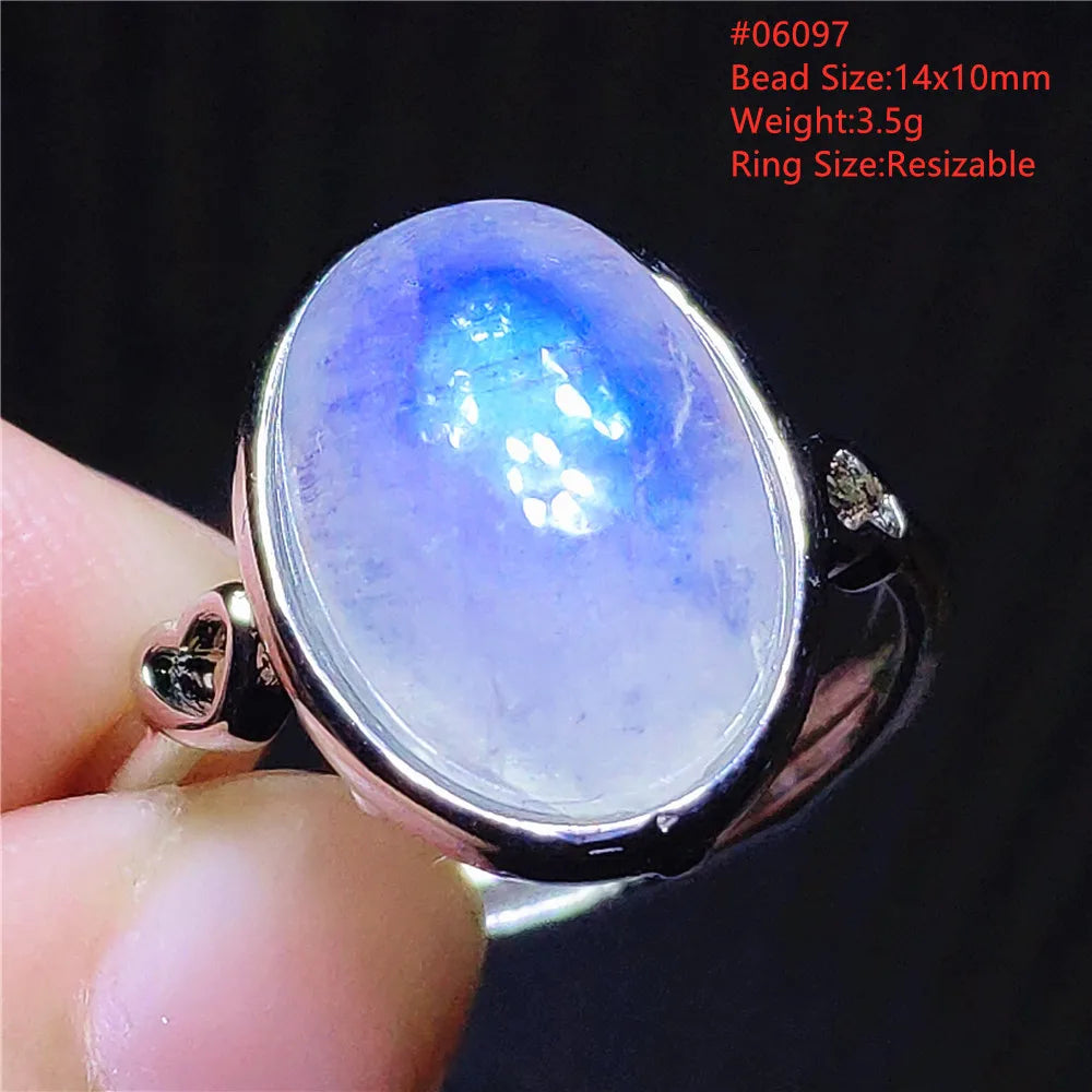 Natuurlijke blauwe maansteen ring ovaal verstelbaar alle maten vrouwen 925 zilver helderblauwe maansteen