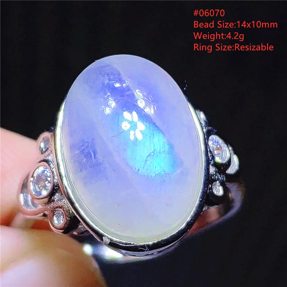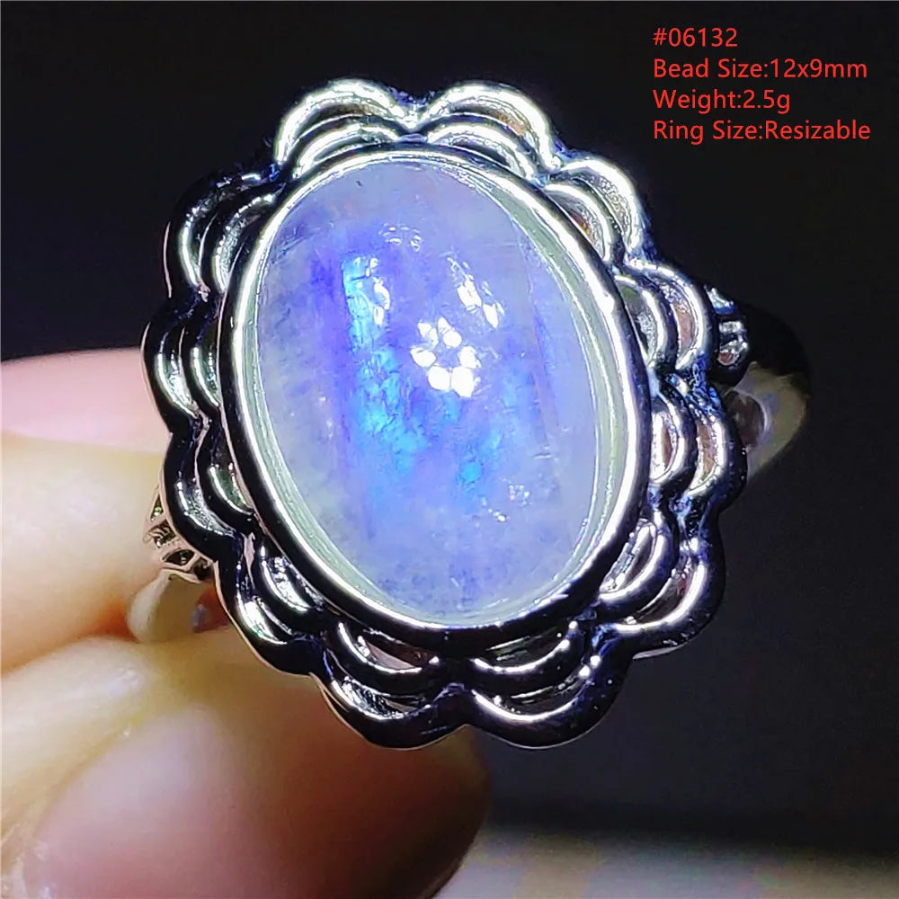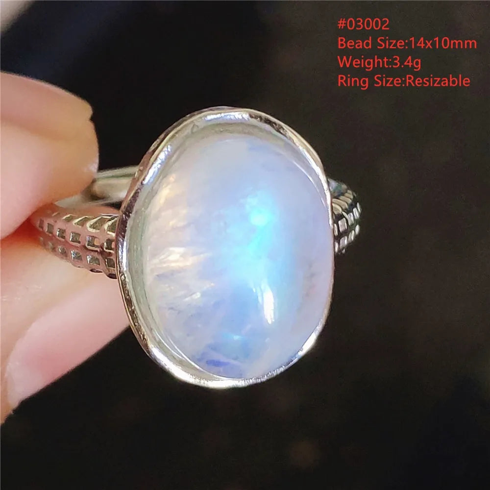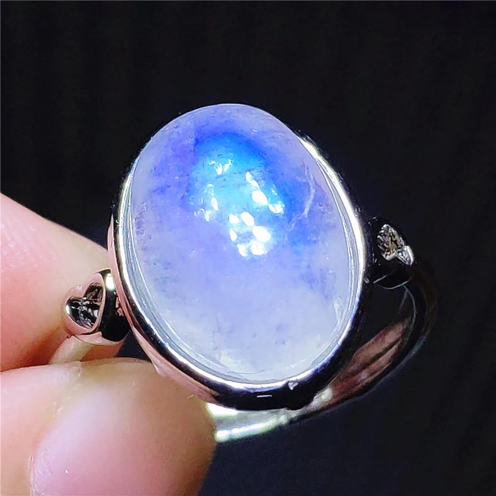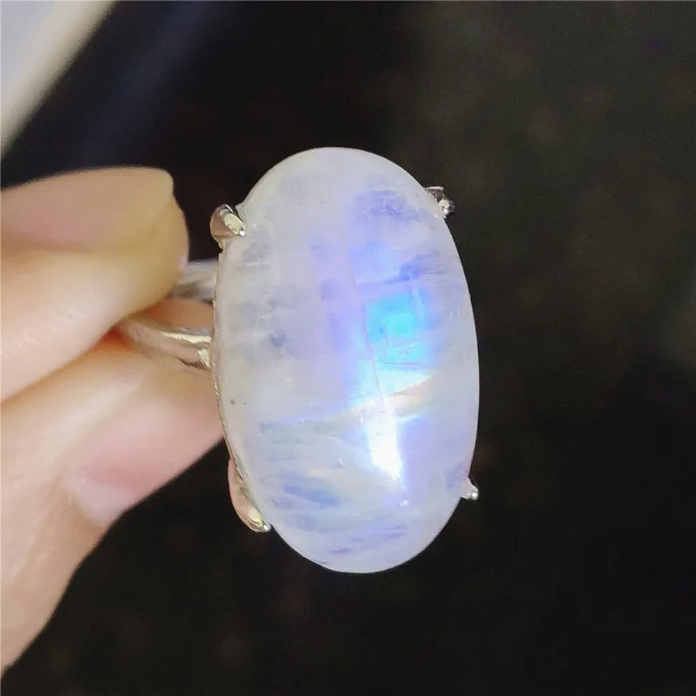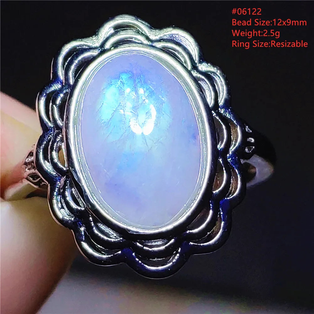 Natuurlijke blauwe maansteen ring ovaal verstelbaar alle maten vrouwen 925 zilver helderblauwe maansteen