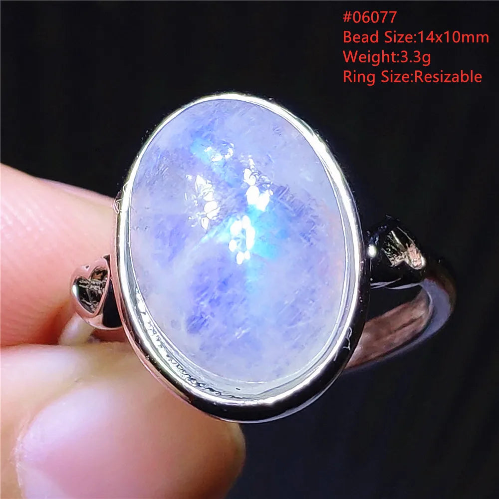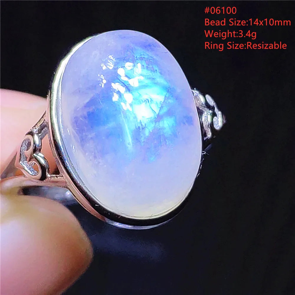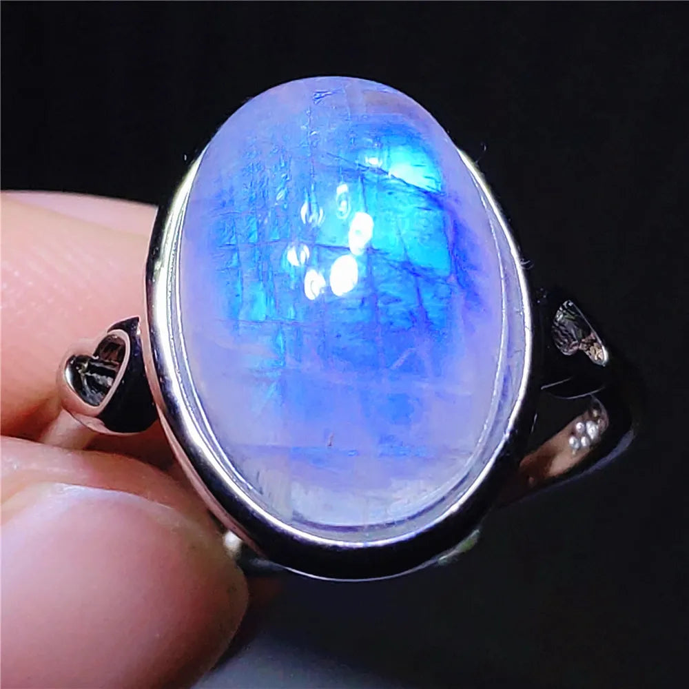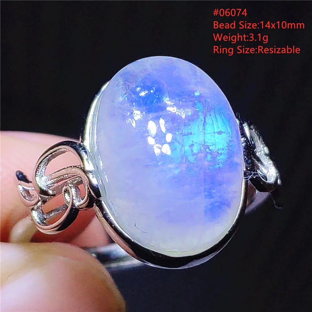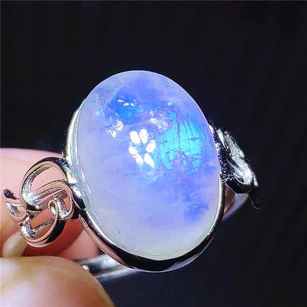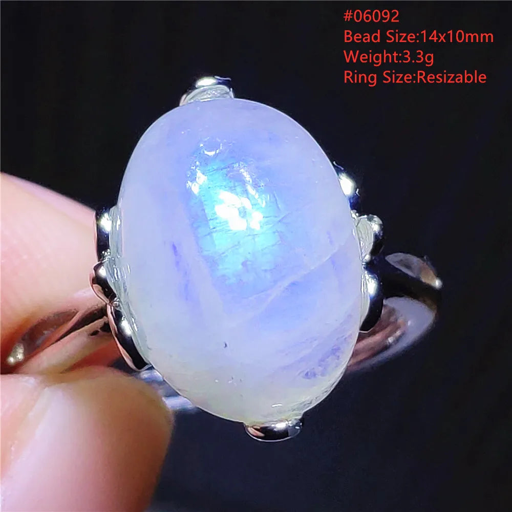 Natuurlijke blauwe maansteen ring ovaal verstelbaar alle maten vrouwen 925 zilver helderblauwe maansteen