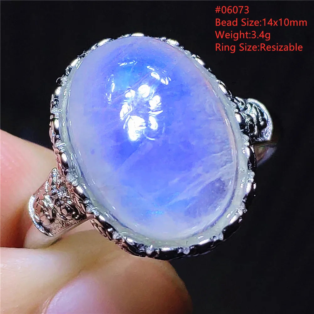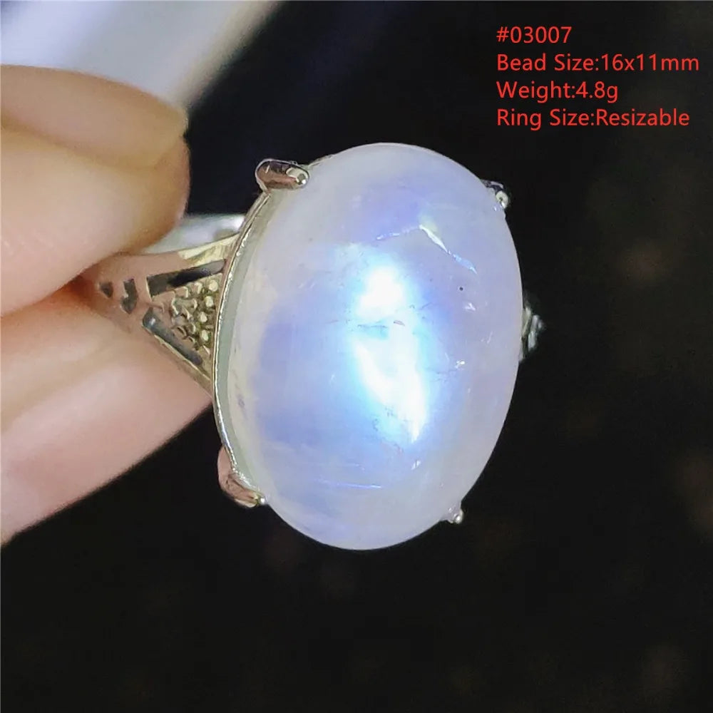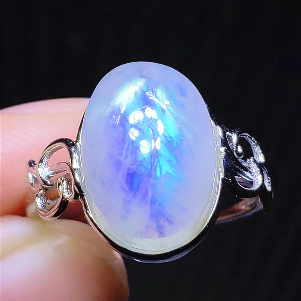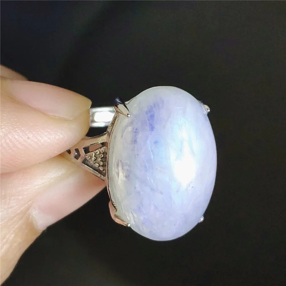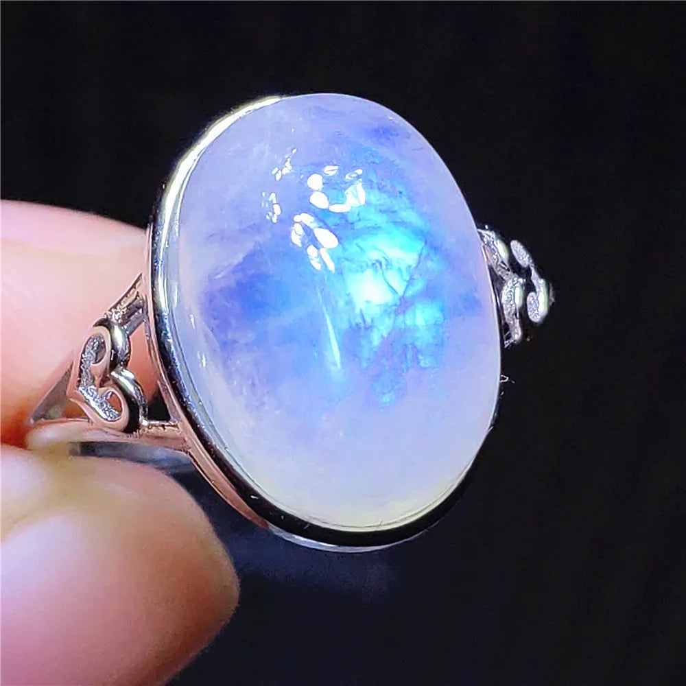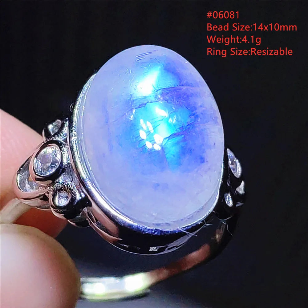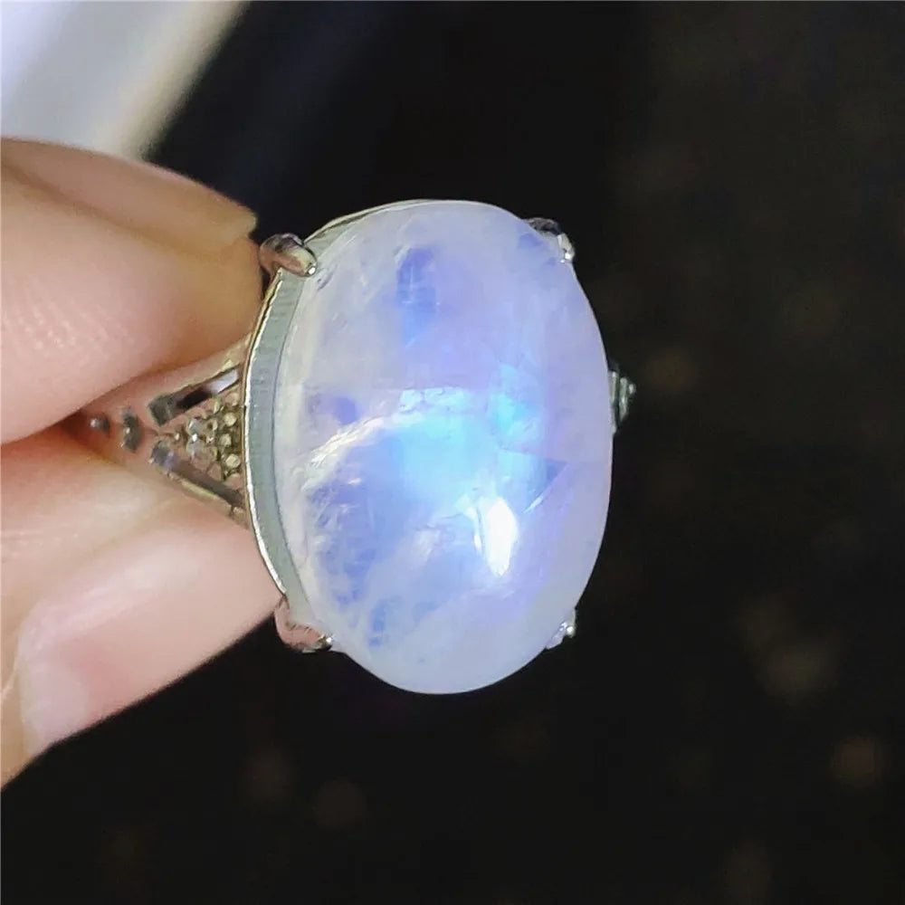 Natuurlijke blauwe maansteen ring ovaal verstelbaar alle maten vrouwen 925 zilver helderblauwe maansteen