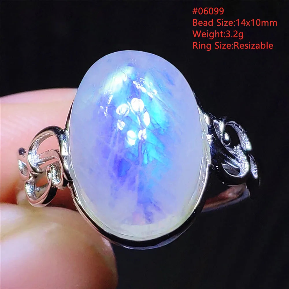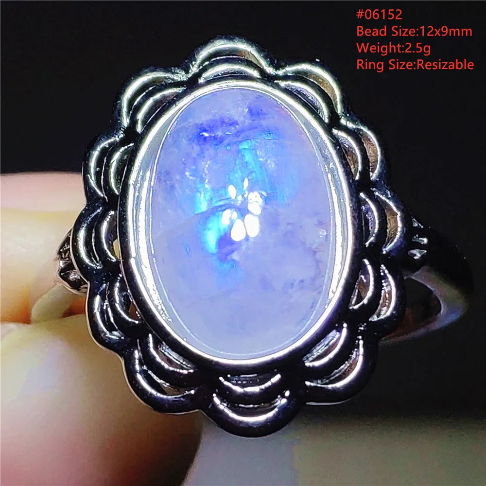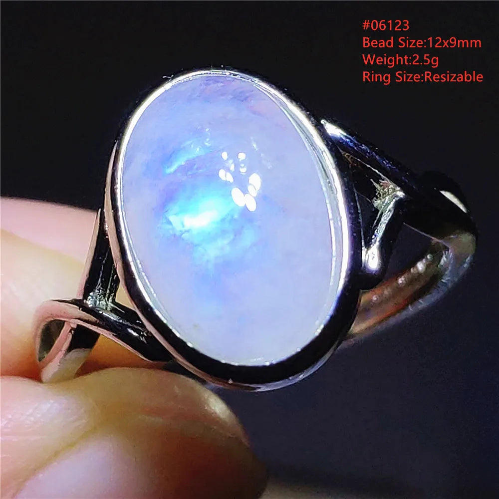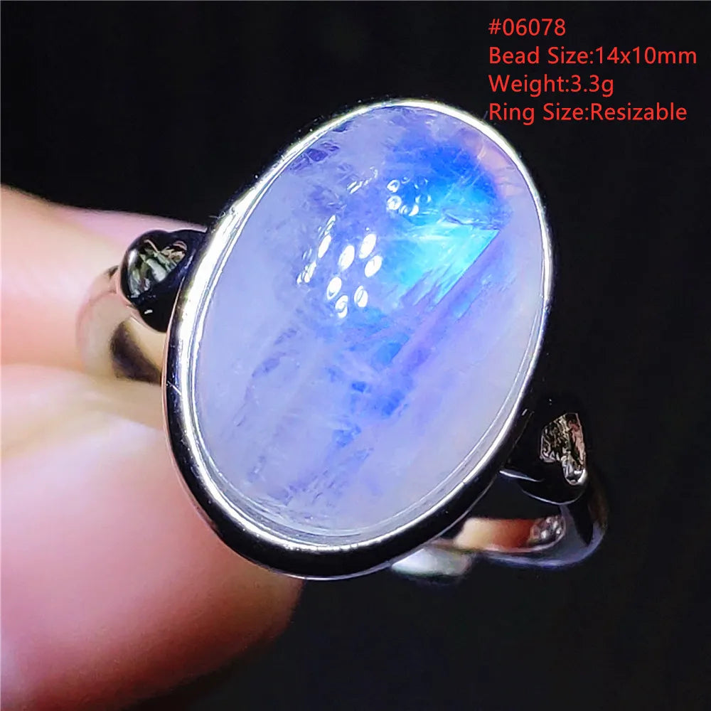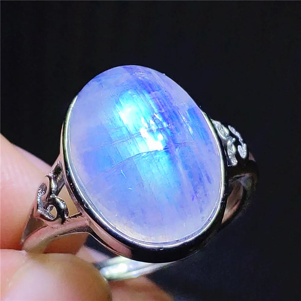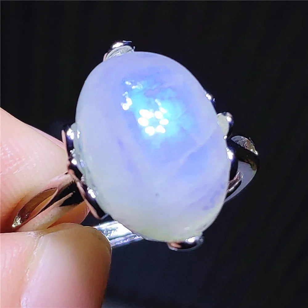 Natuurlijke blauwe maansteen ring ovaal verstelbaar alle maten vrouwen 925 zilver helderblauwe maansteen
