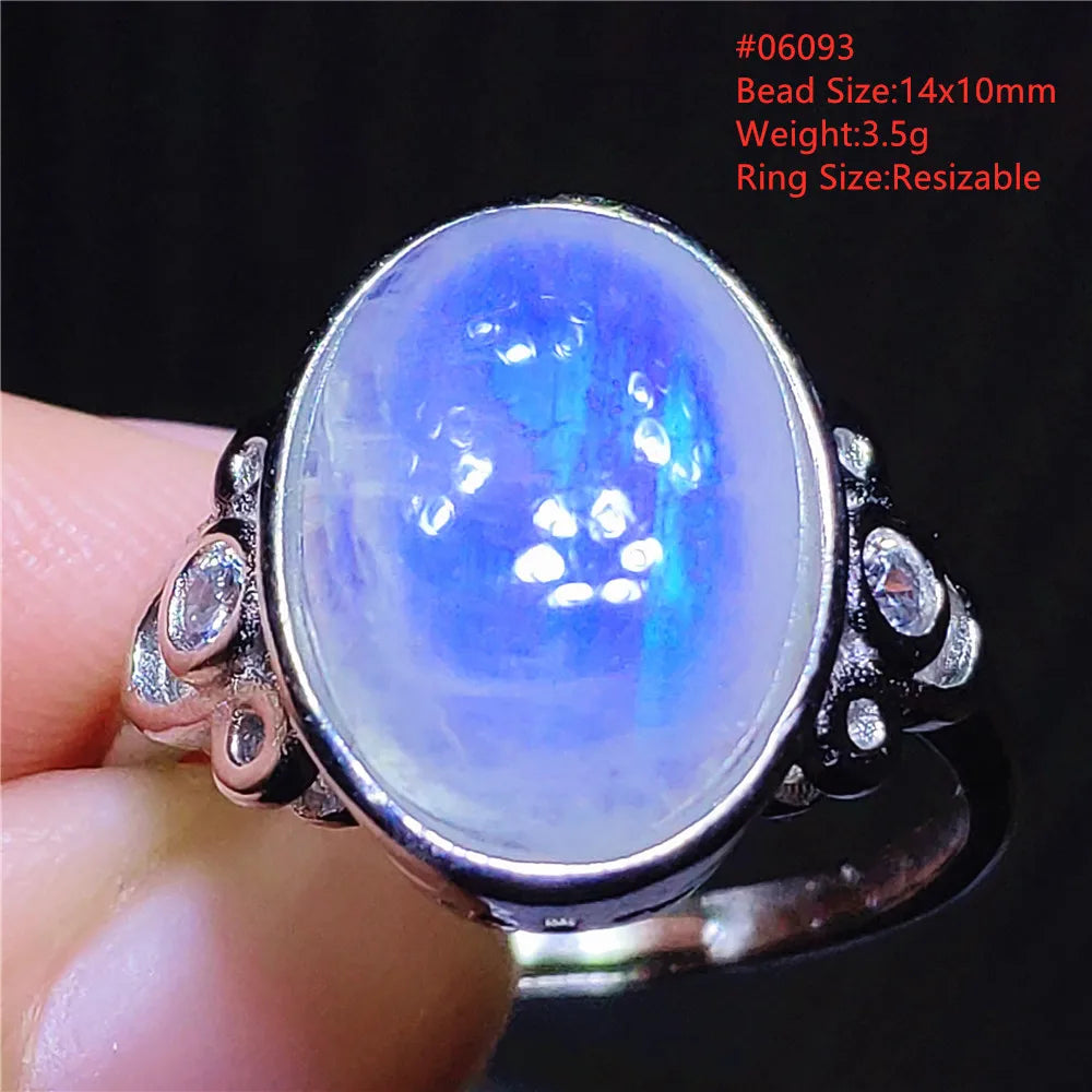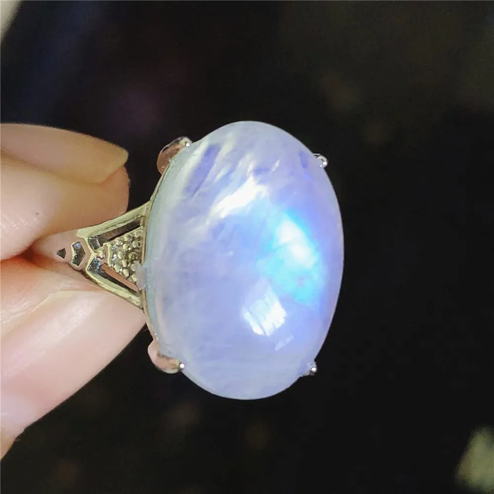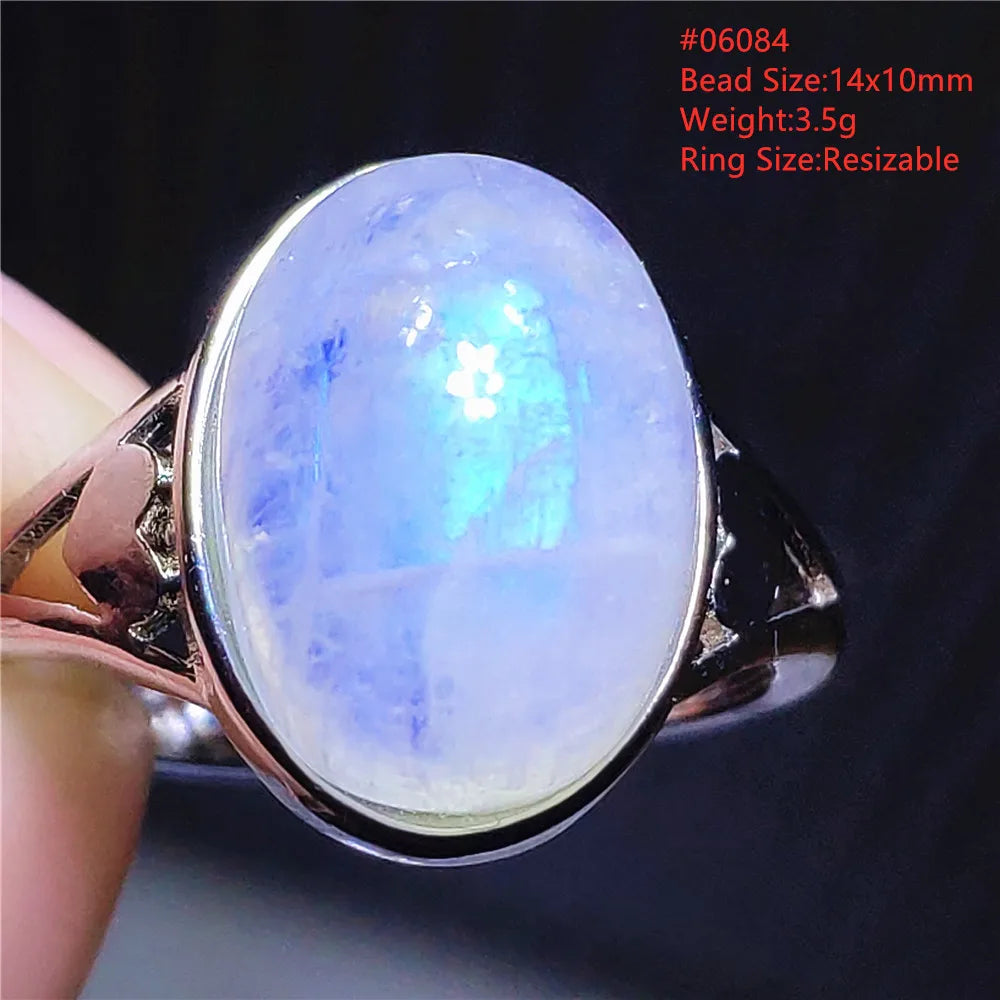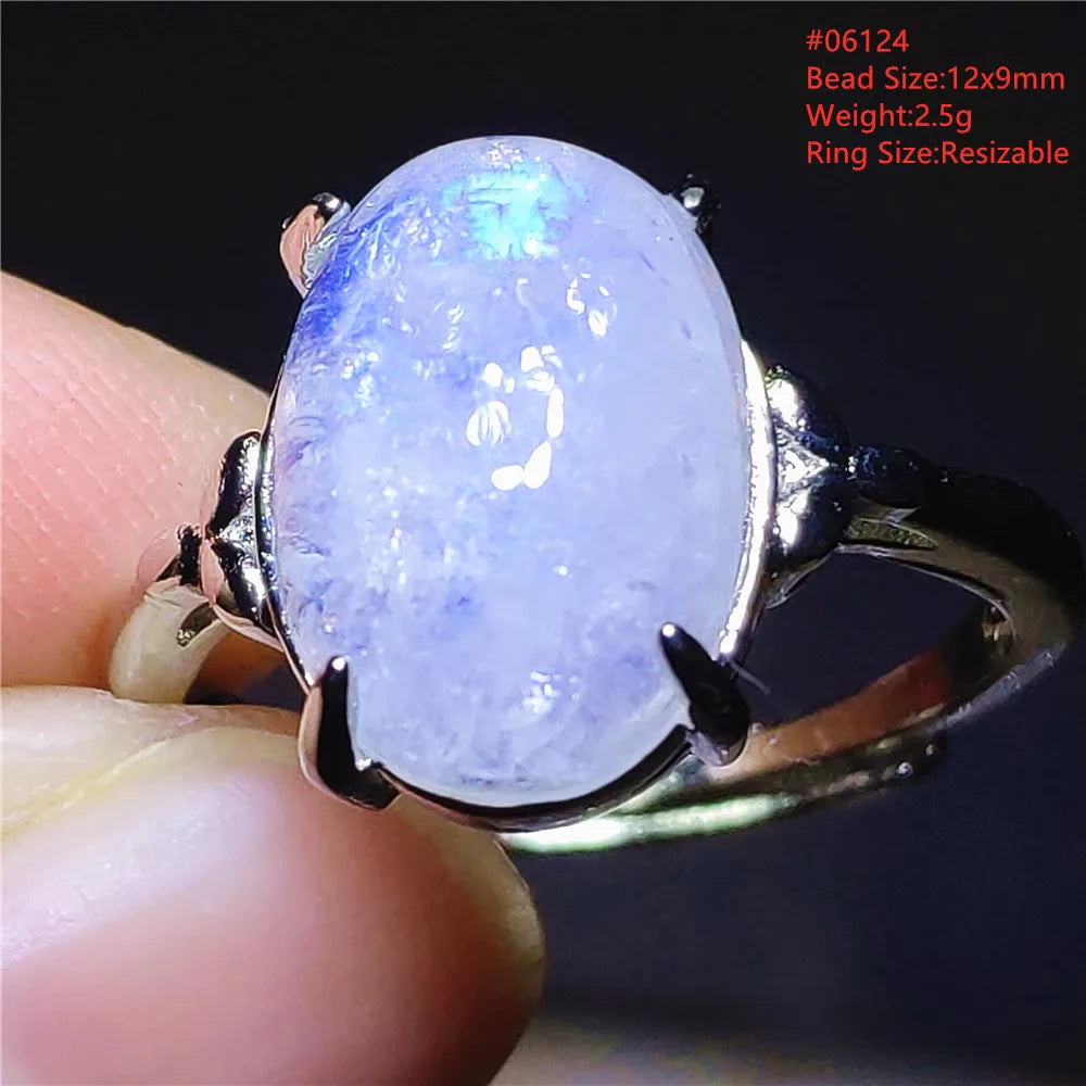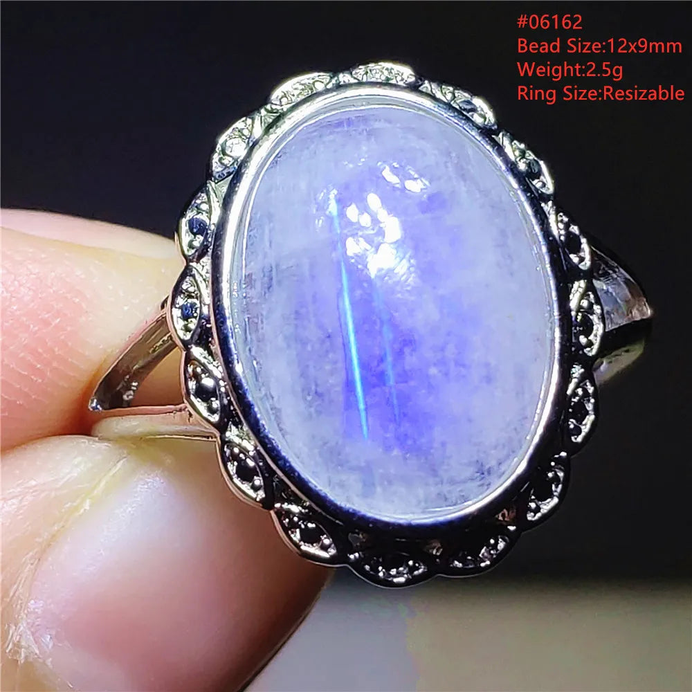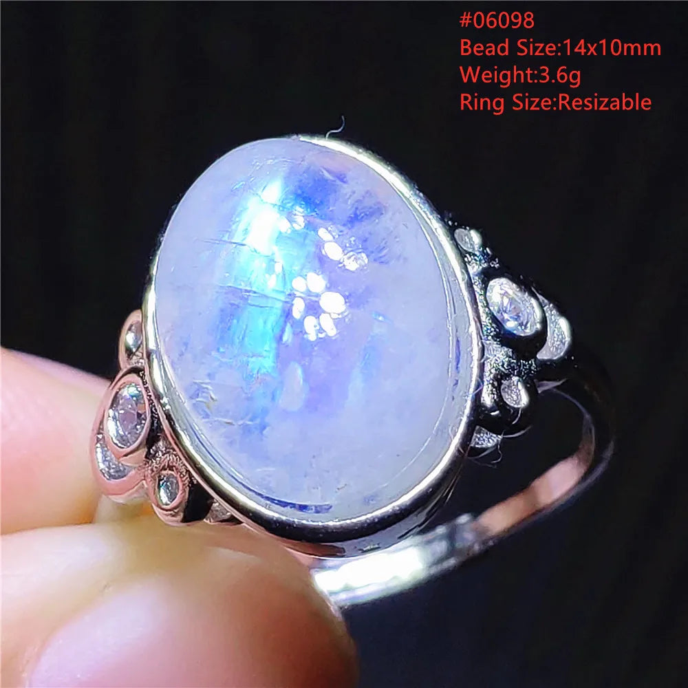Natuurlijke blauwe maansteen ring ovaal verstelbaar alle maten vrouwen 925 zilver helderblauwe maansteen