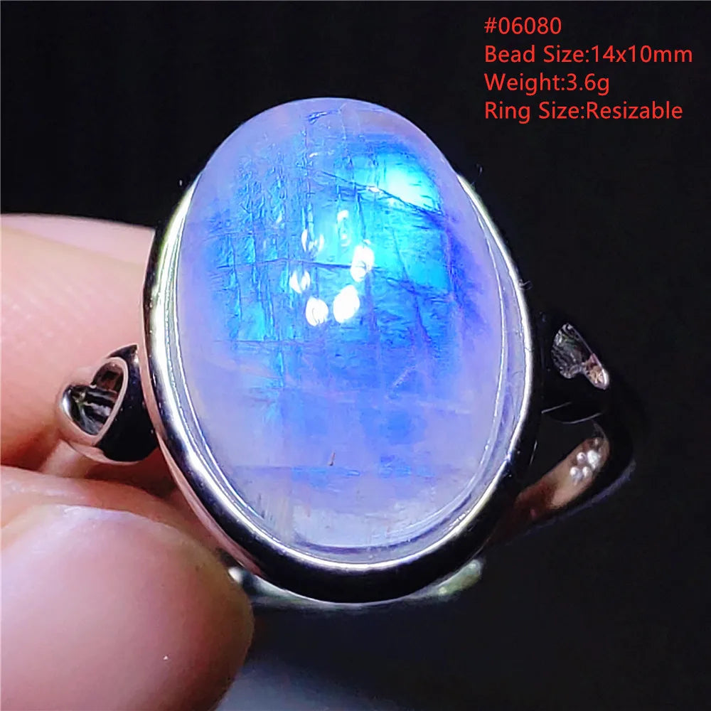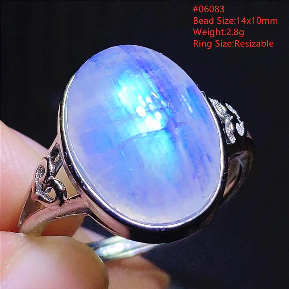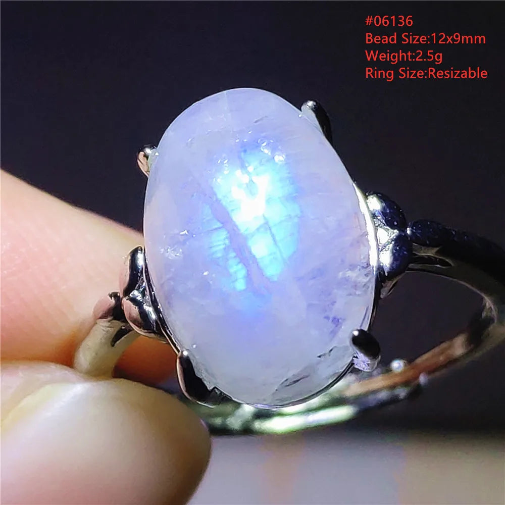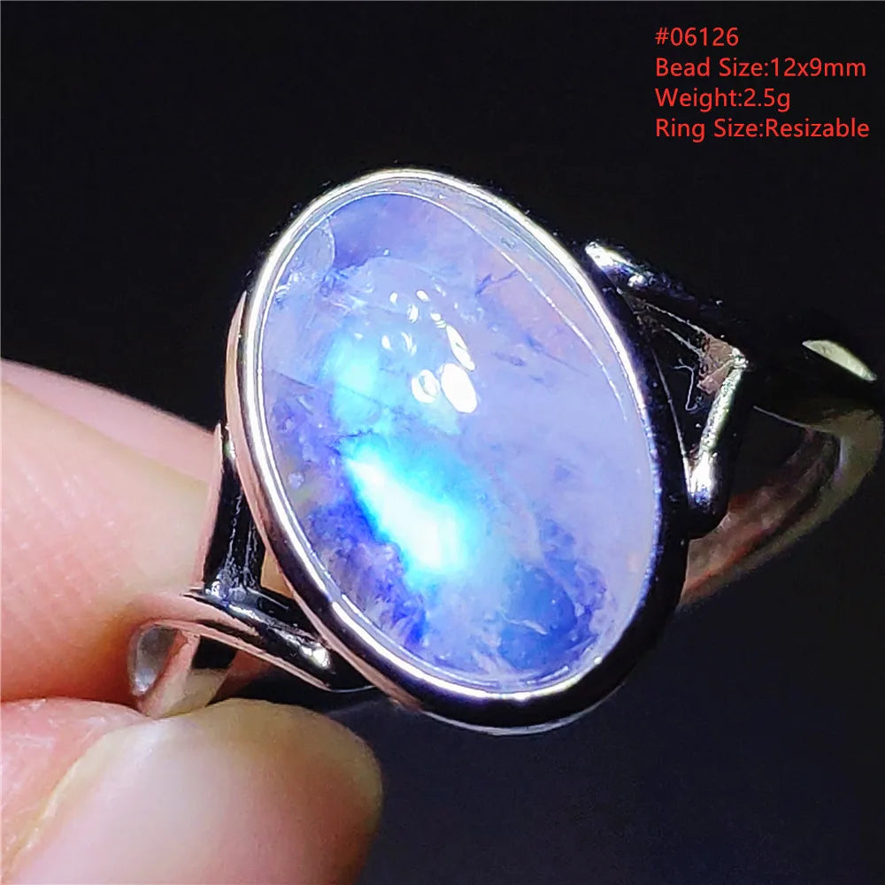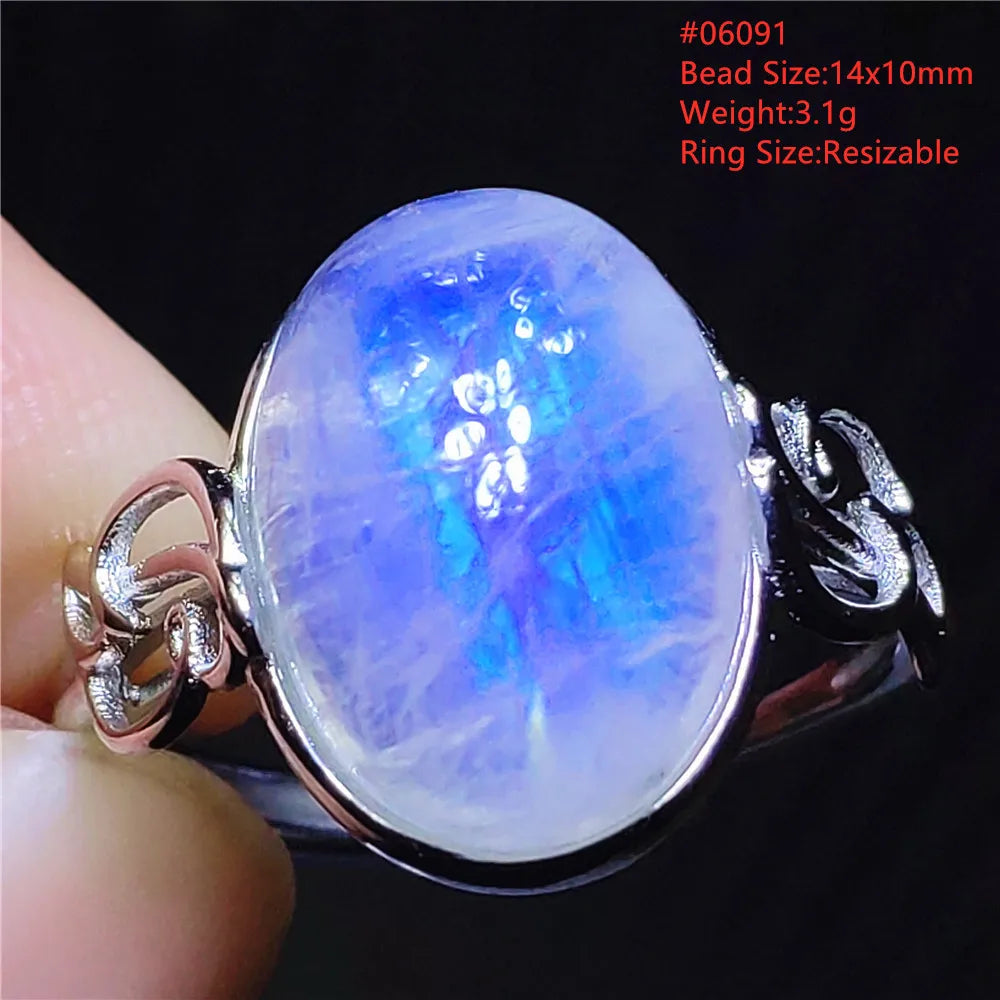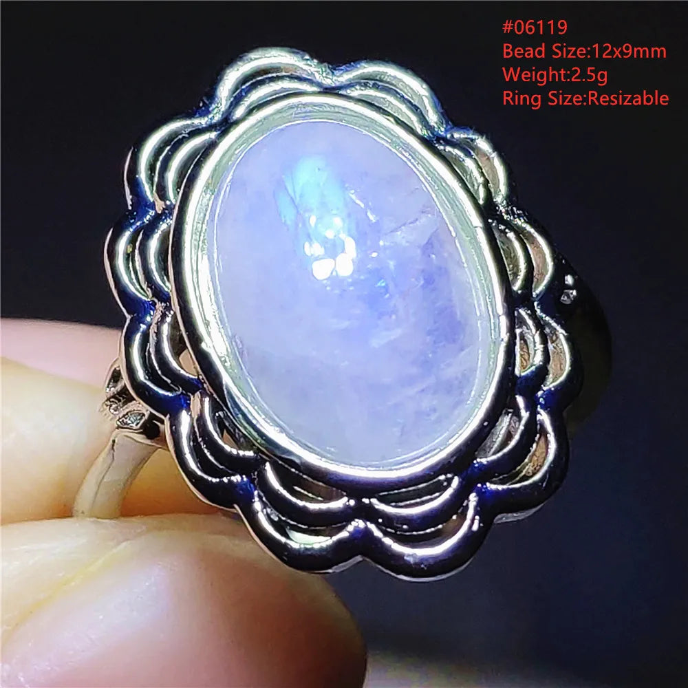 Natuurlijke blauwe maansteen ring ovaal verstelbaar alle maten vrouwen 925 zilver helderblauwe maansteen