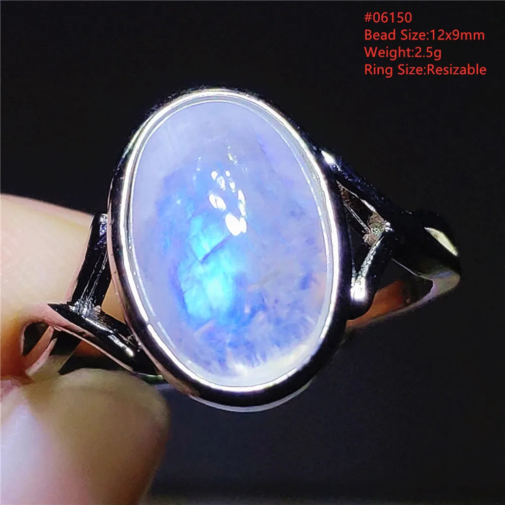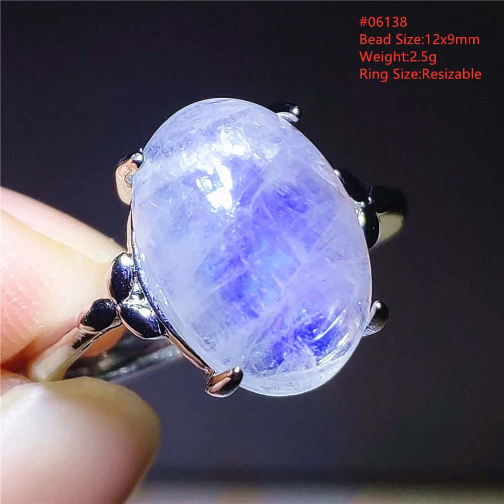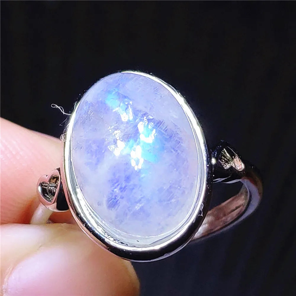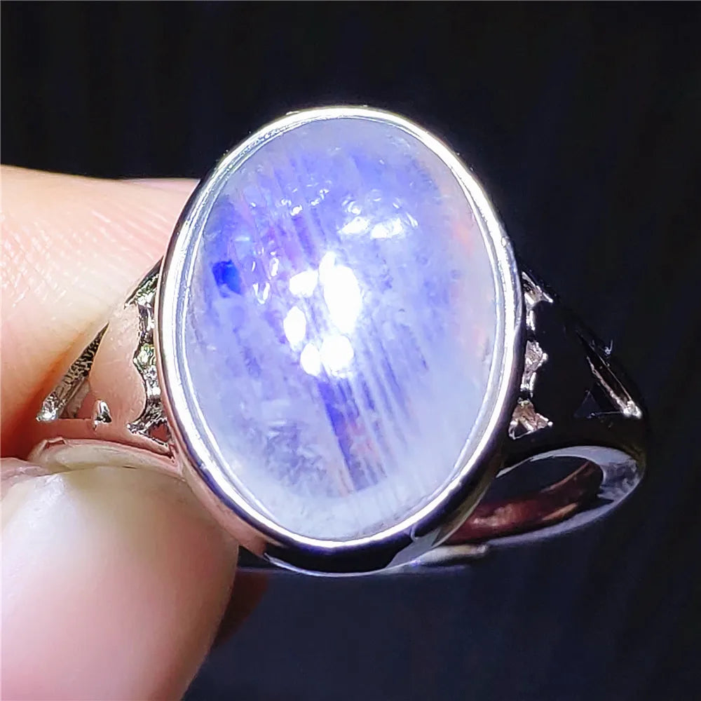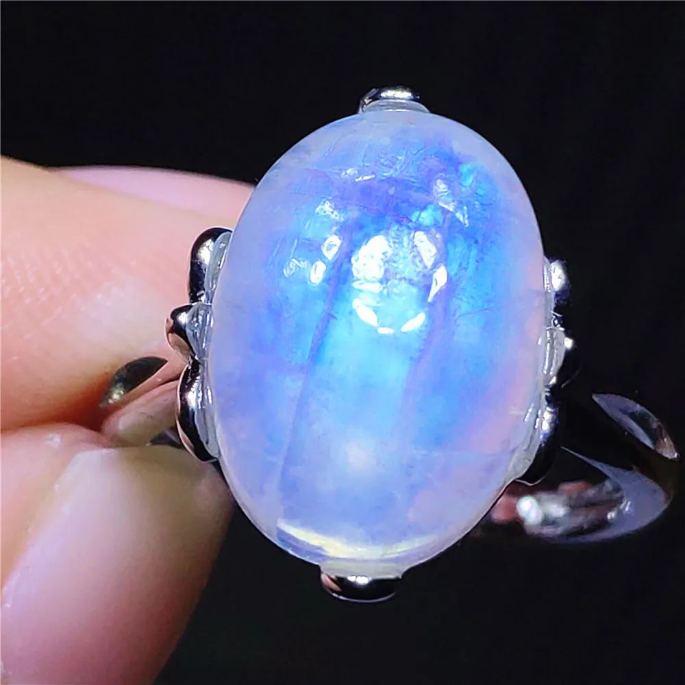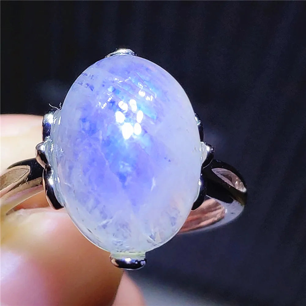 Natuurlijke blauwe maansteen ring ovaal verstelbaar alle maten vrouwen 925 zilver helderblauwe maansteen
