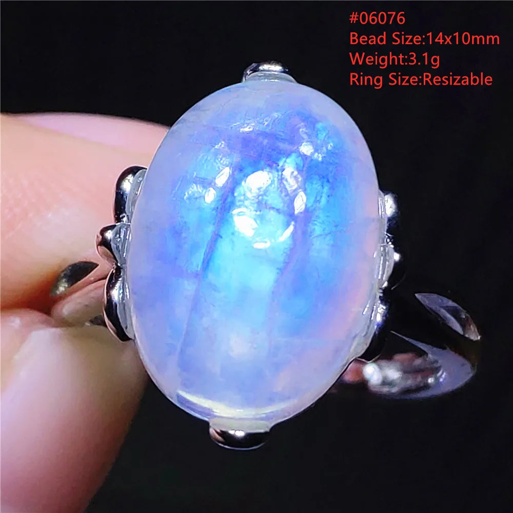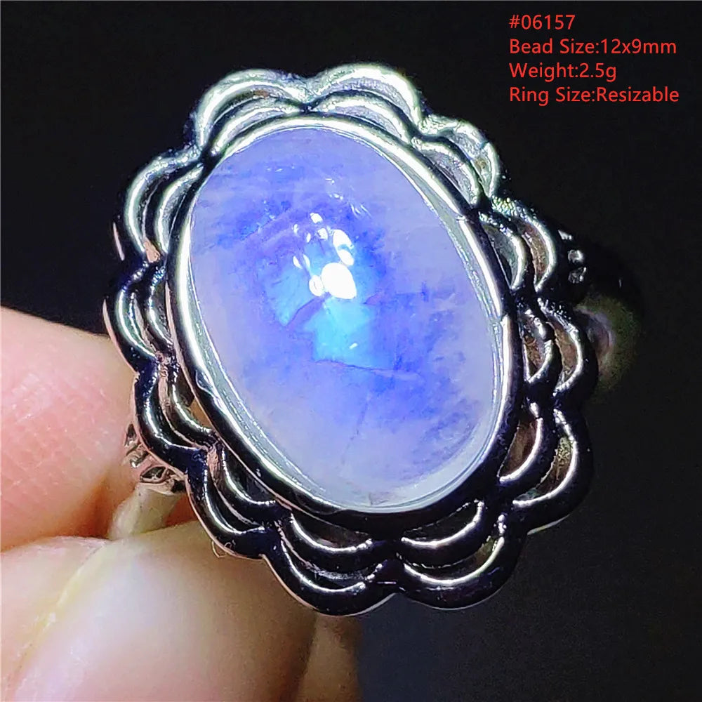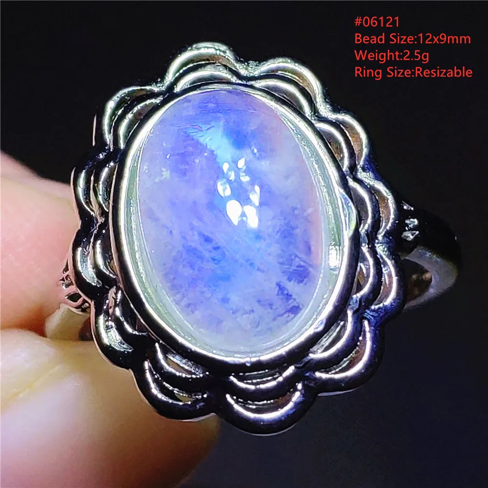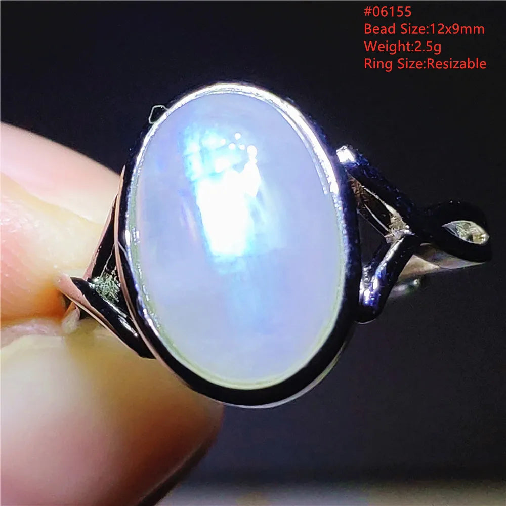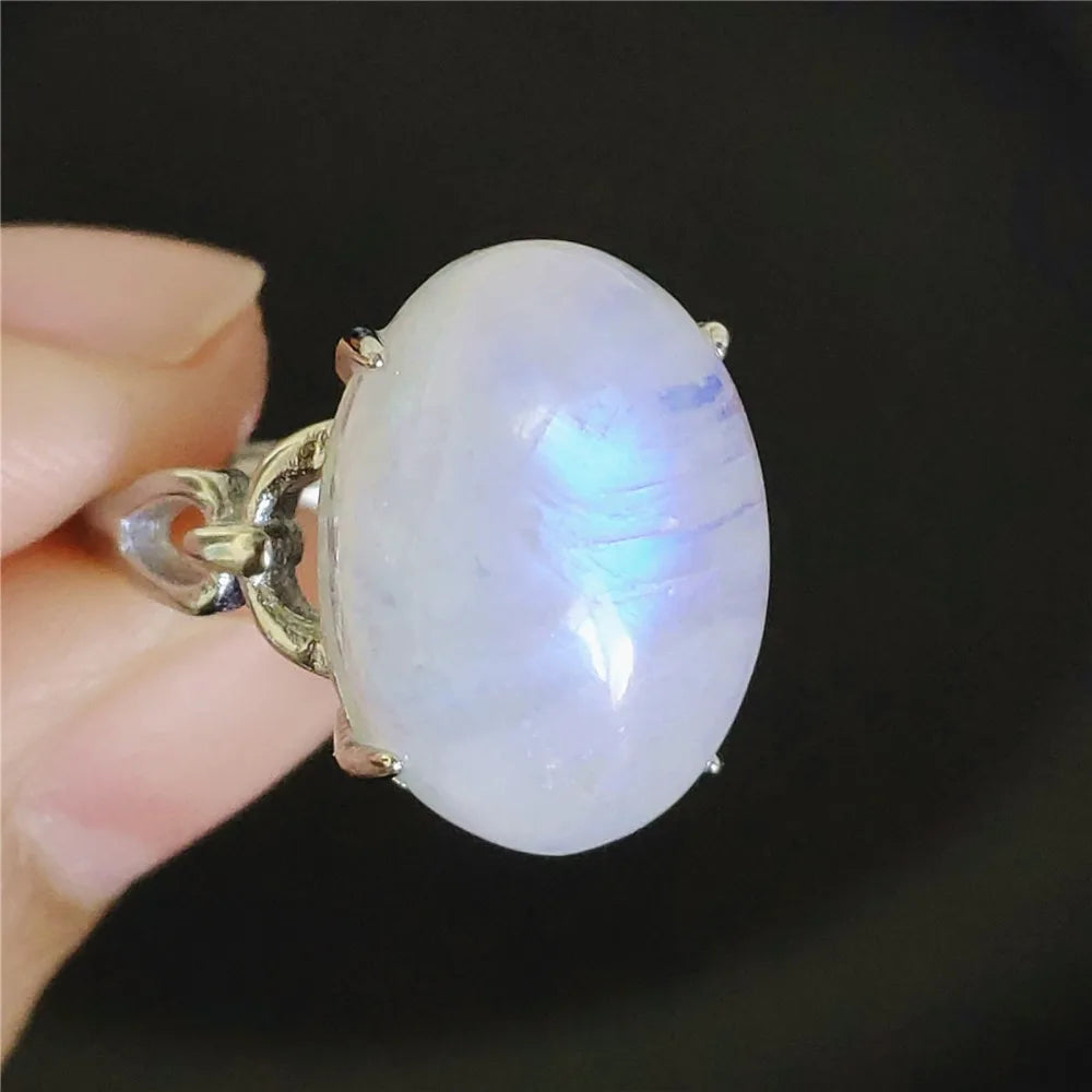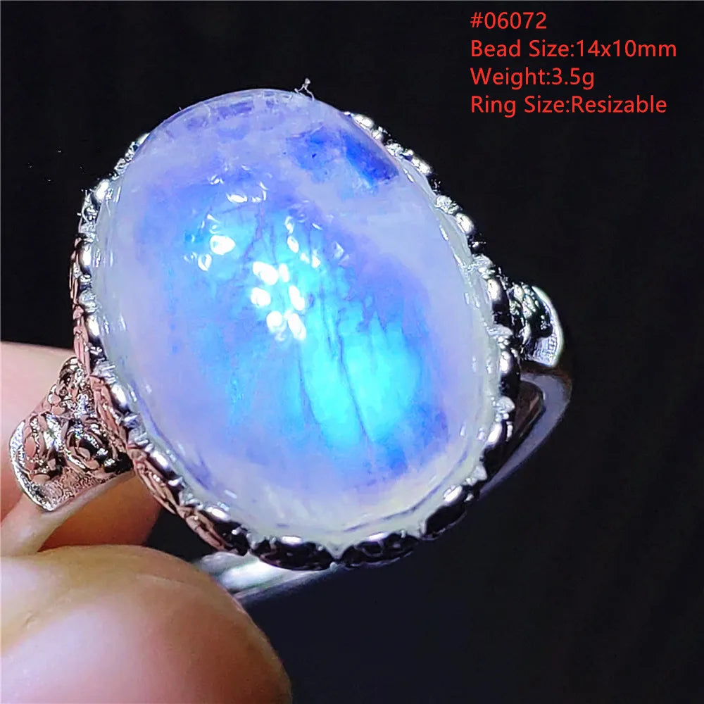 Natuurlijke blauwe maansteen ring ovaal verstelbaar alle maten vrouwen 925 zilver helderblauwe maansteen