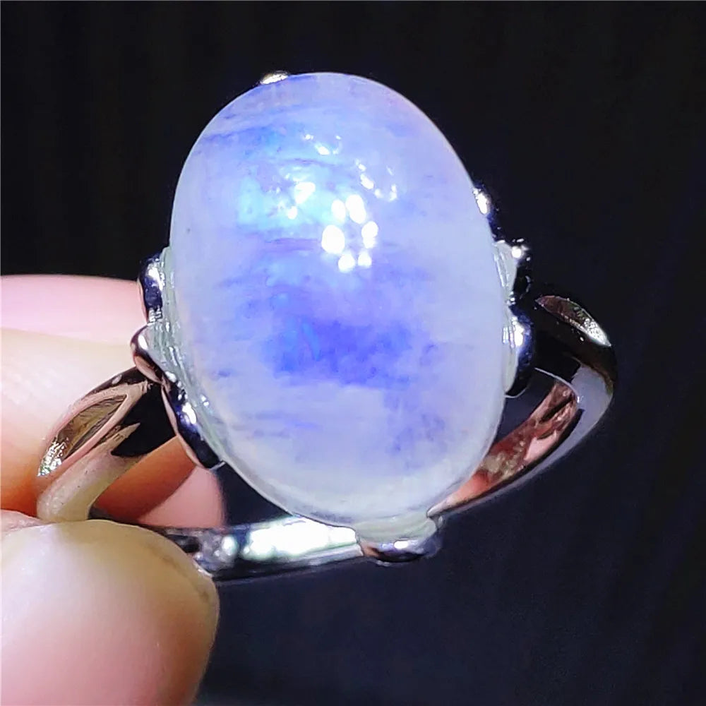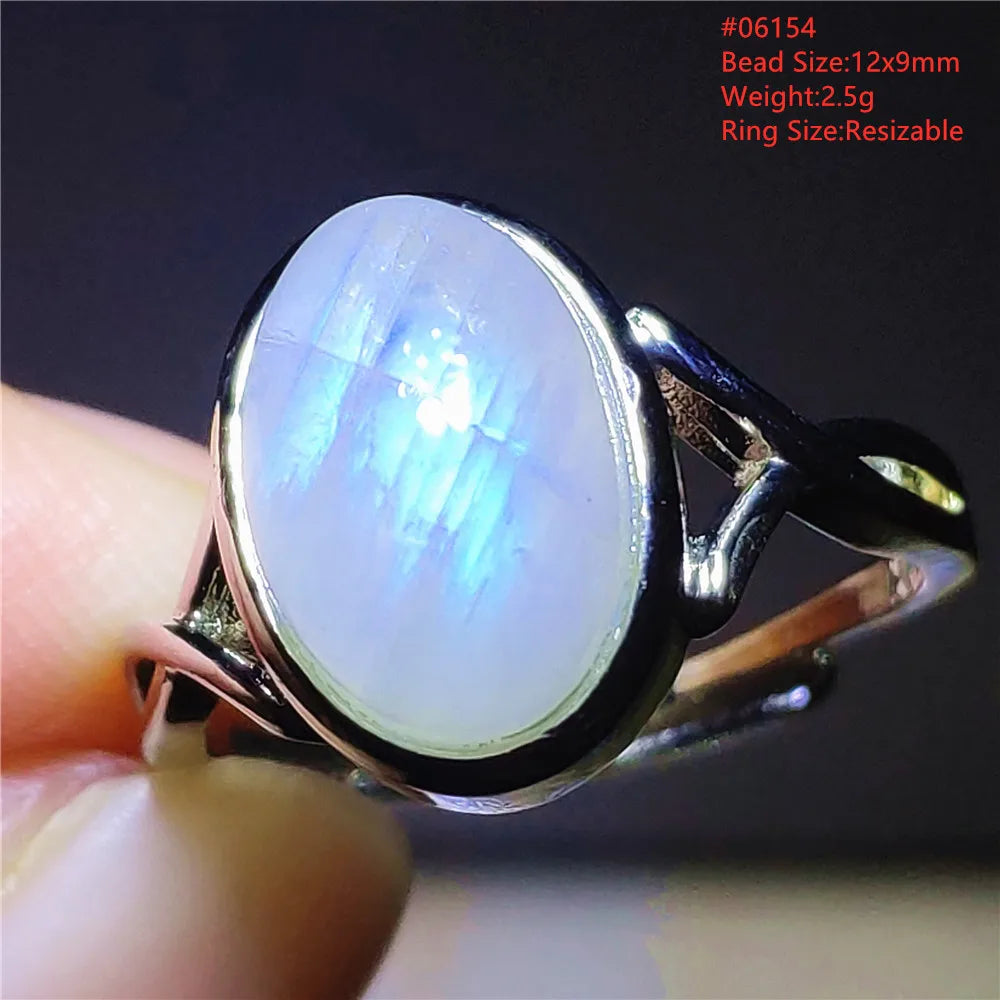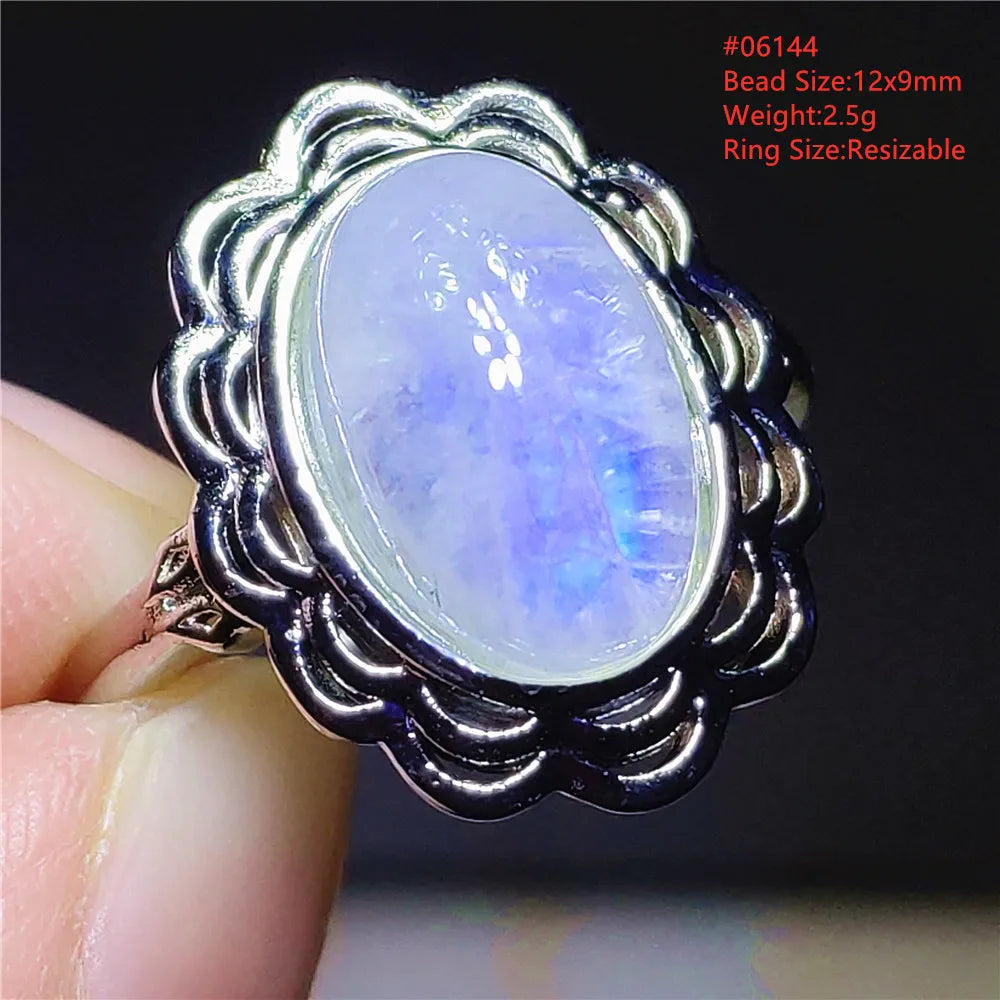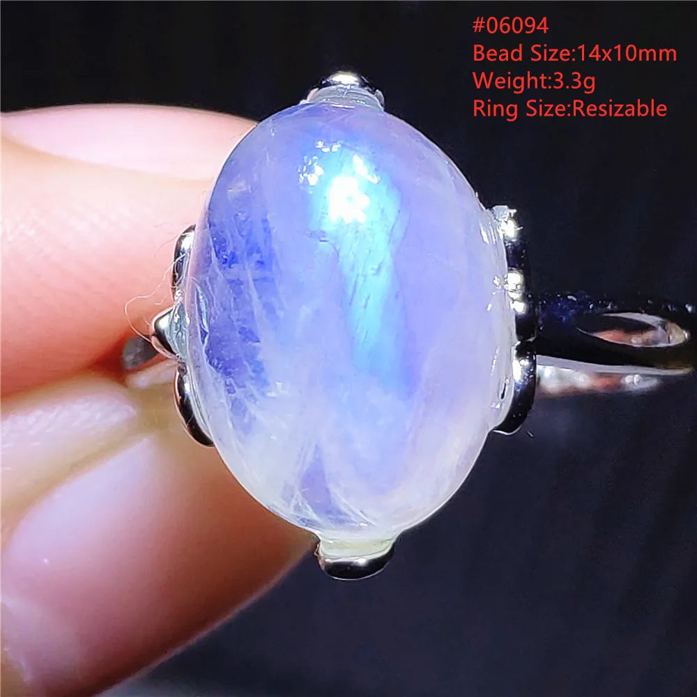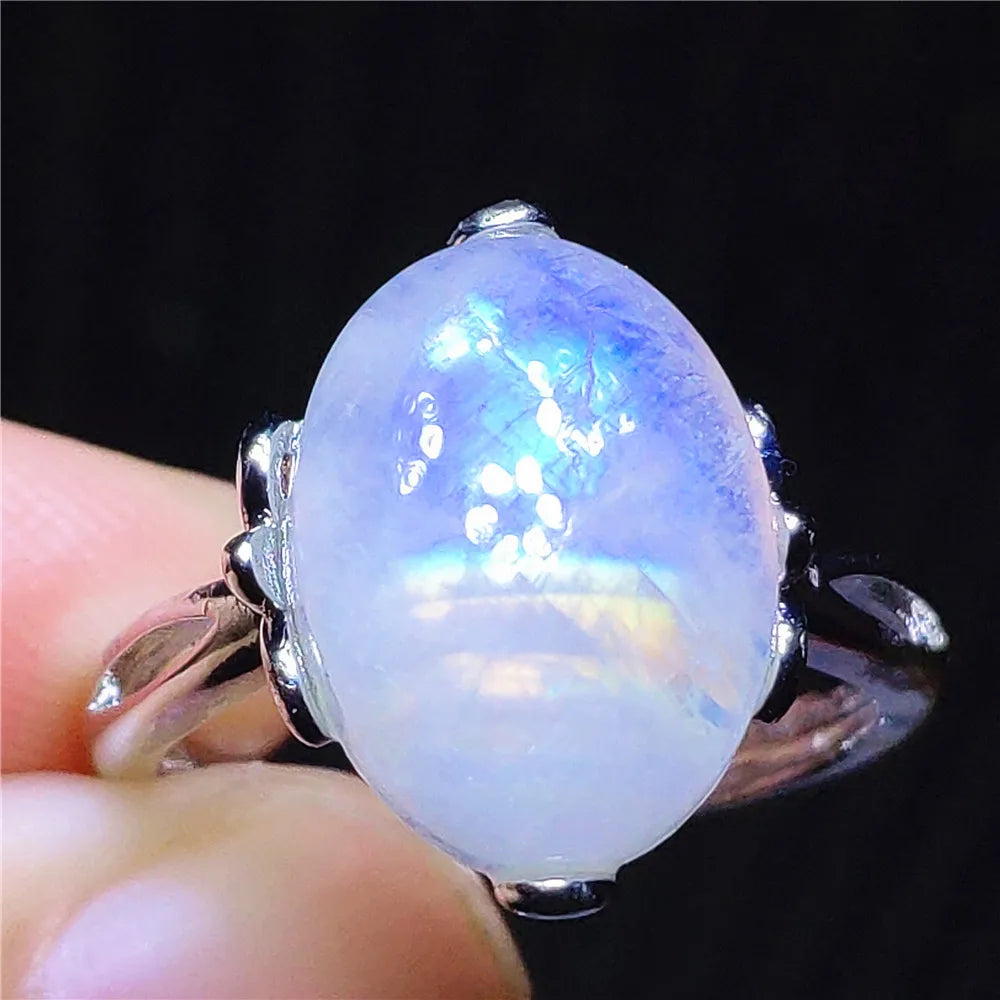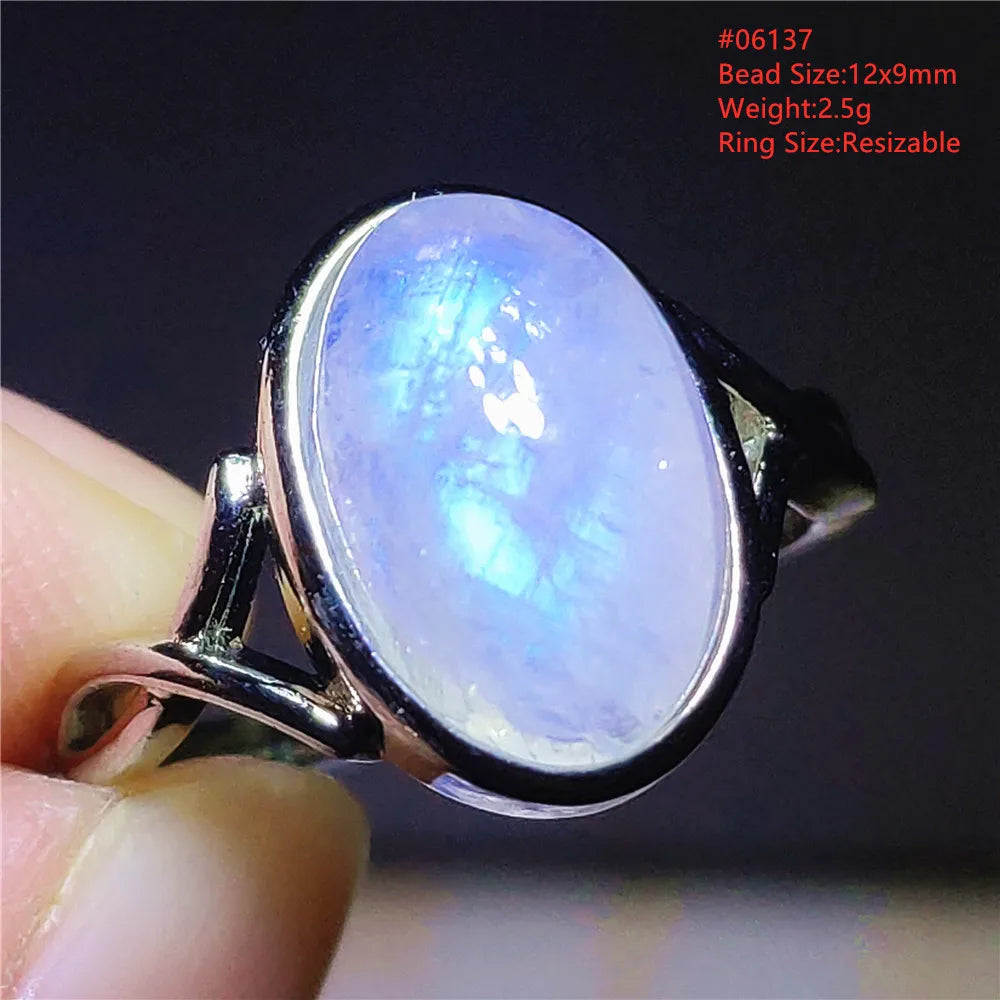 Natuurlijke blauwe maansteen ring ovaal verstelbaar alle maten vrouwen 925 zilver helderblauwe maansteen