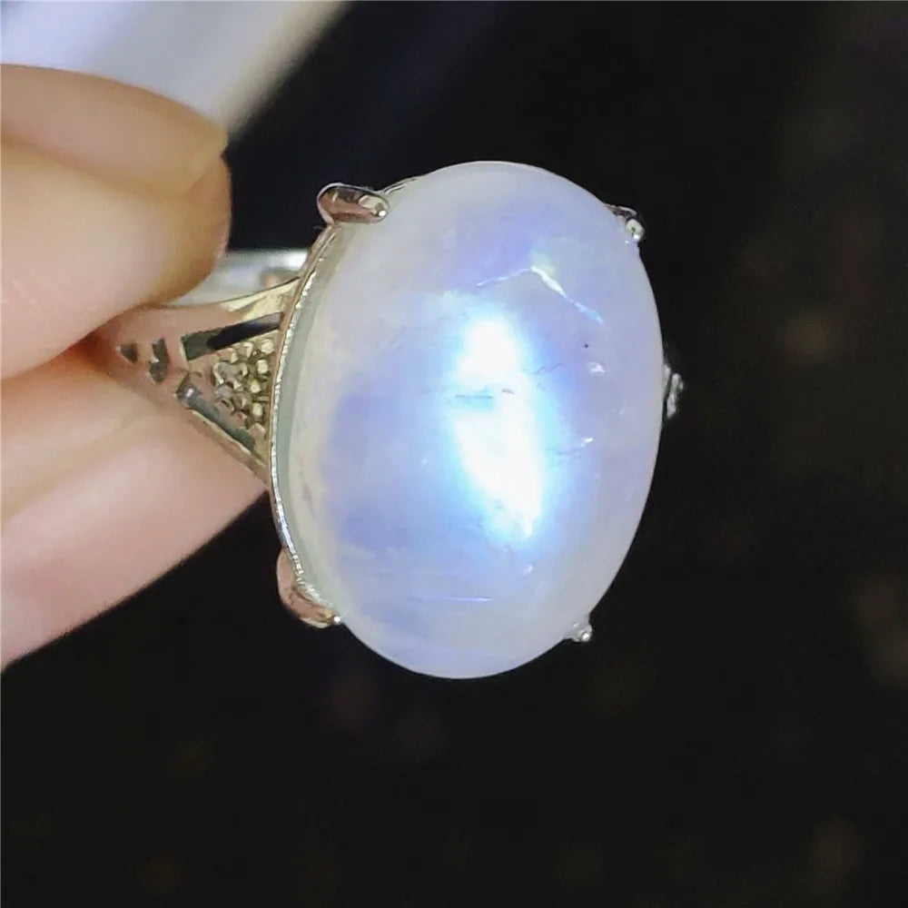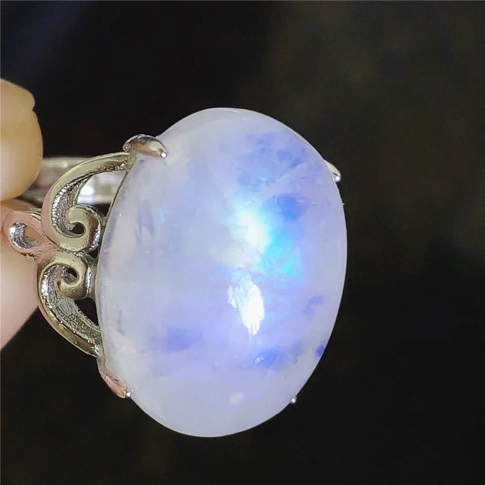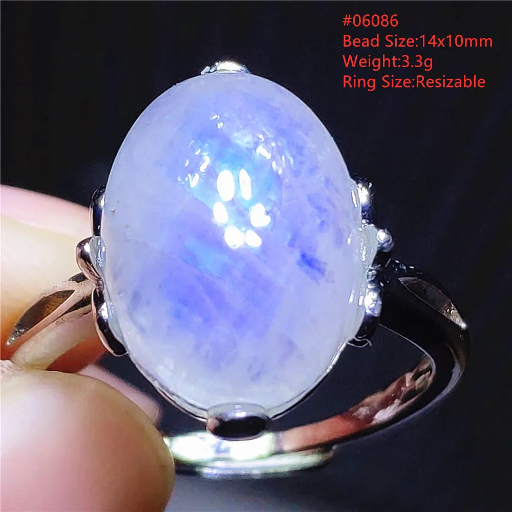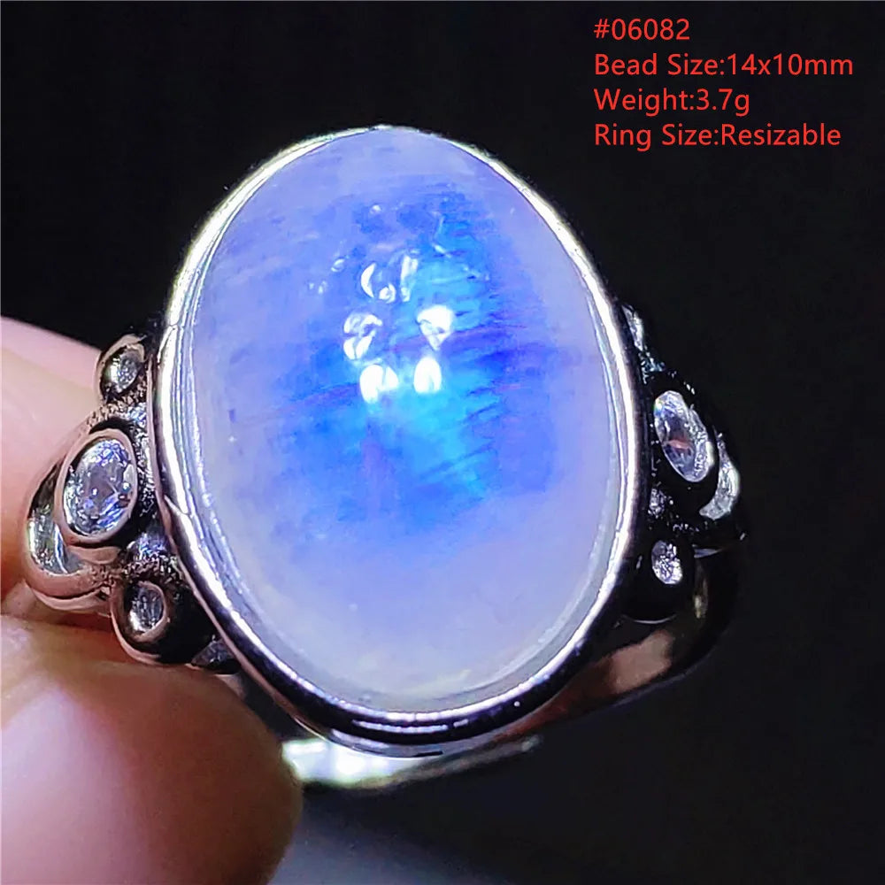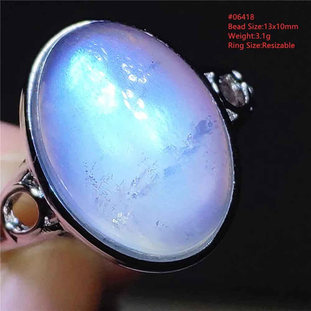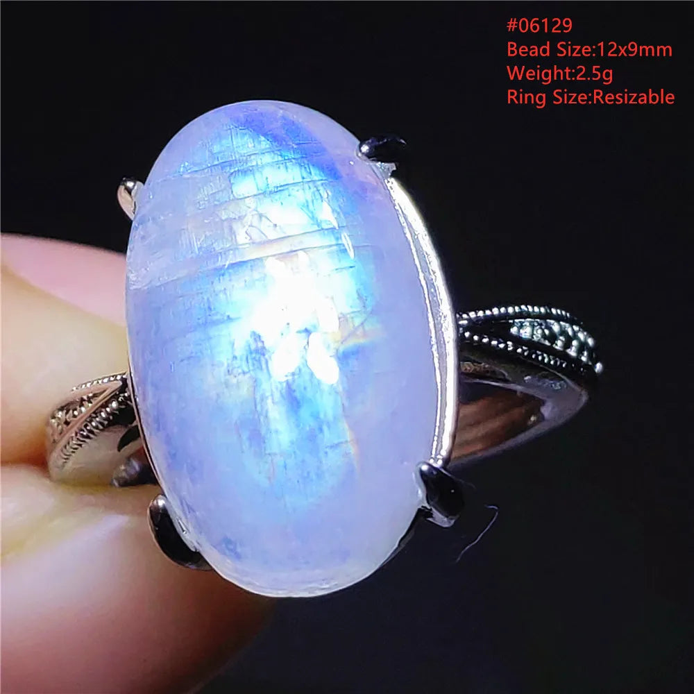 Natuurlijke blauwe maansteen ring ovaal verstelbaar alle maten vrouwen 925 zilver helderblauwe maansteen