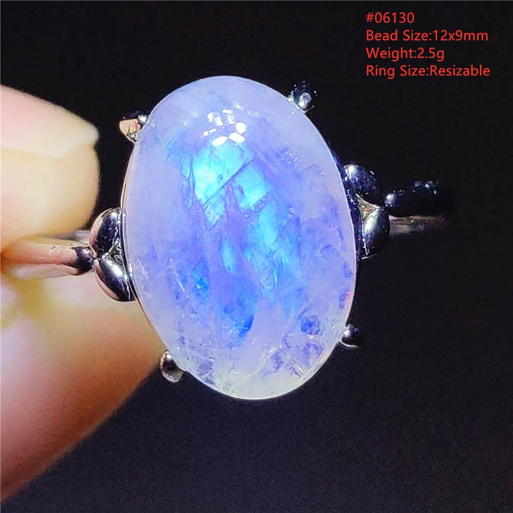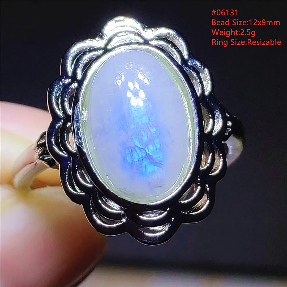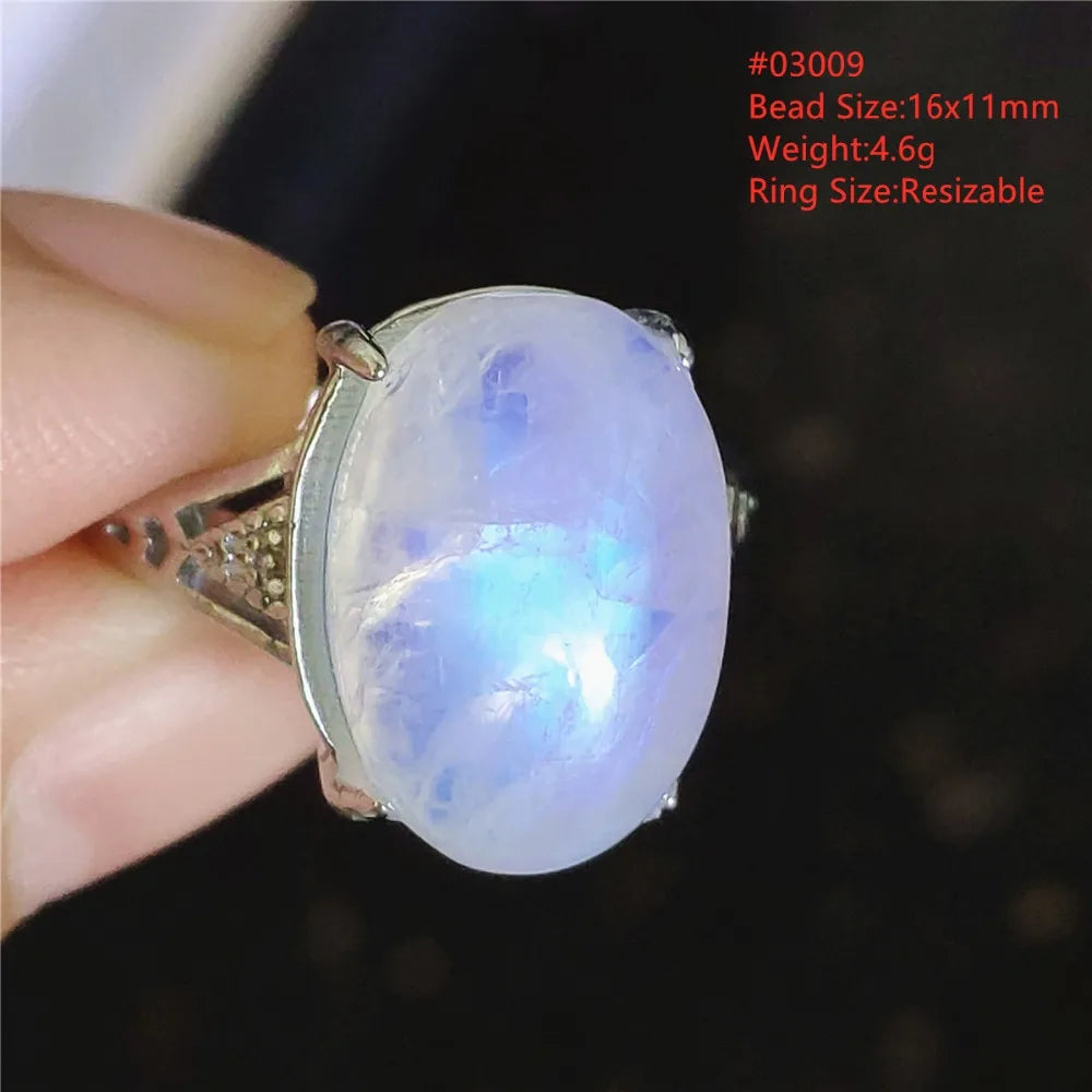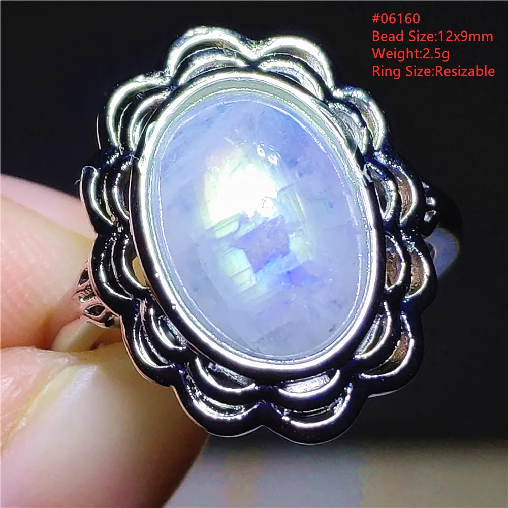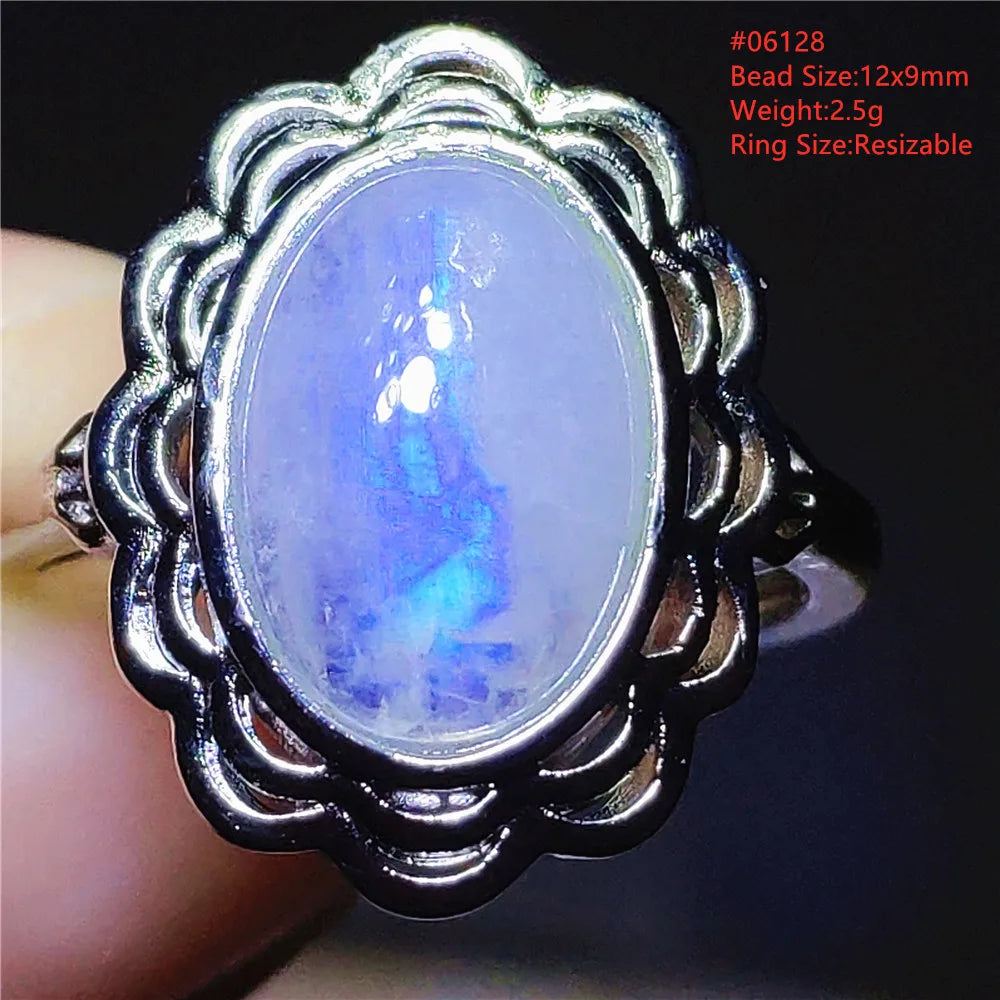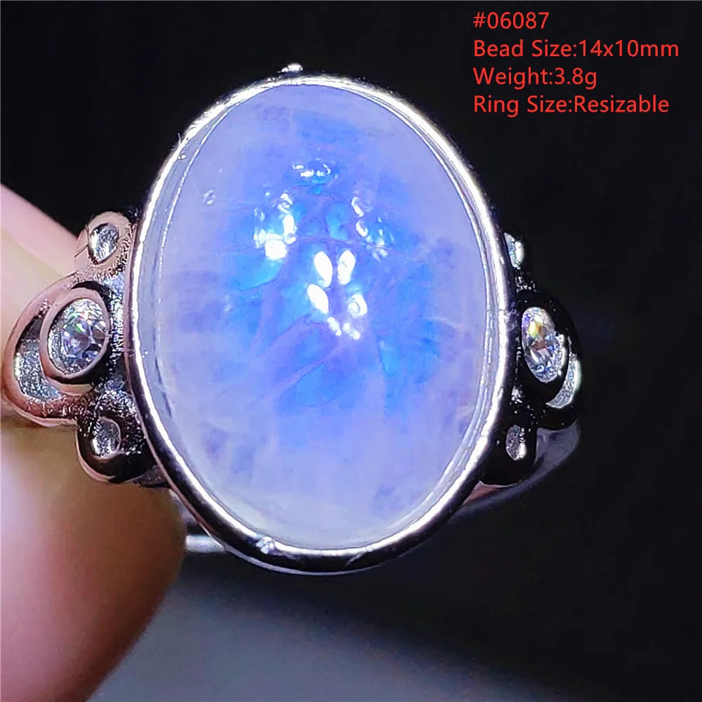 Natuurlijke blauwe maansteen ring ovaal verstelbaar alle maten vrouwen 925 zilver helderblauwe maansteen