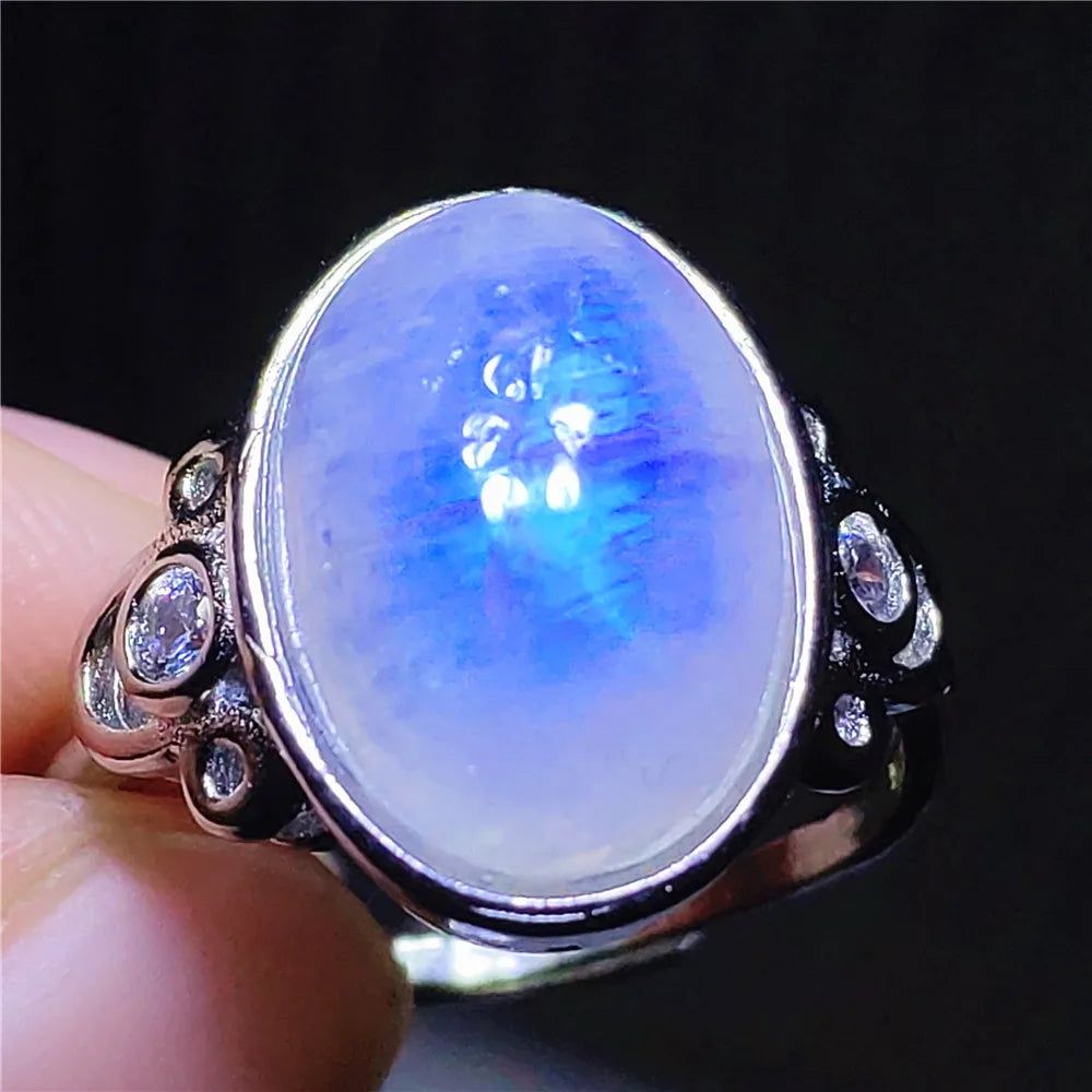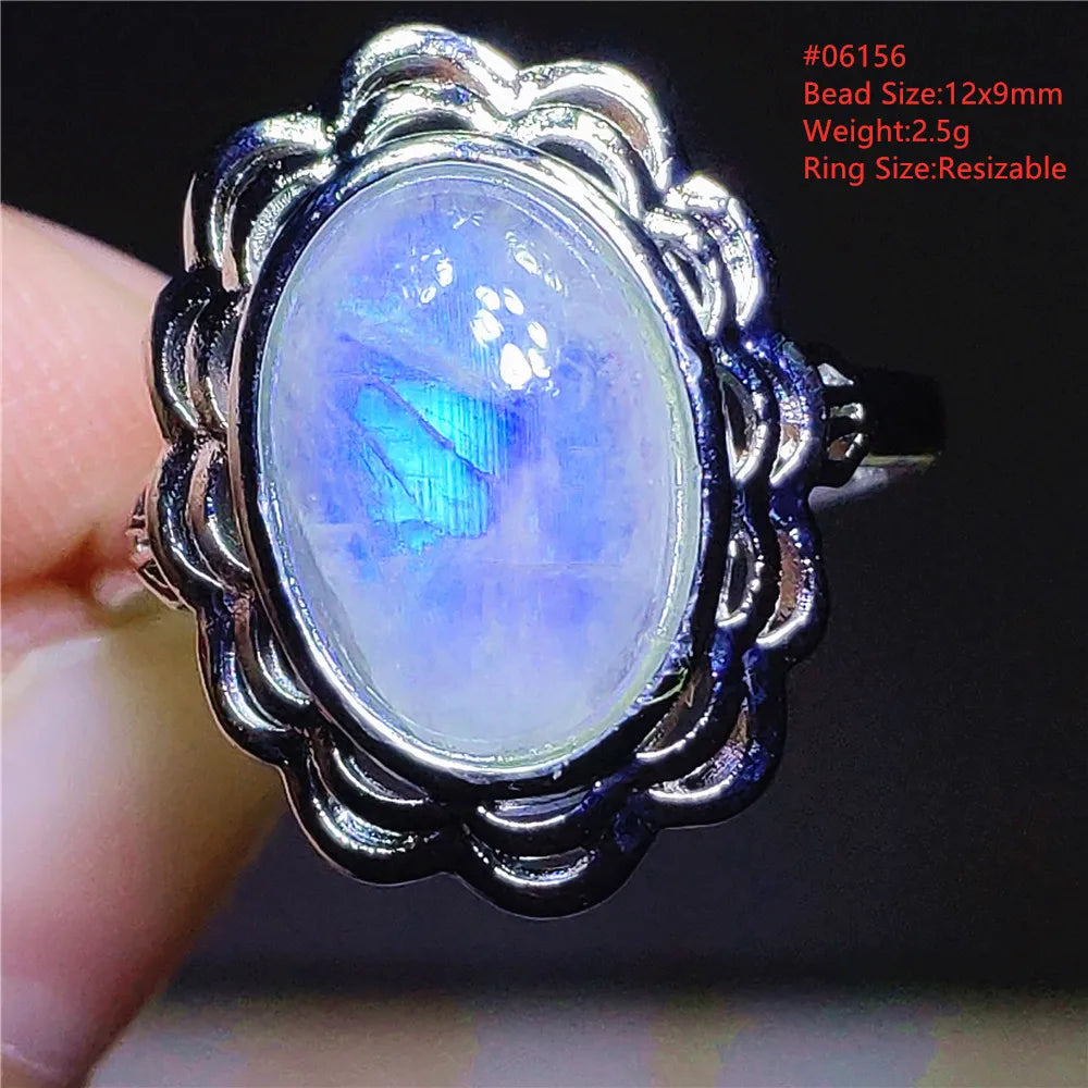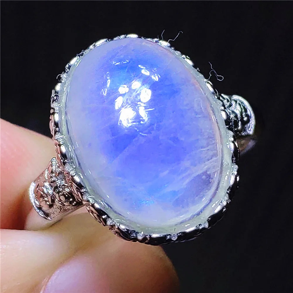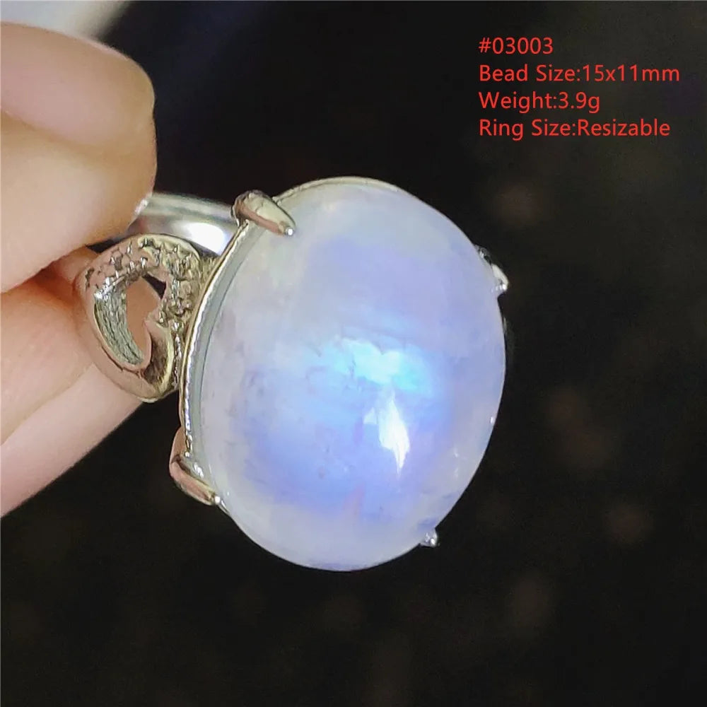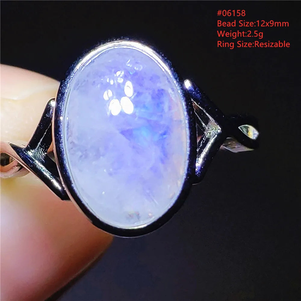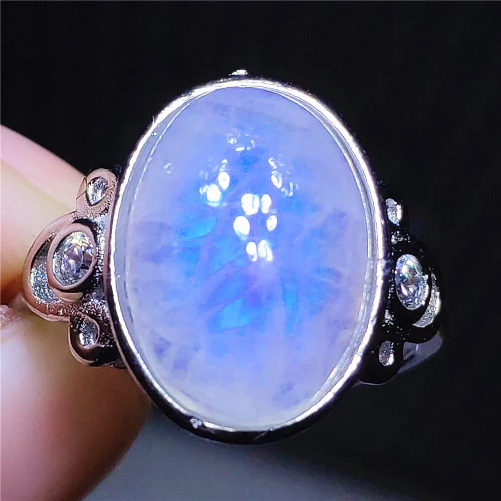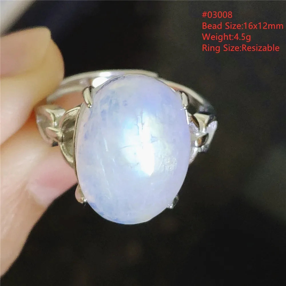 Natuurlijke blauwe maansteen ring ovaal verstelbaar alle maten vrouwen 925 zilver helderblauwe maansteen
