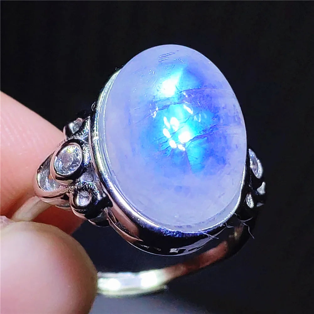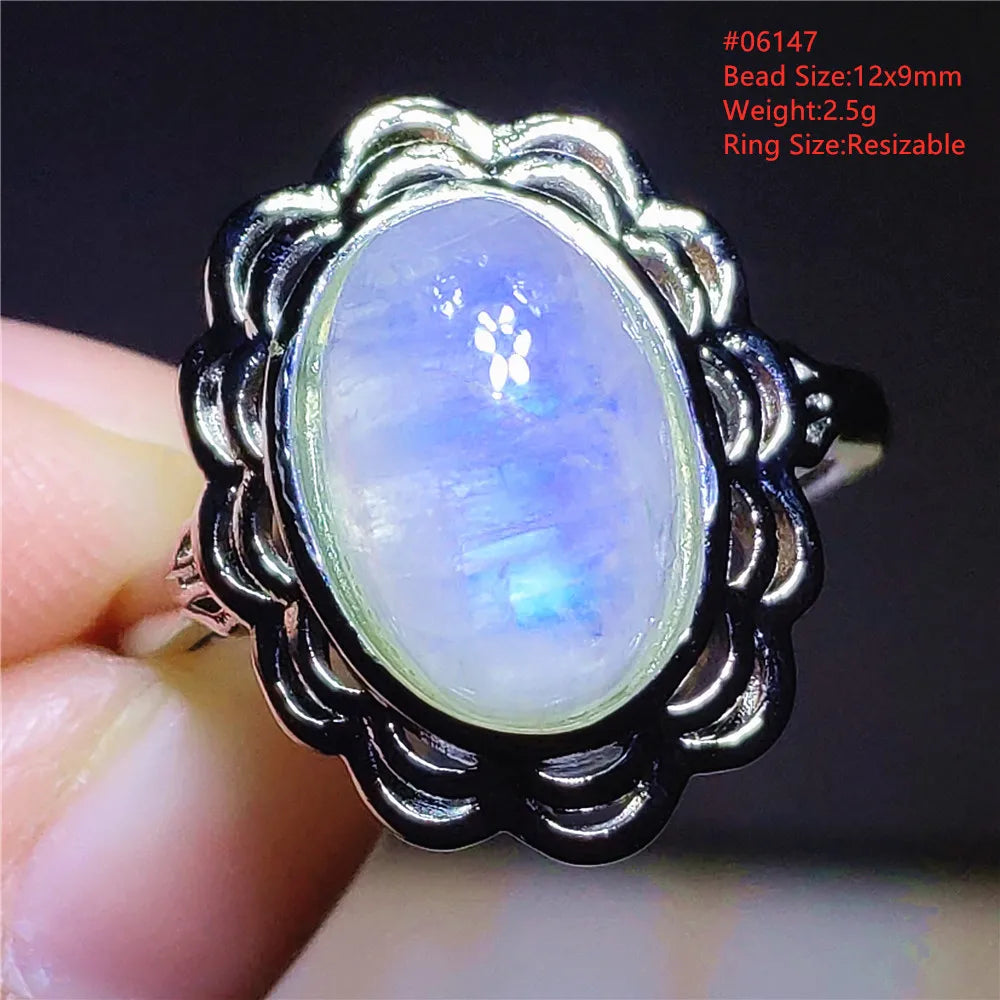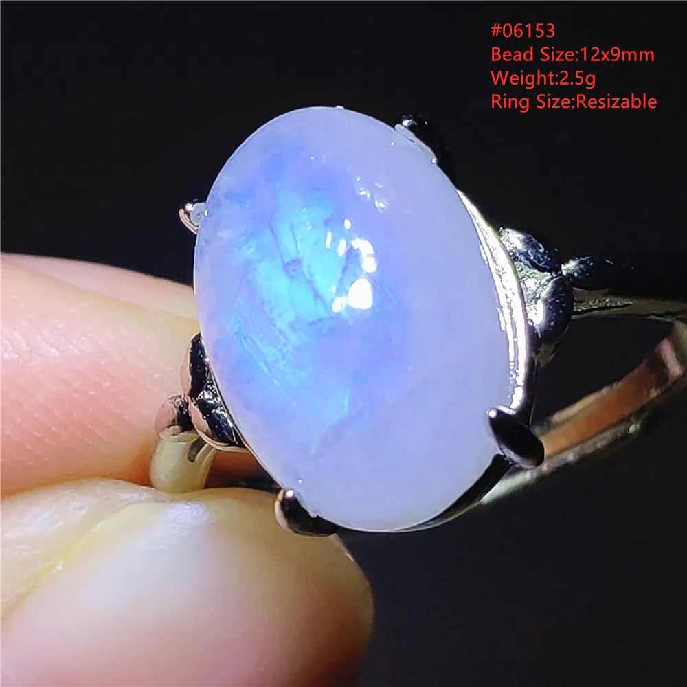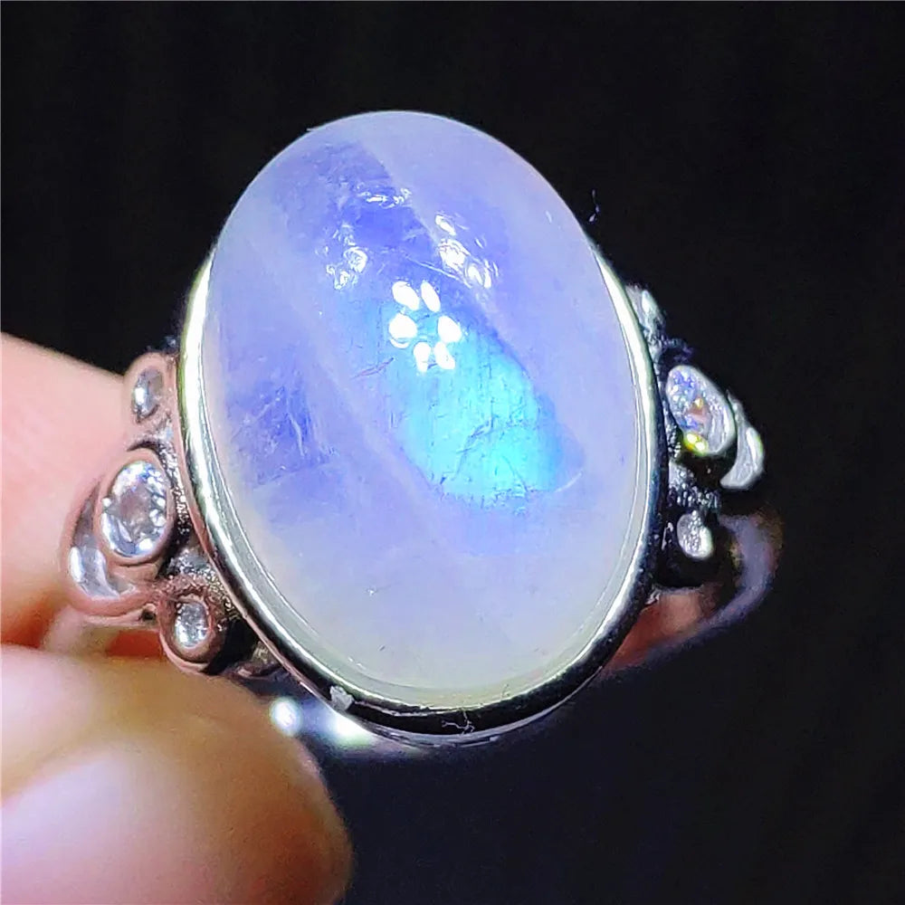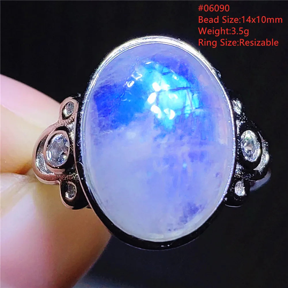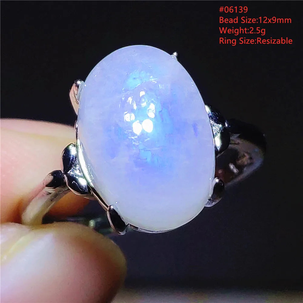 Natuurlijke blauwe maansteen ring ovaal verstelbaar alle maten vrouwen 925 zilver helderblauwe maansteen