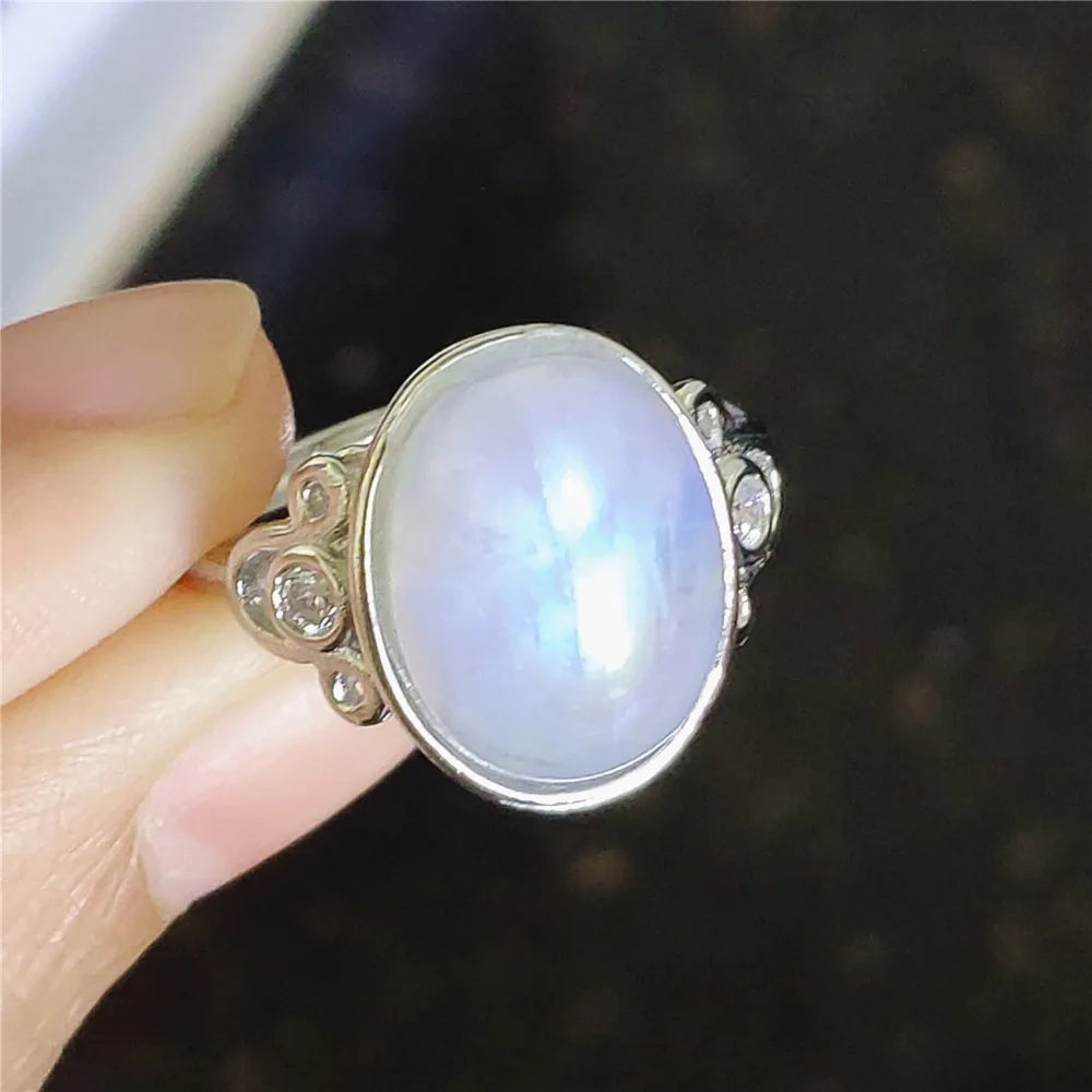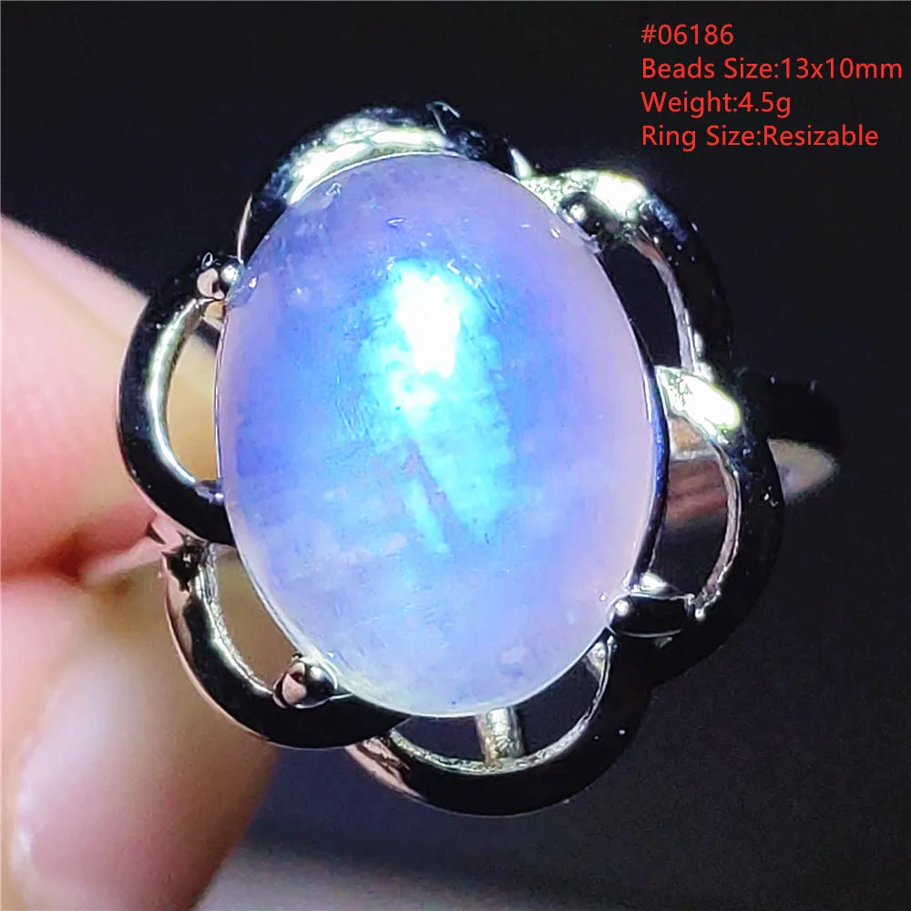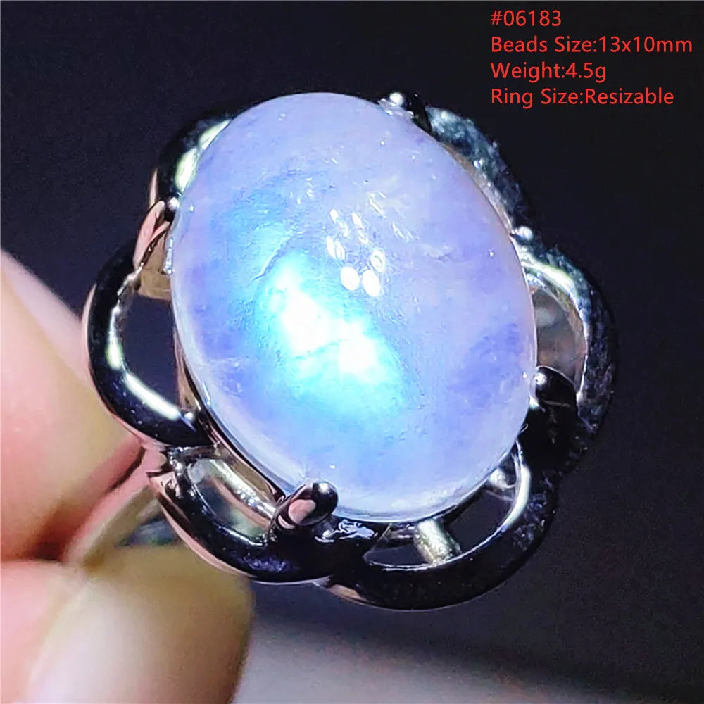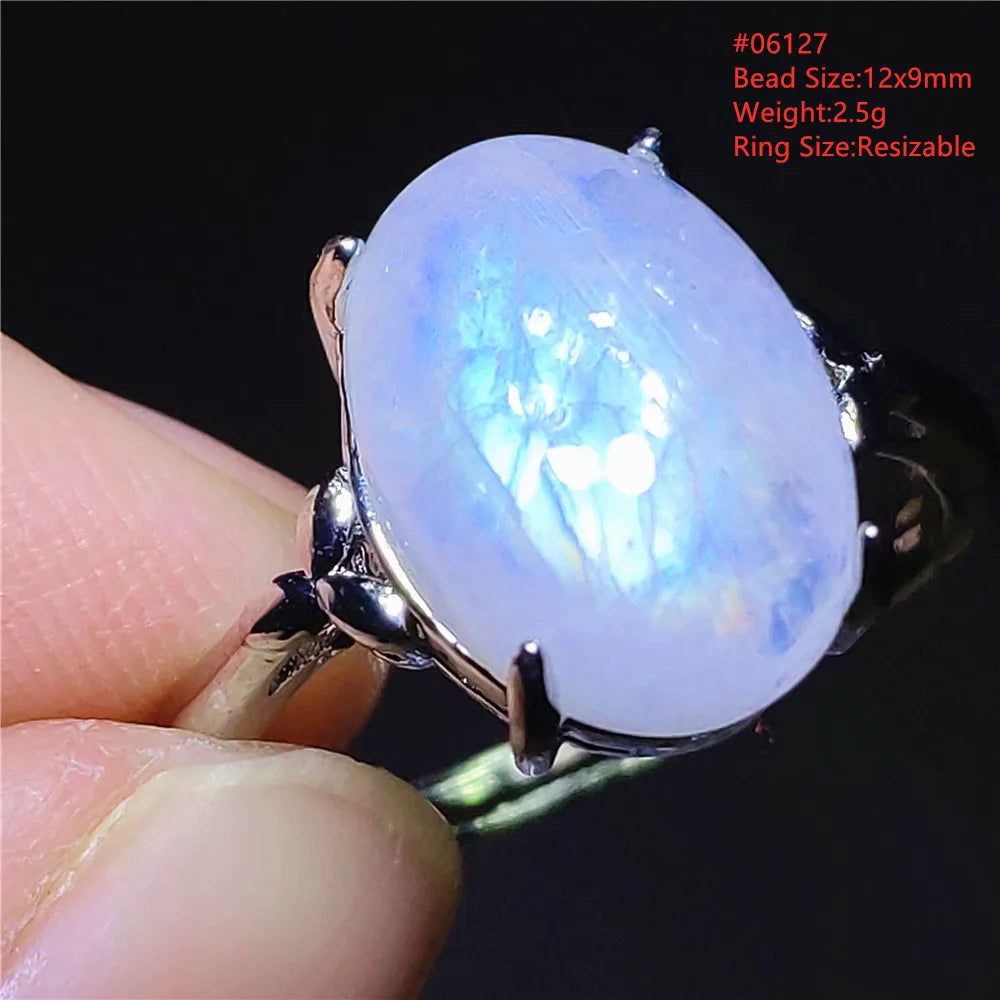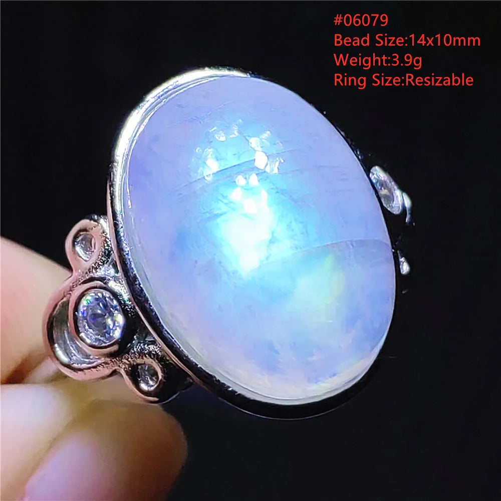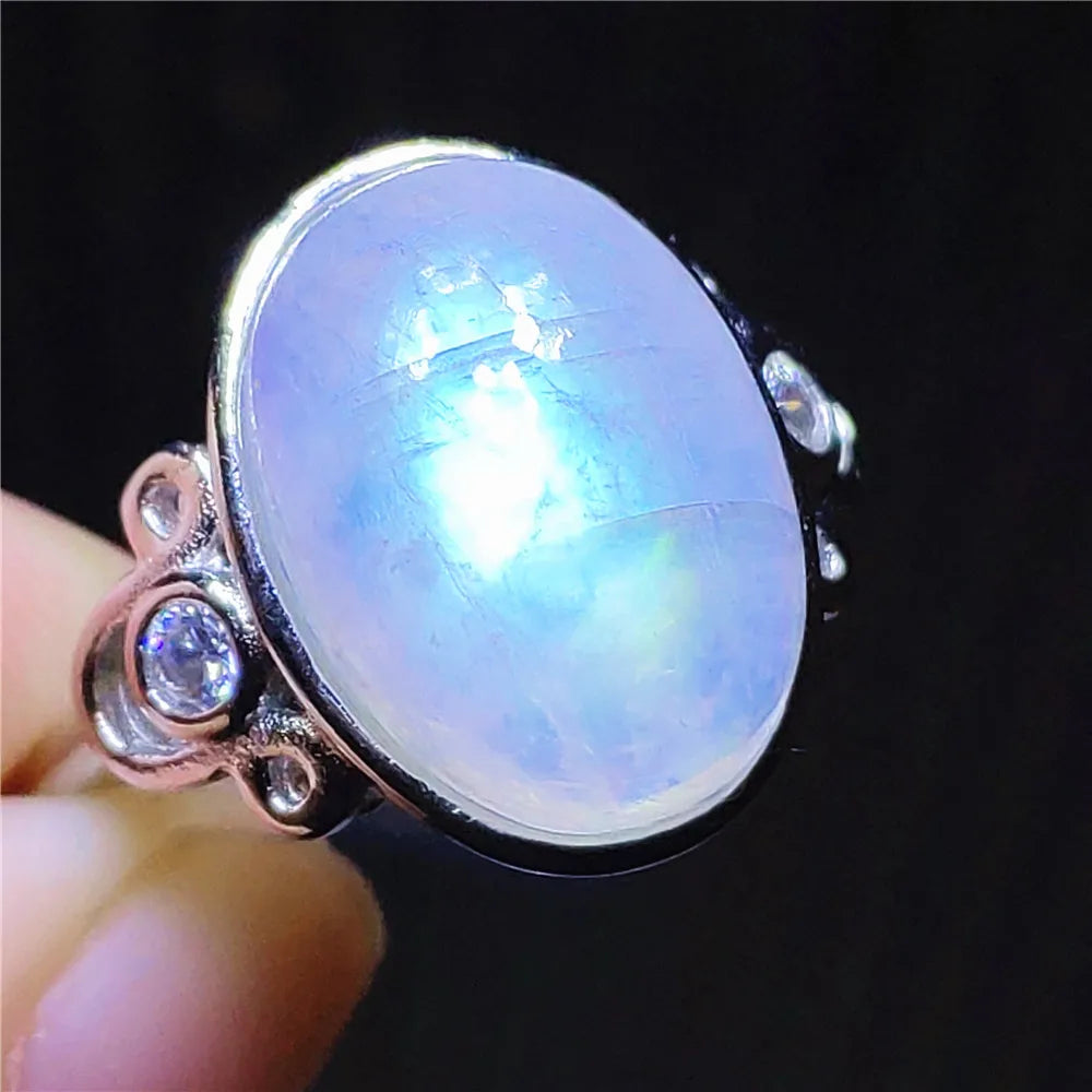 Natuurlijke blauwe maansteen ring ovaal verstelbaar alle maten vrouwen 925 zilver helderblauwe maansteen