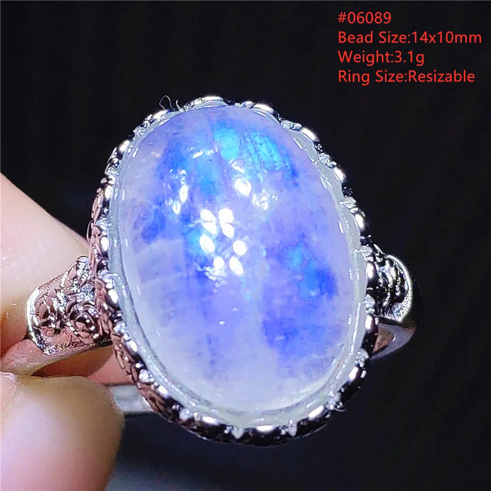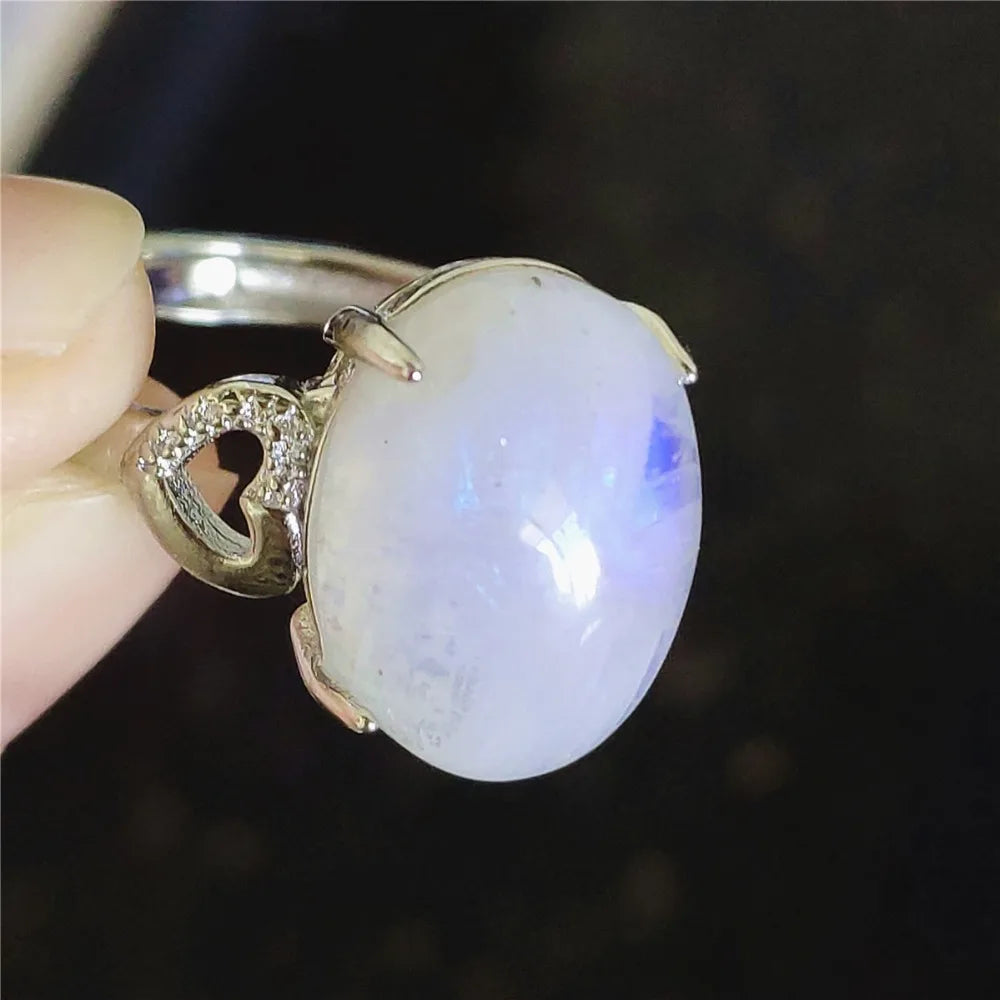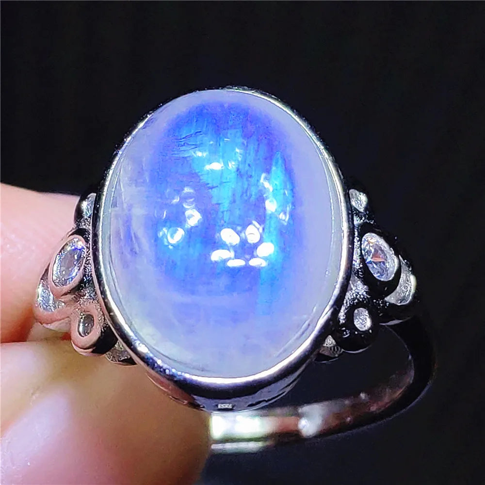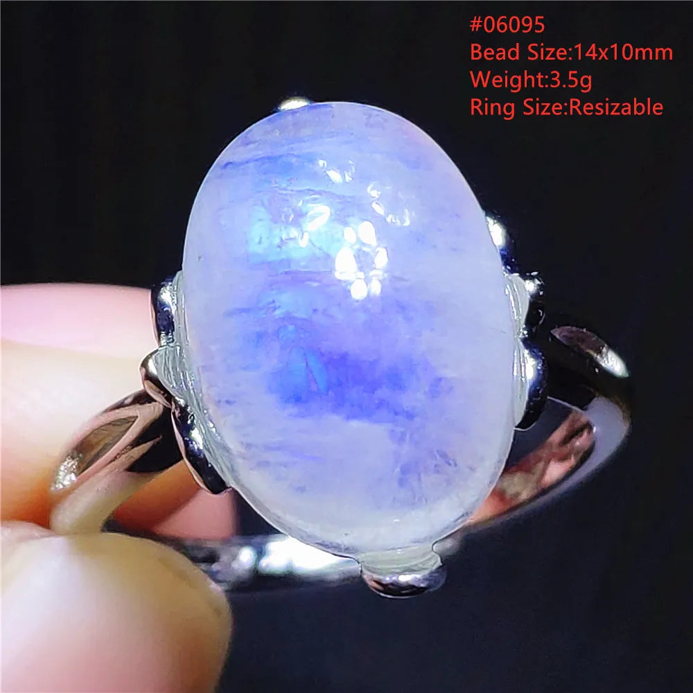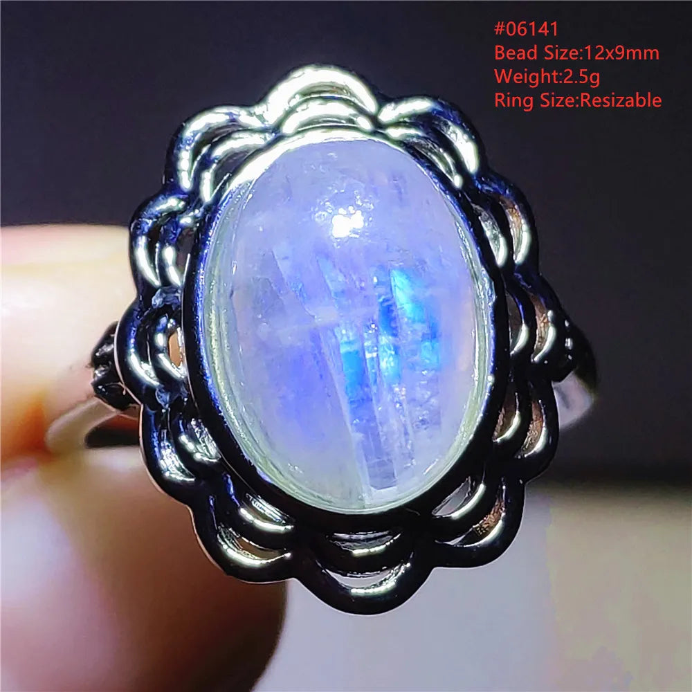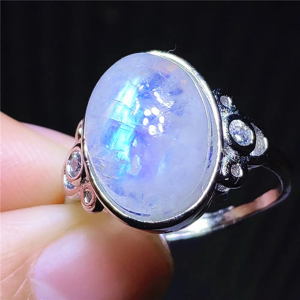Natuurlijke blauwe maansteen ring ovaal verstelbaar alle maten vrouwen 925 zilver helderblauwe maansteen