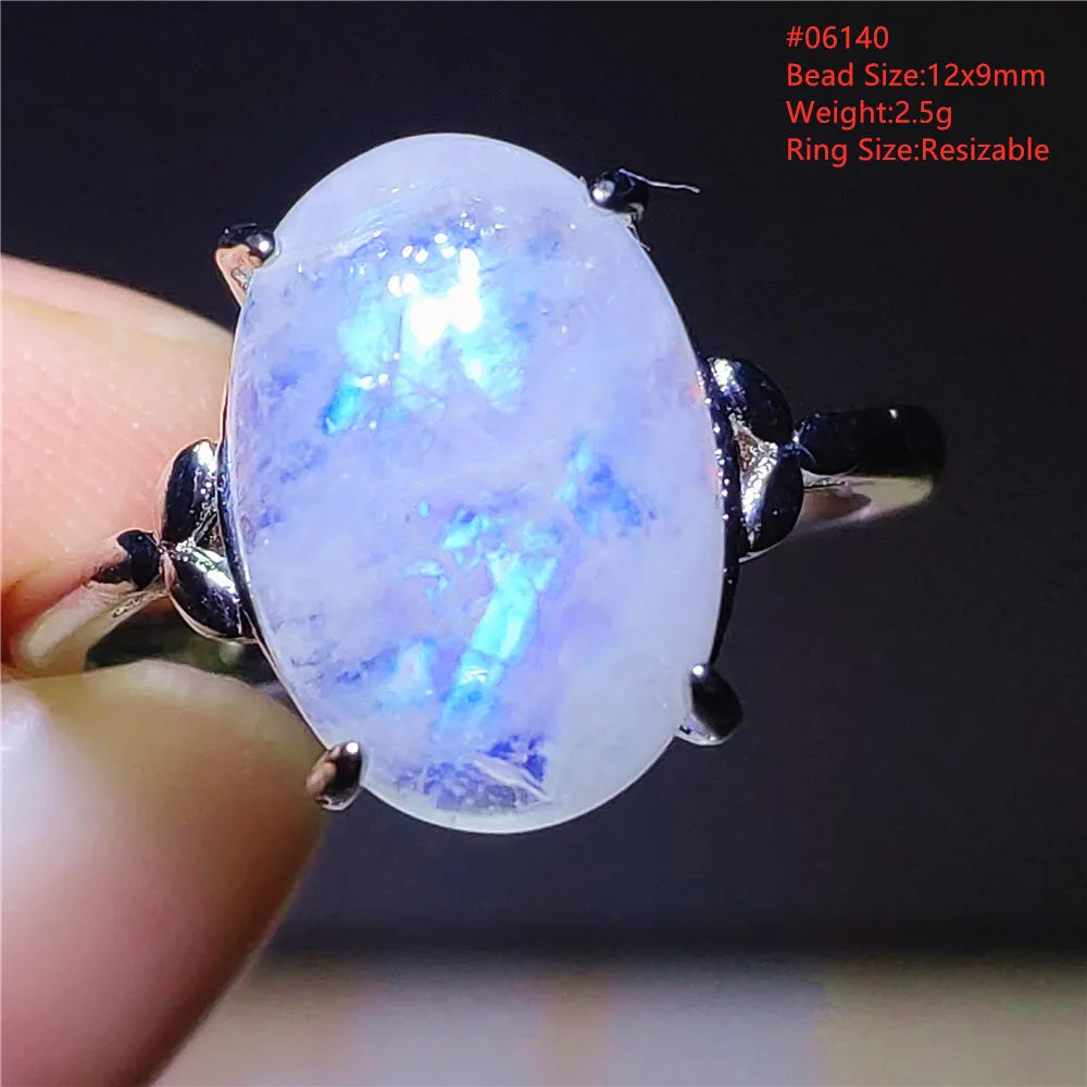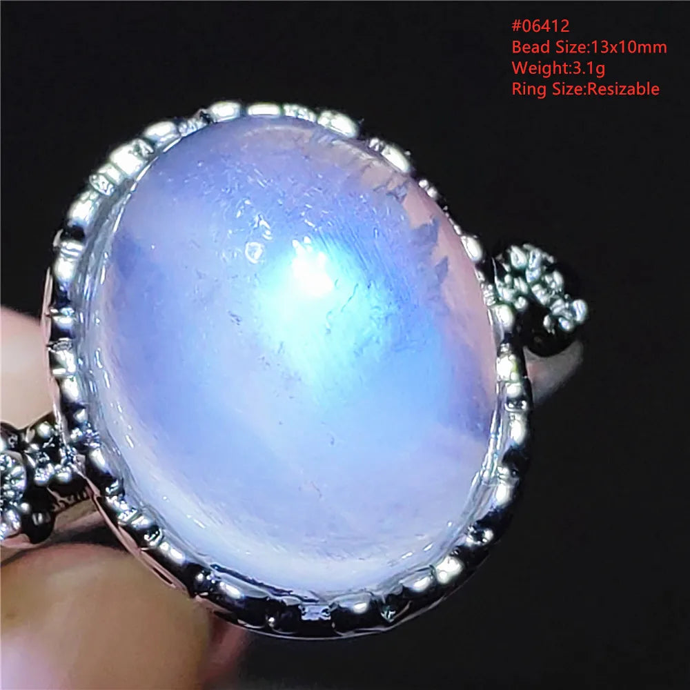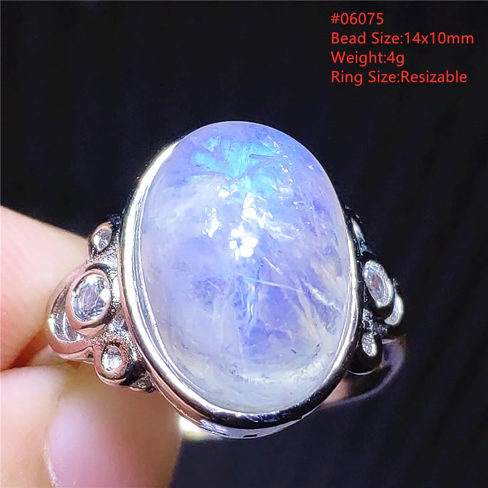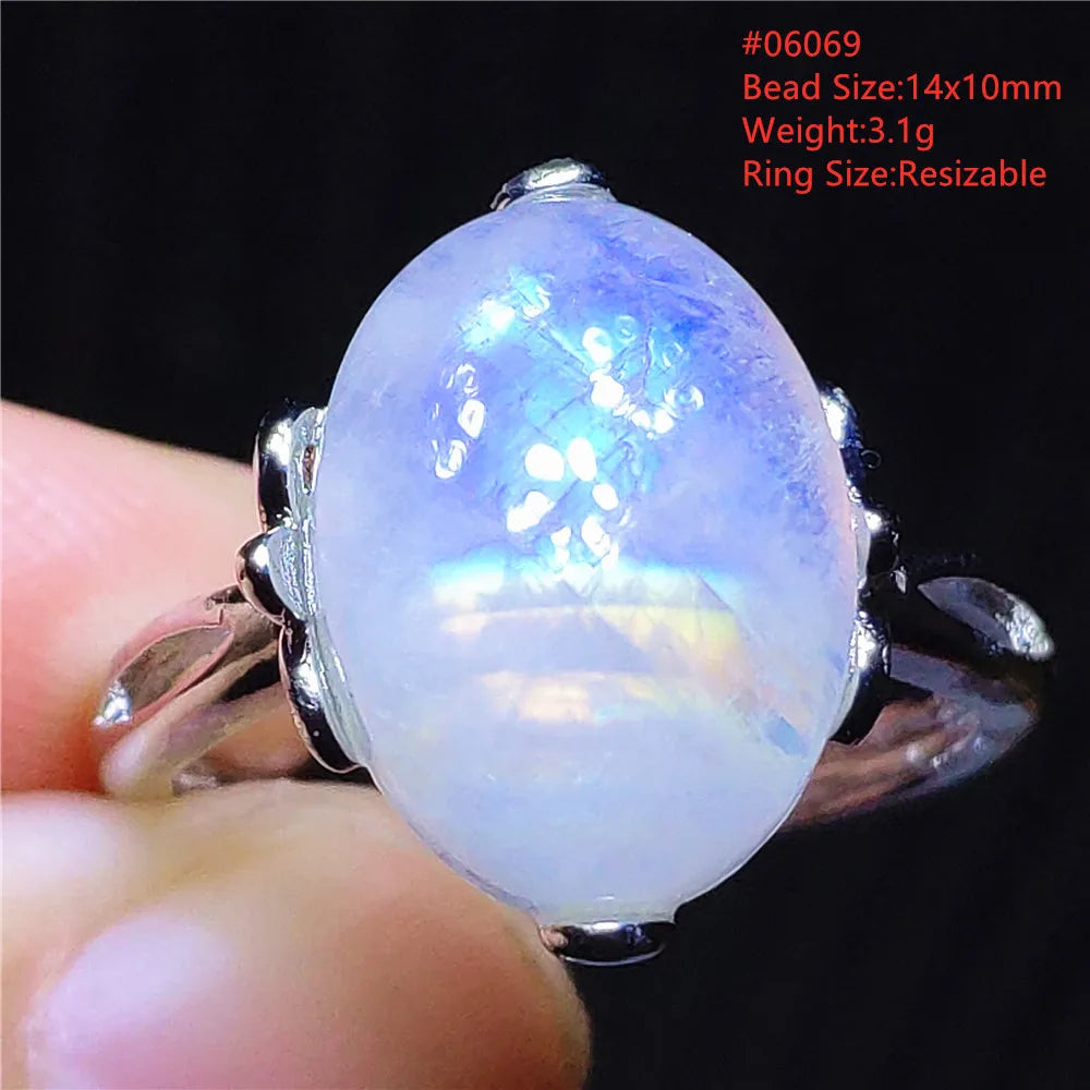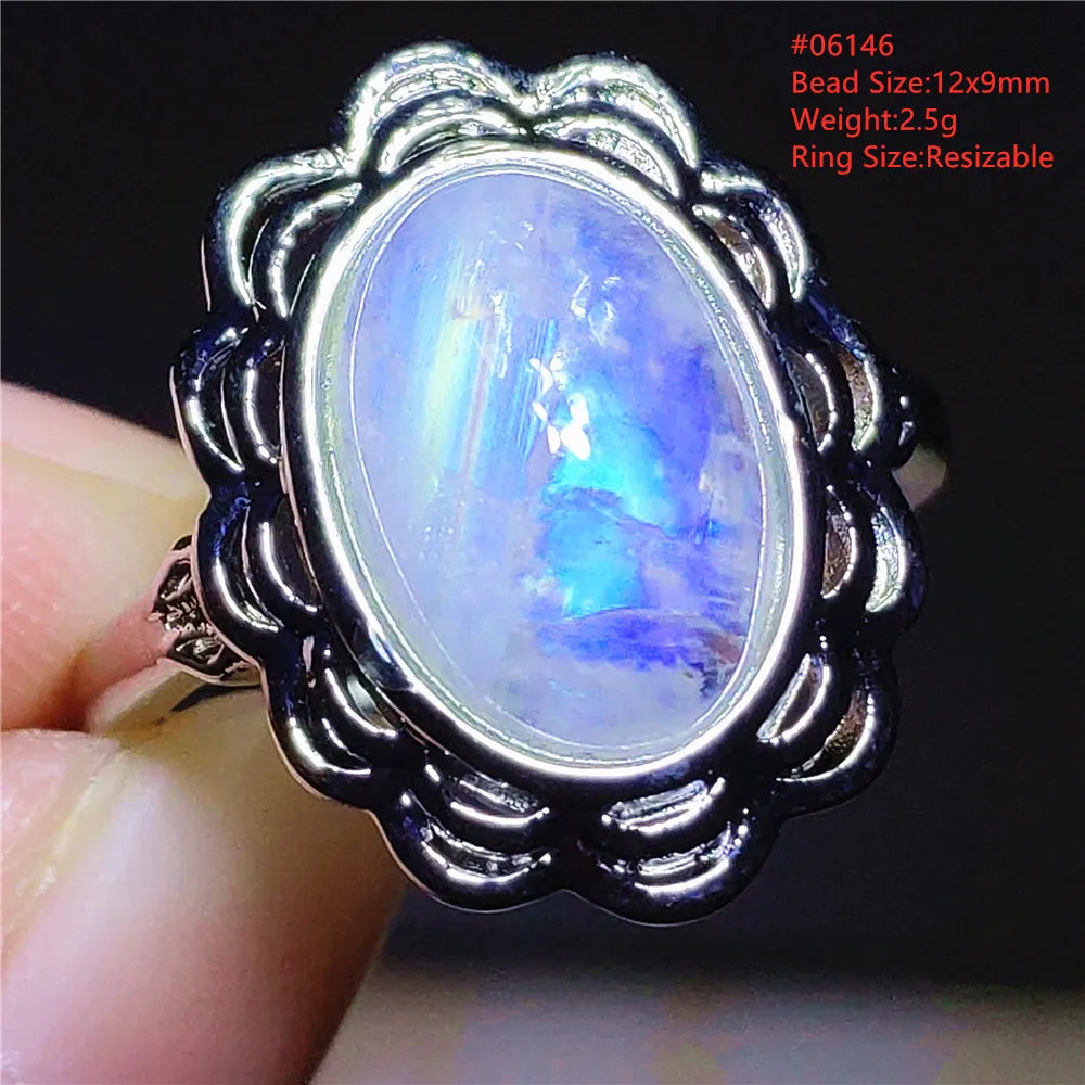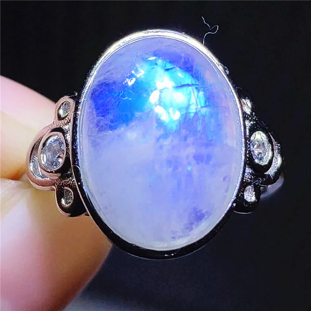 Natuurlijke blauwe maansteen ring ovaal verstelbaar alle maten vrouwen 925 zilver helderblauwe maansteen