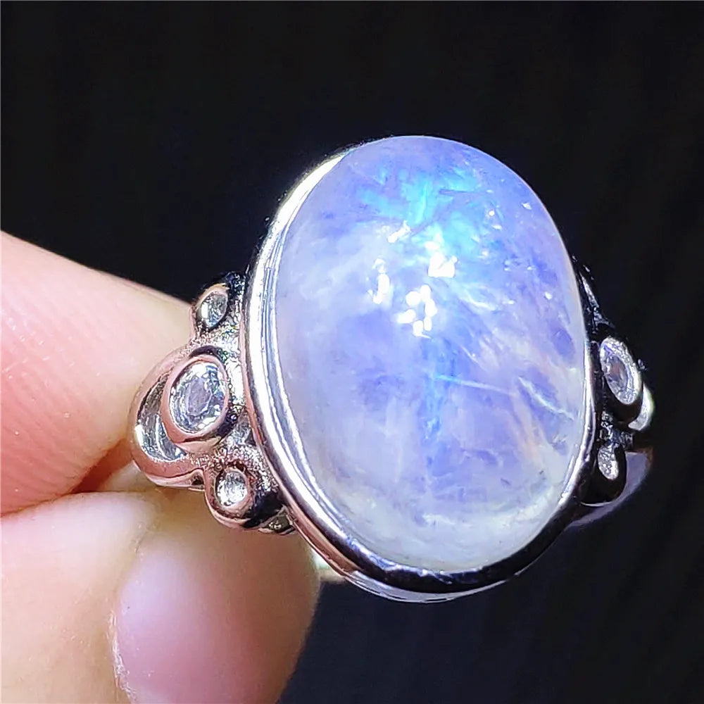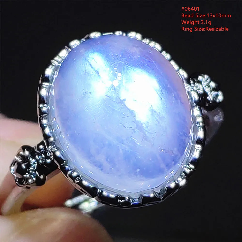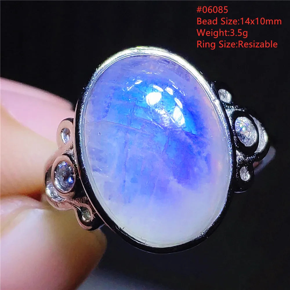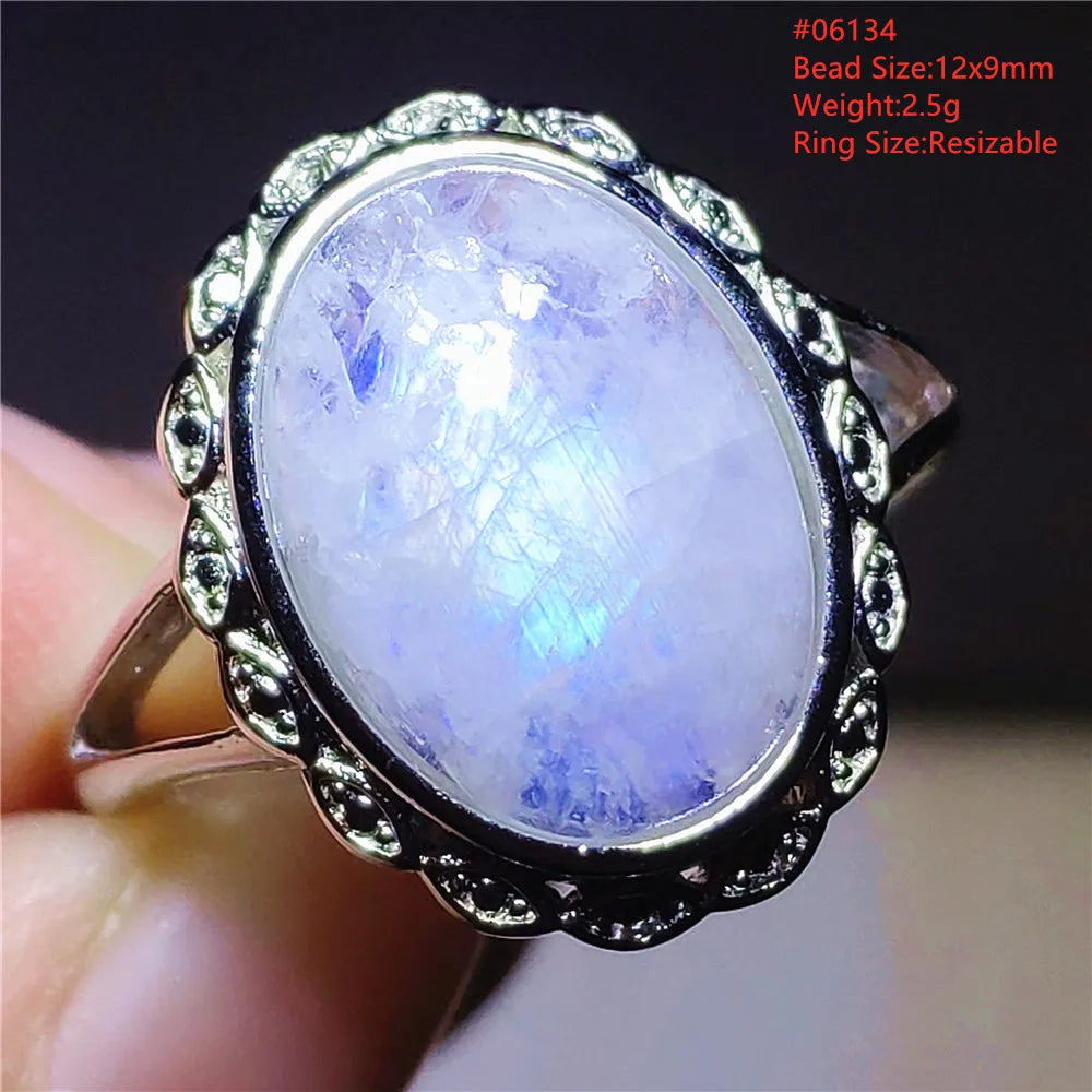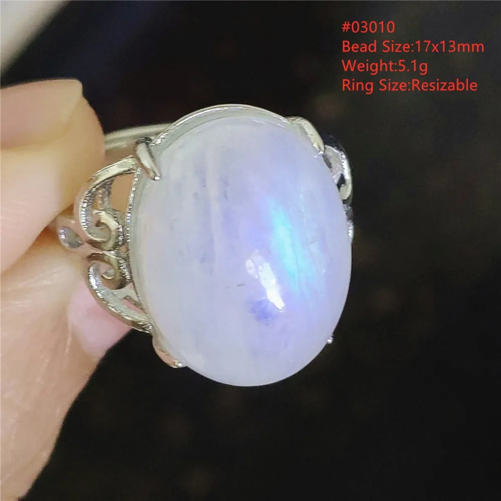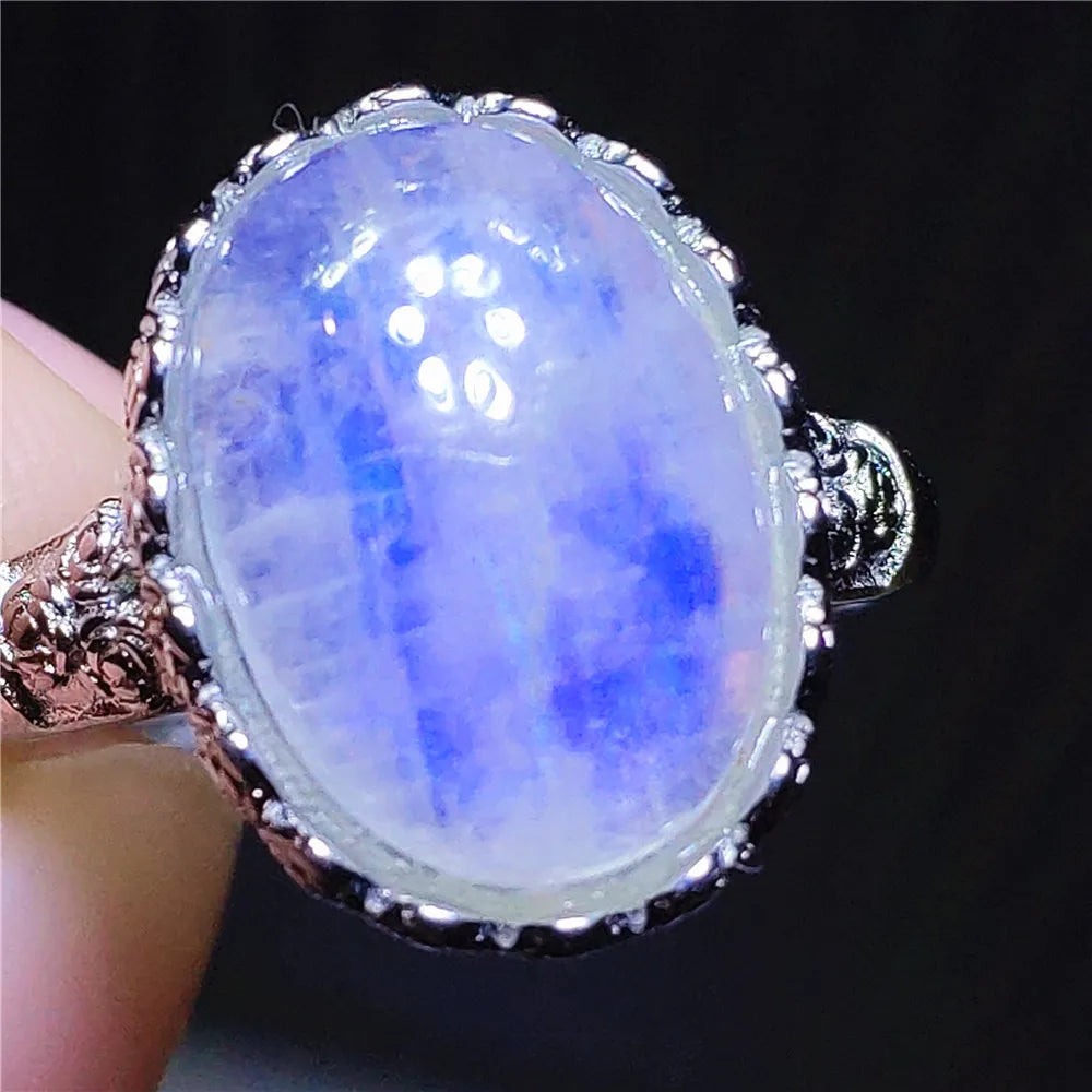 Natuurlijke blauwe maansteen ring ovaal verstelbaar alle maten vrouwen 925 zilver helderblauwe maansteen