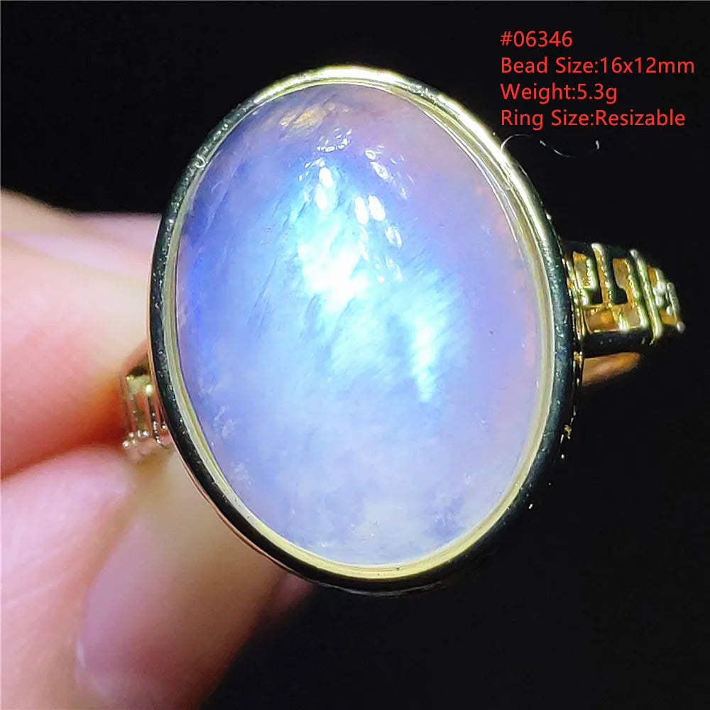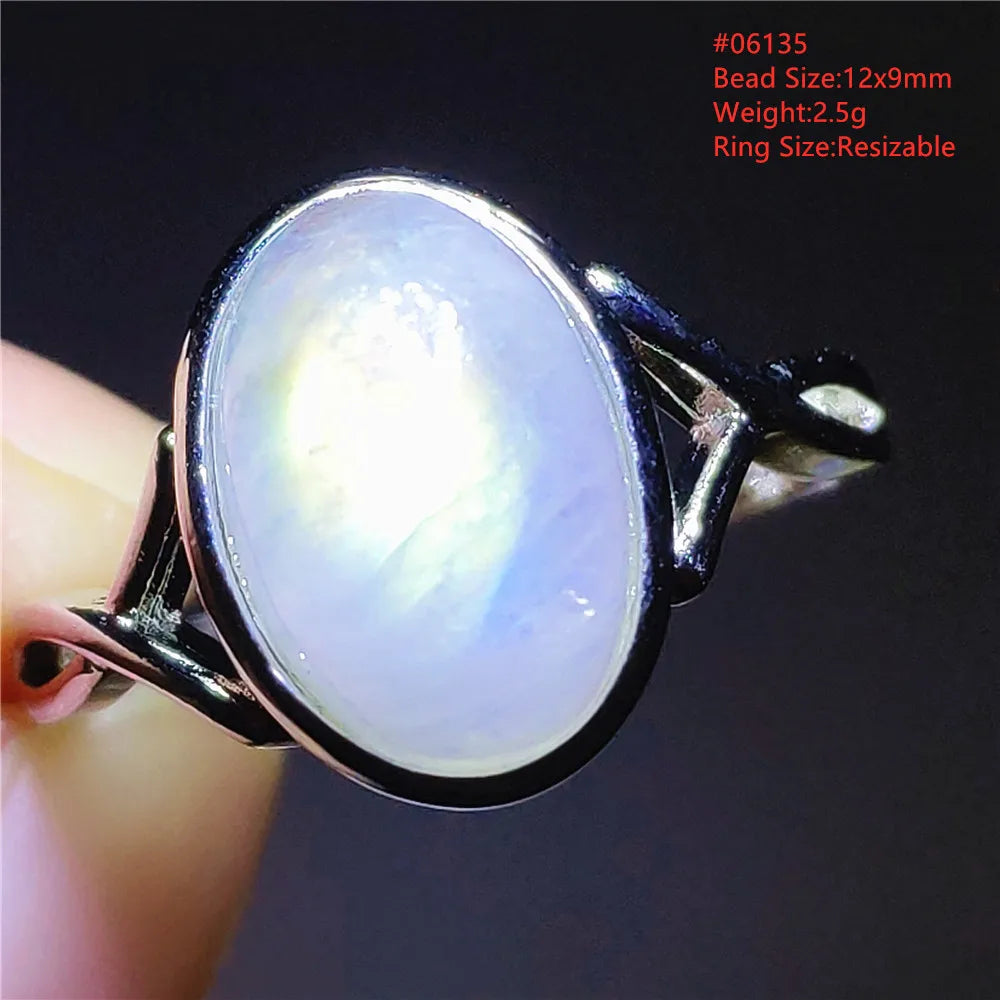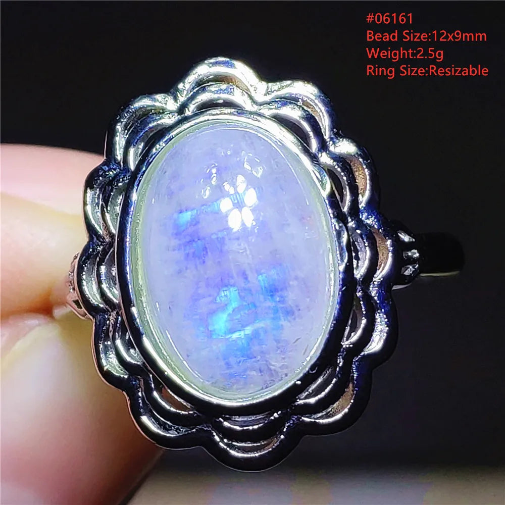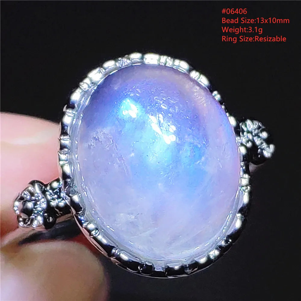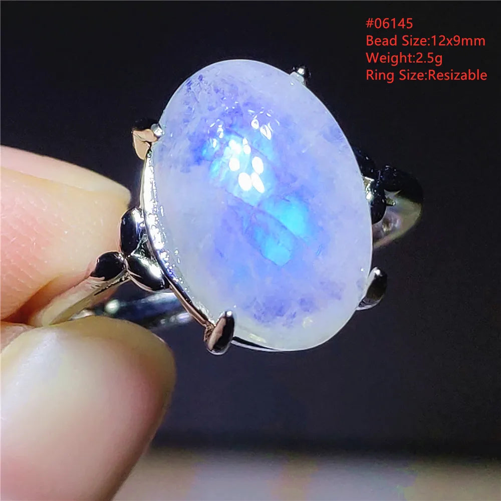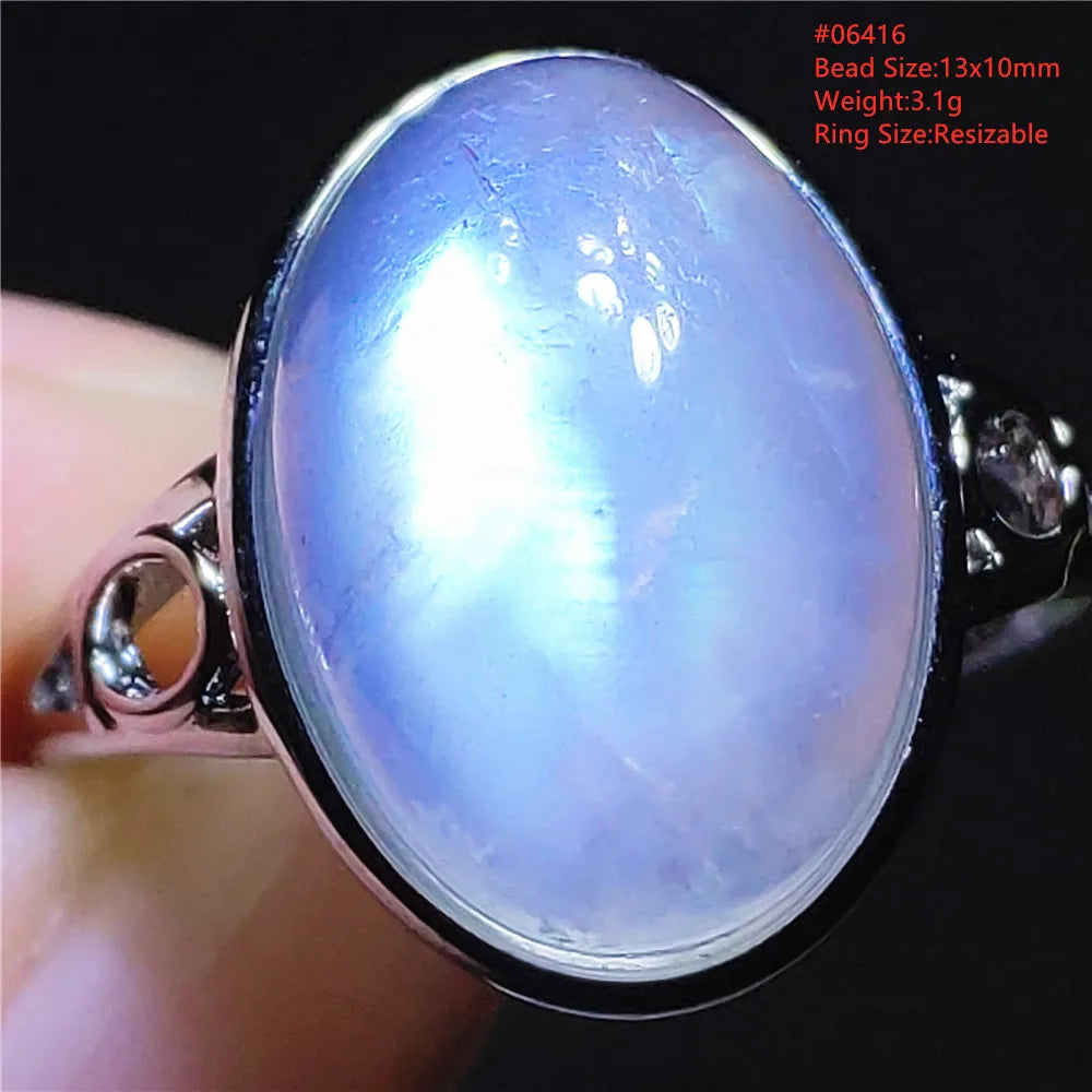 Natuurlijke blauwe maansteen ring ovaal verstelbaar alle maten vrouwen 925 zilver helderblauwe maansteen