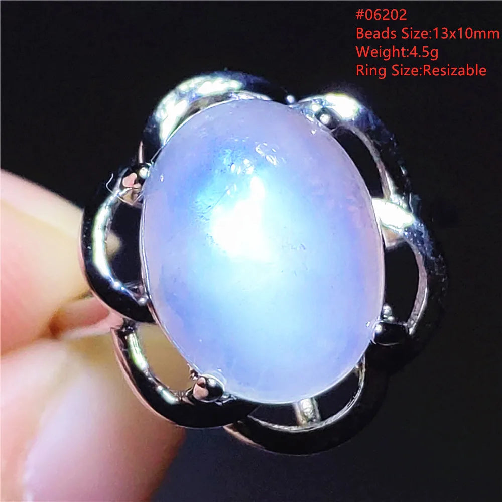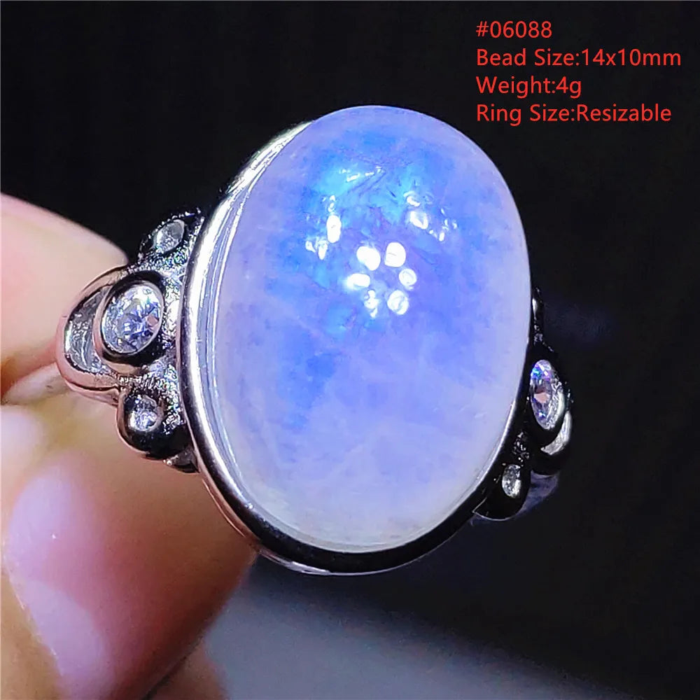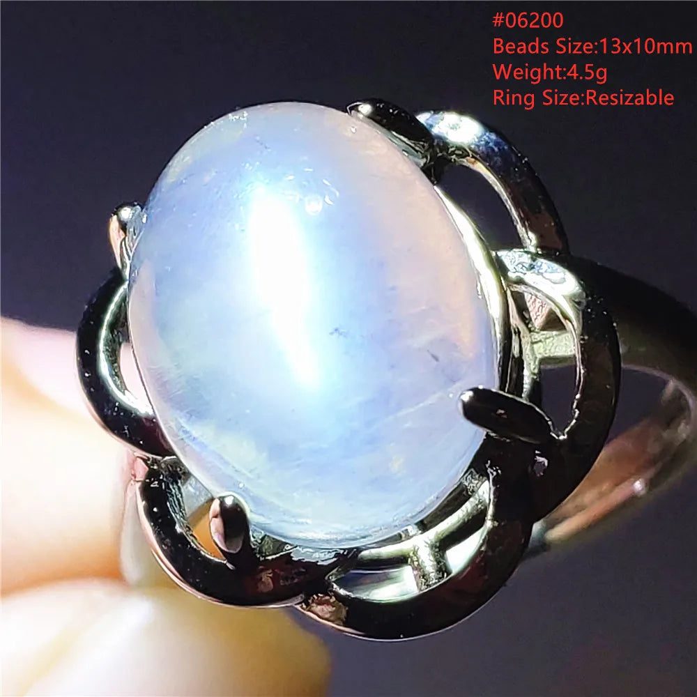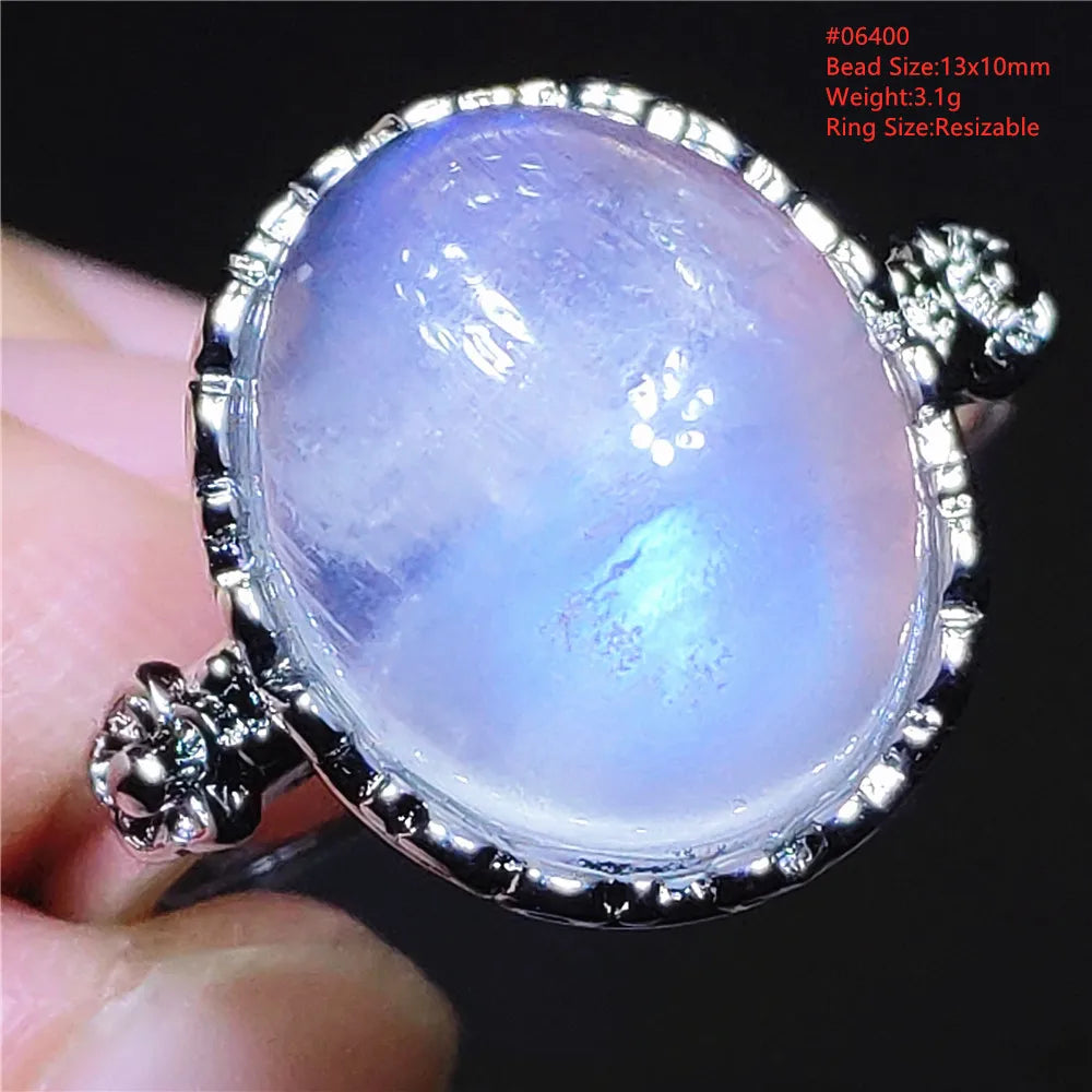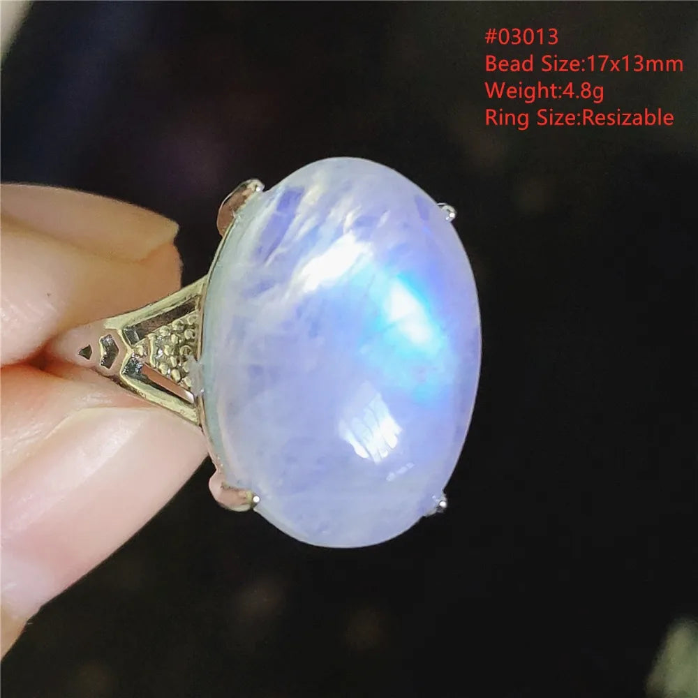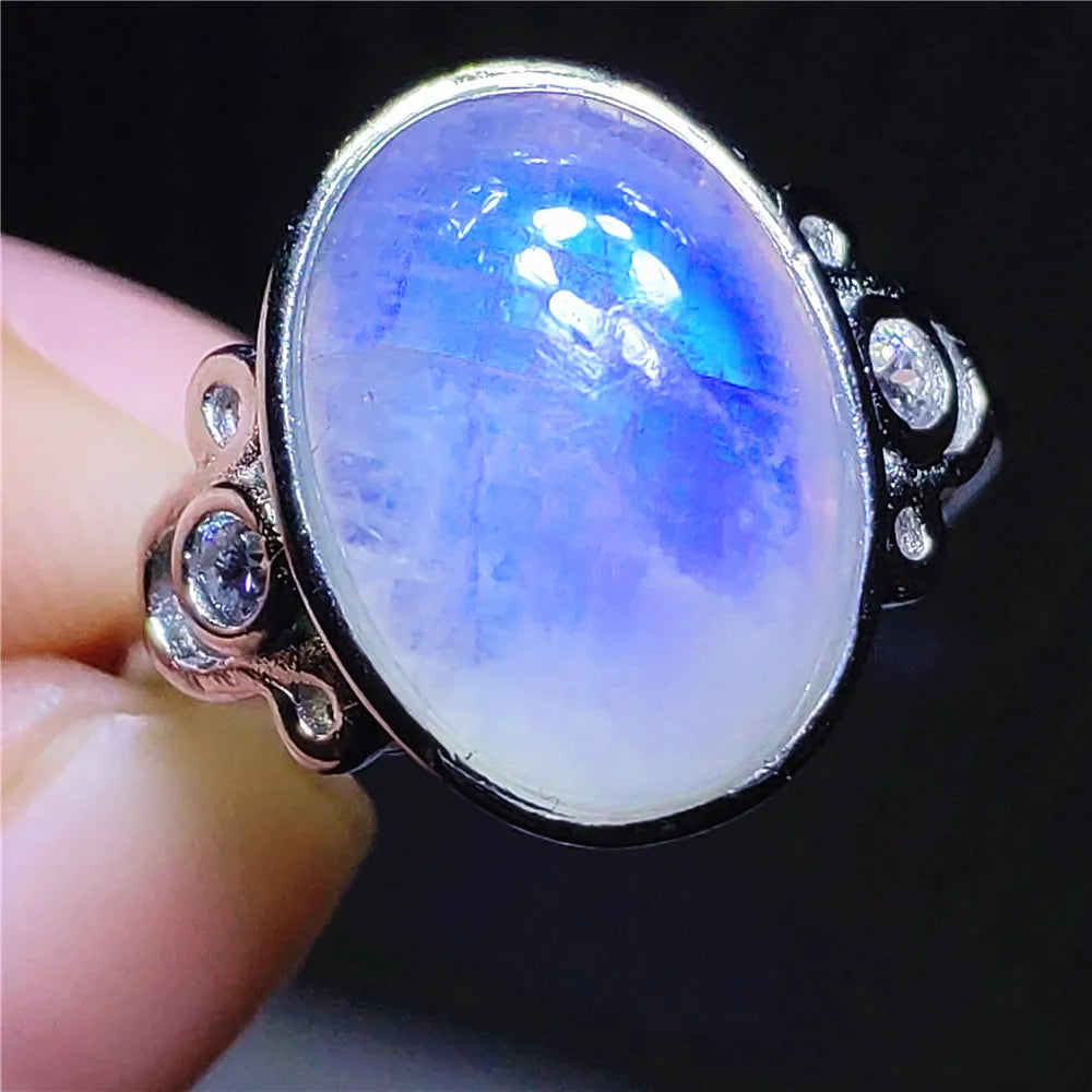 Natuurlijke blauwe maansteen ring ovaal verstelbaar alle maten vrouwen 925 zilver helderblauwe maansteen