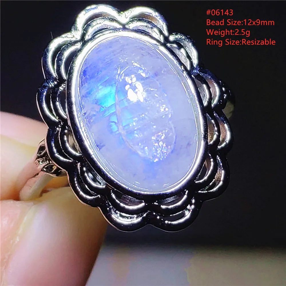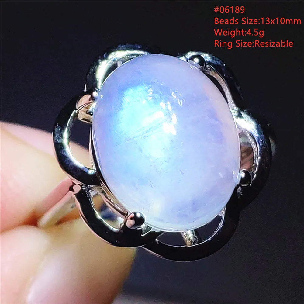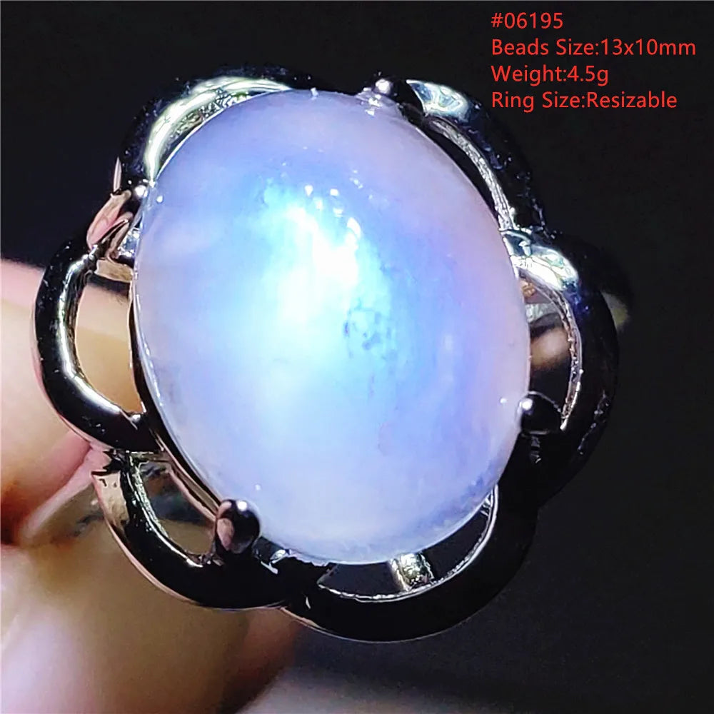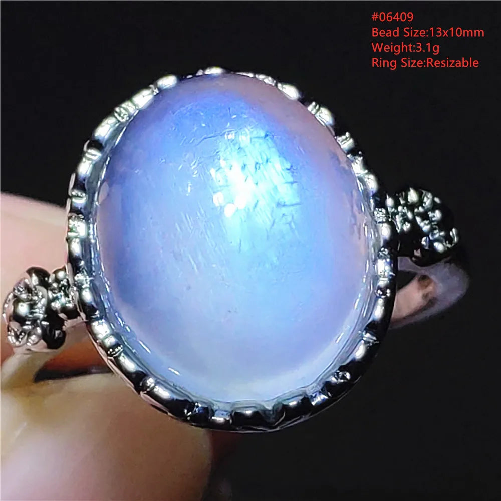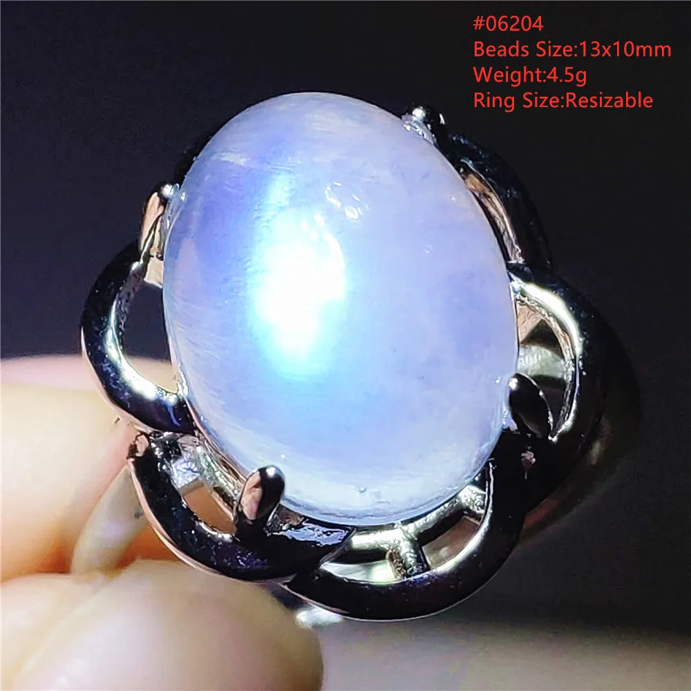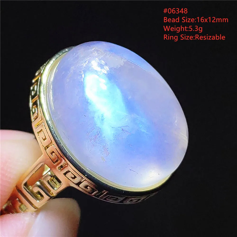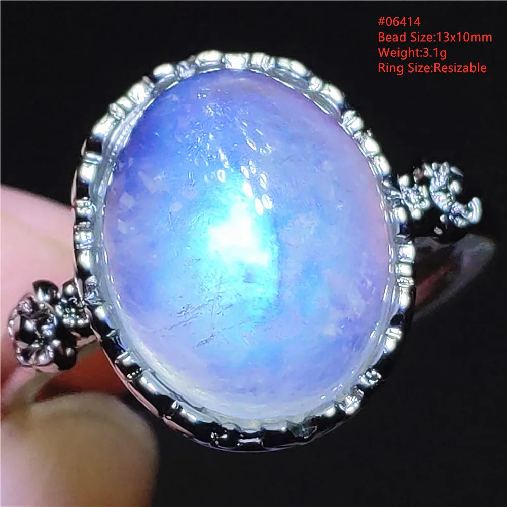 Natuurlijke blauwe maansteen ring ovaal verstelbaar alle maten vrouwen 925 zilver helderblauwe maansteen