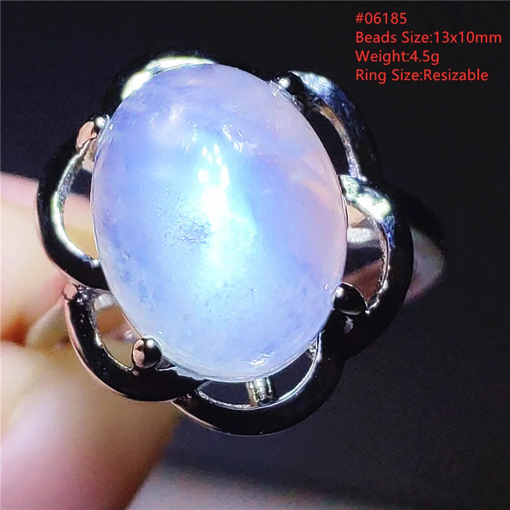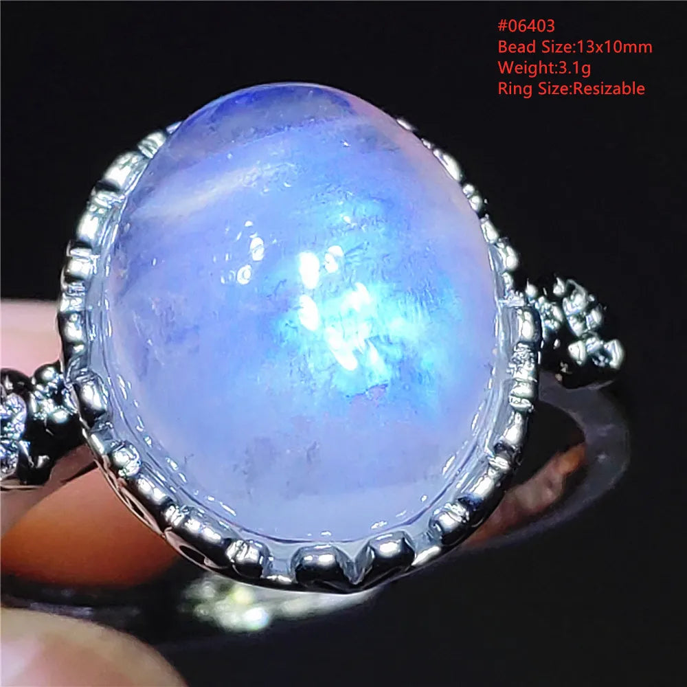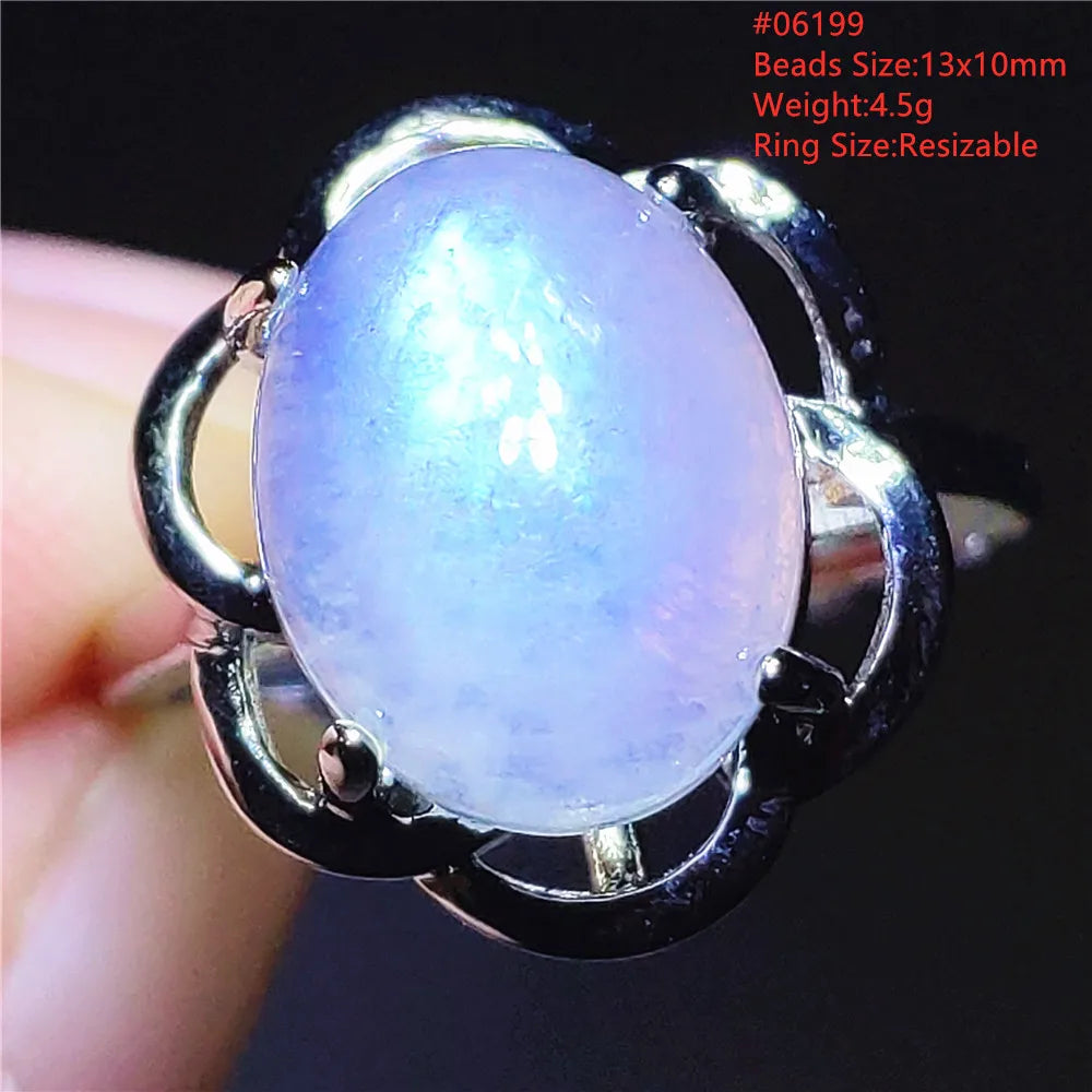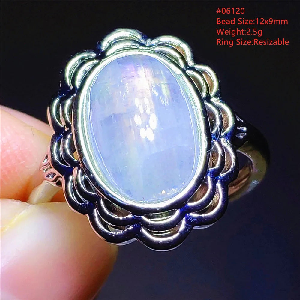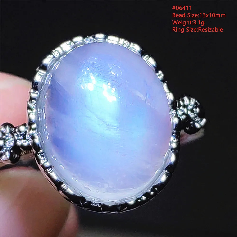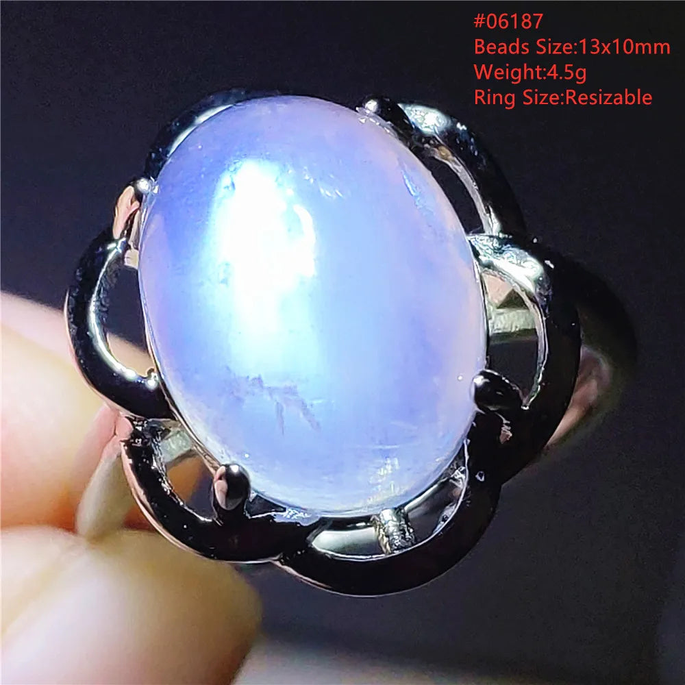 Natuurlijke blauwe maansteen ring ovaal verstelbaar alle maten vrouwen 925 zilver helderblauwe maansteen