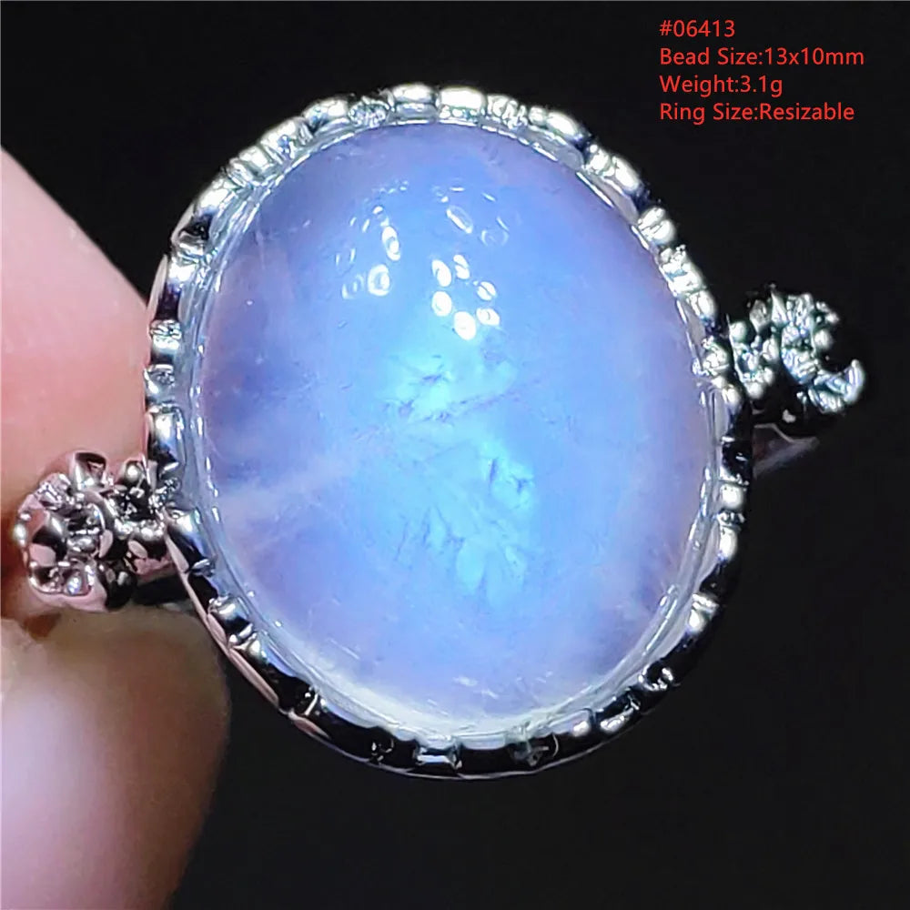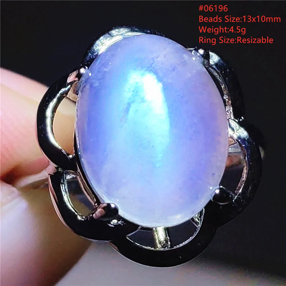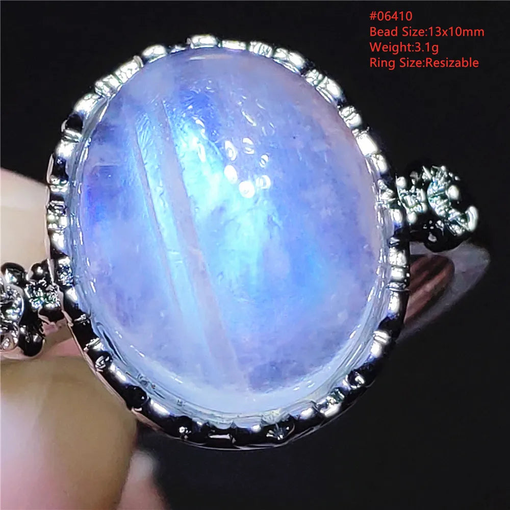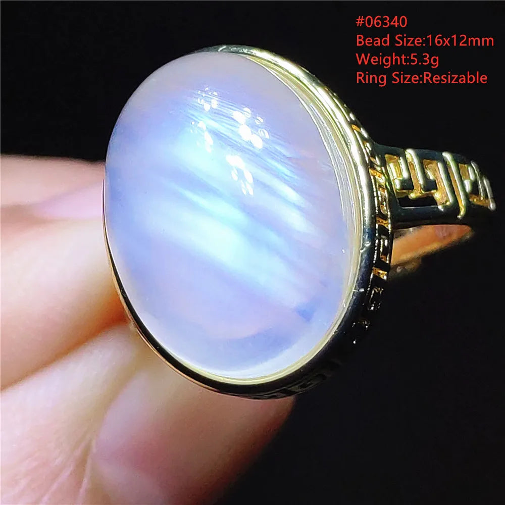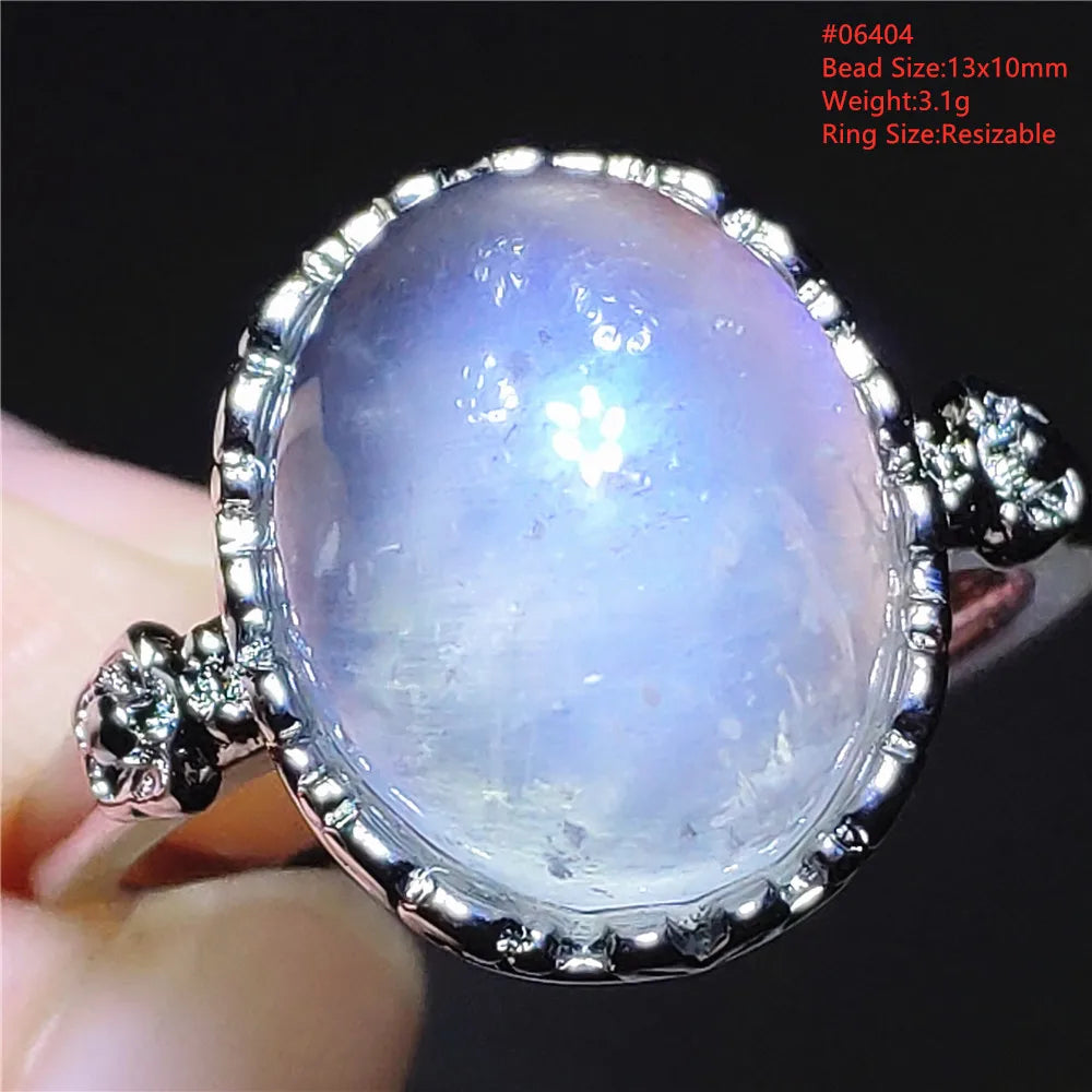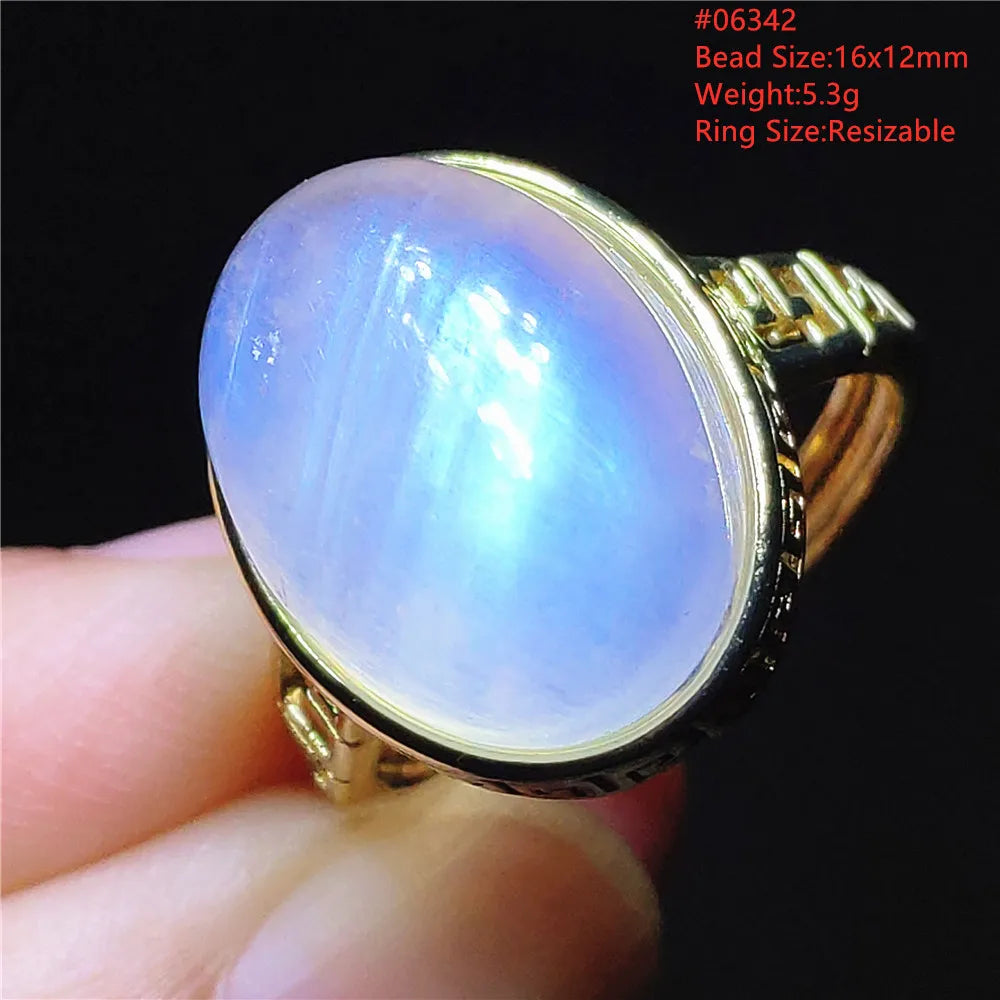 Natuurlijke blauwe maansteen ring ovaal verstelbaar alle maten vrouwen 925 zilver helderblauwe maansteen
