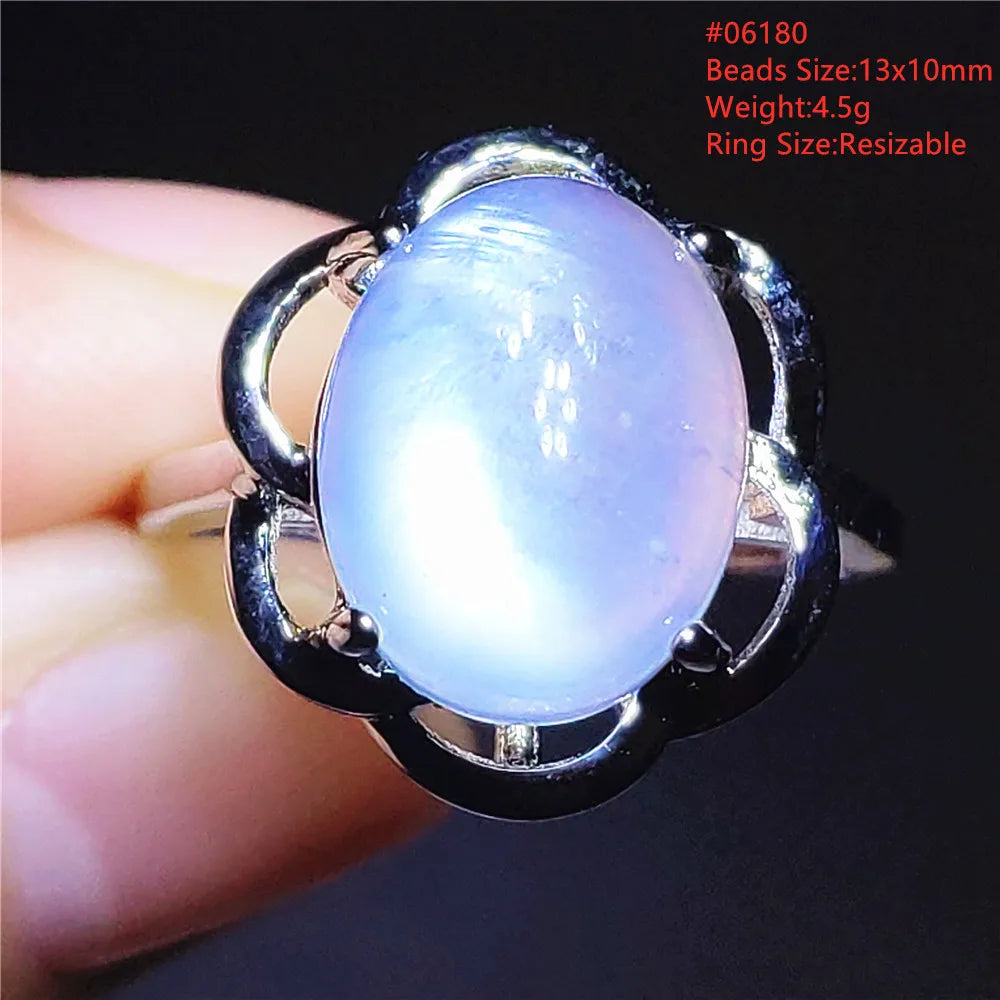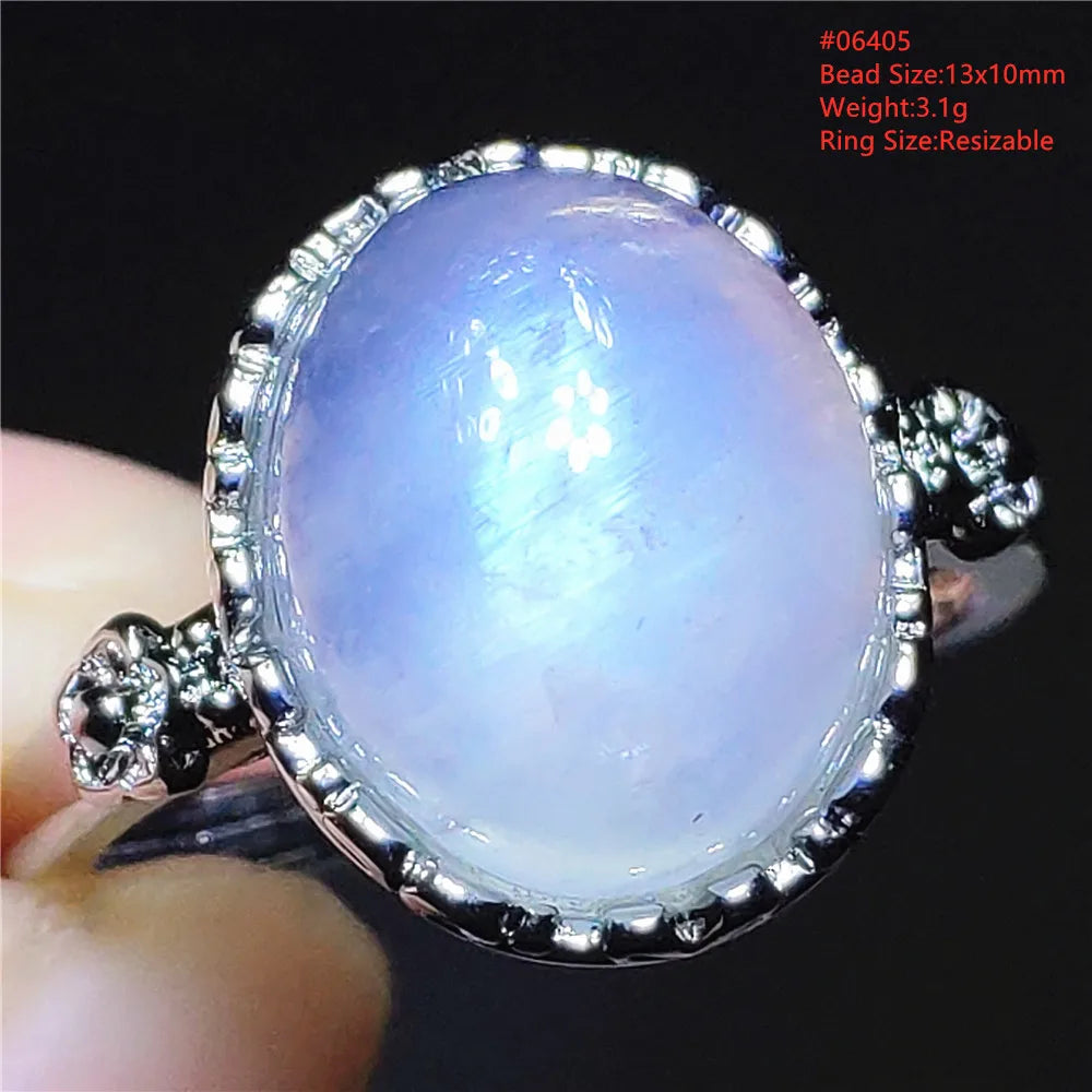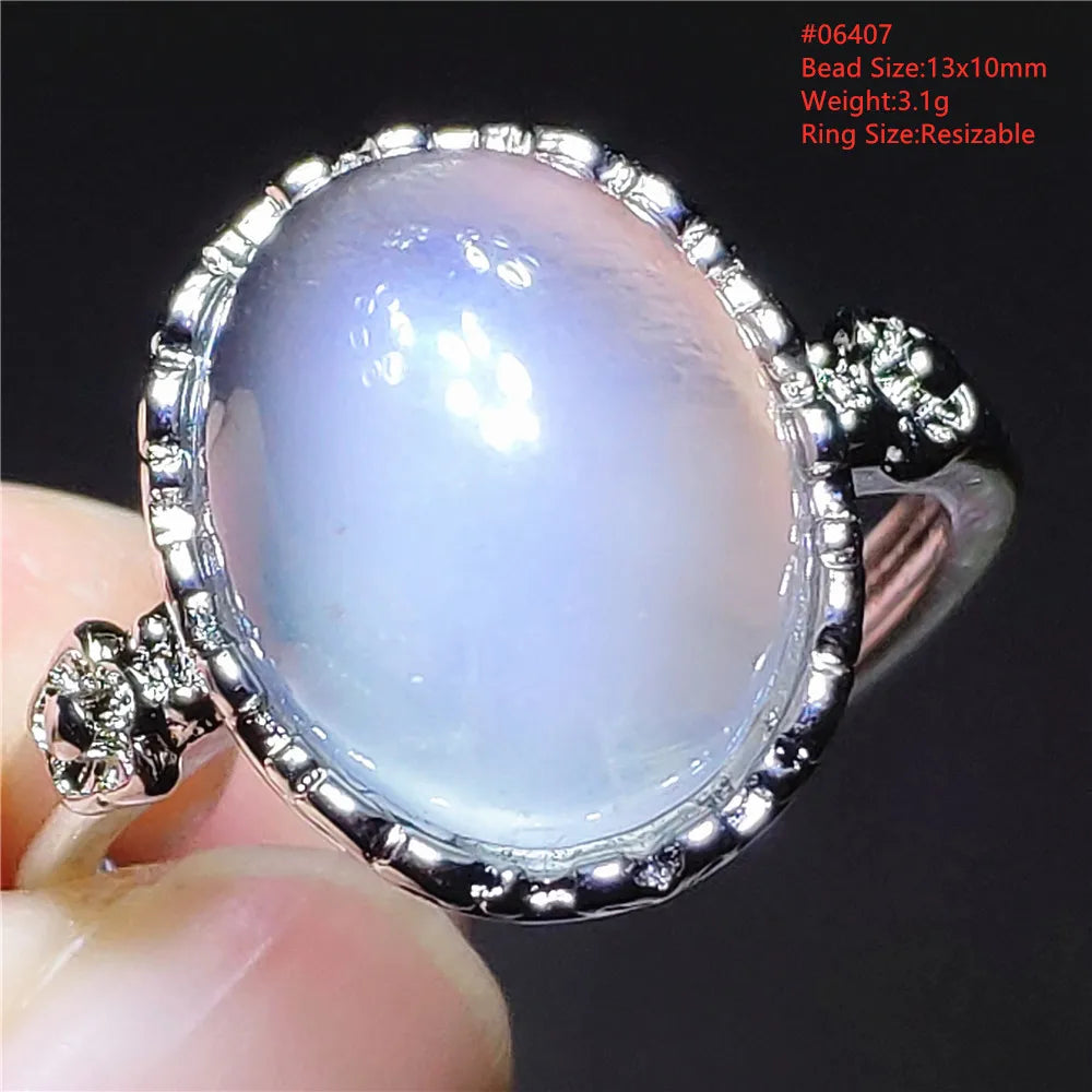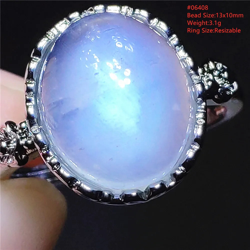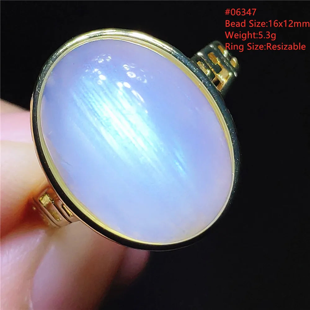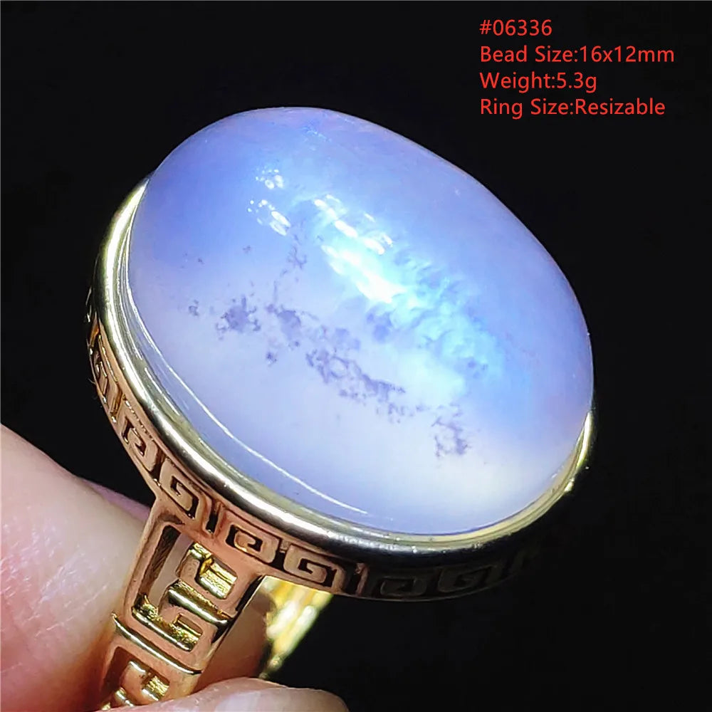 Natuurlijke blauwe maansteen ring ovaal verstelbaar alle maten vrouwen 925 zilver helderblauwe maansteen