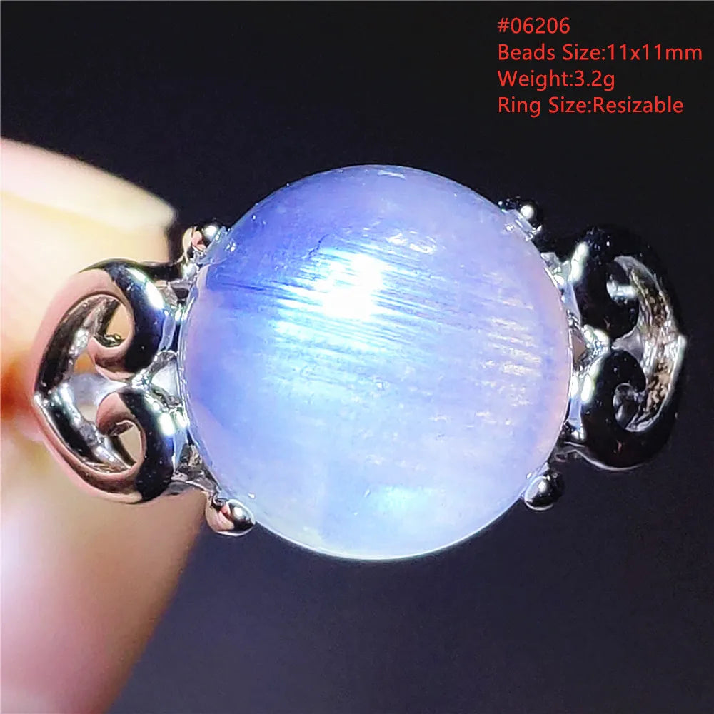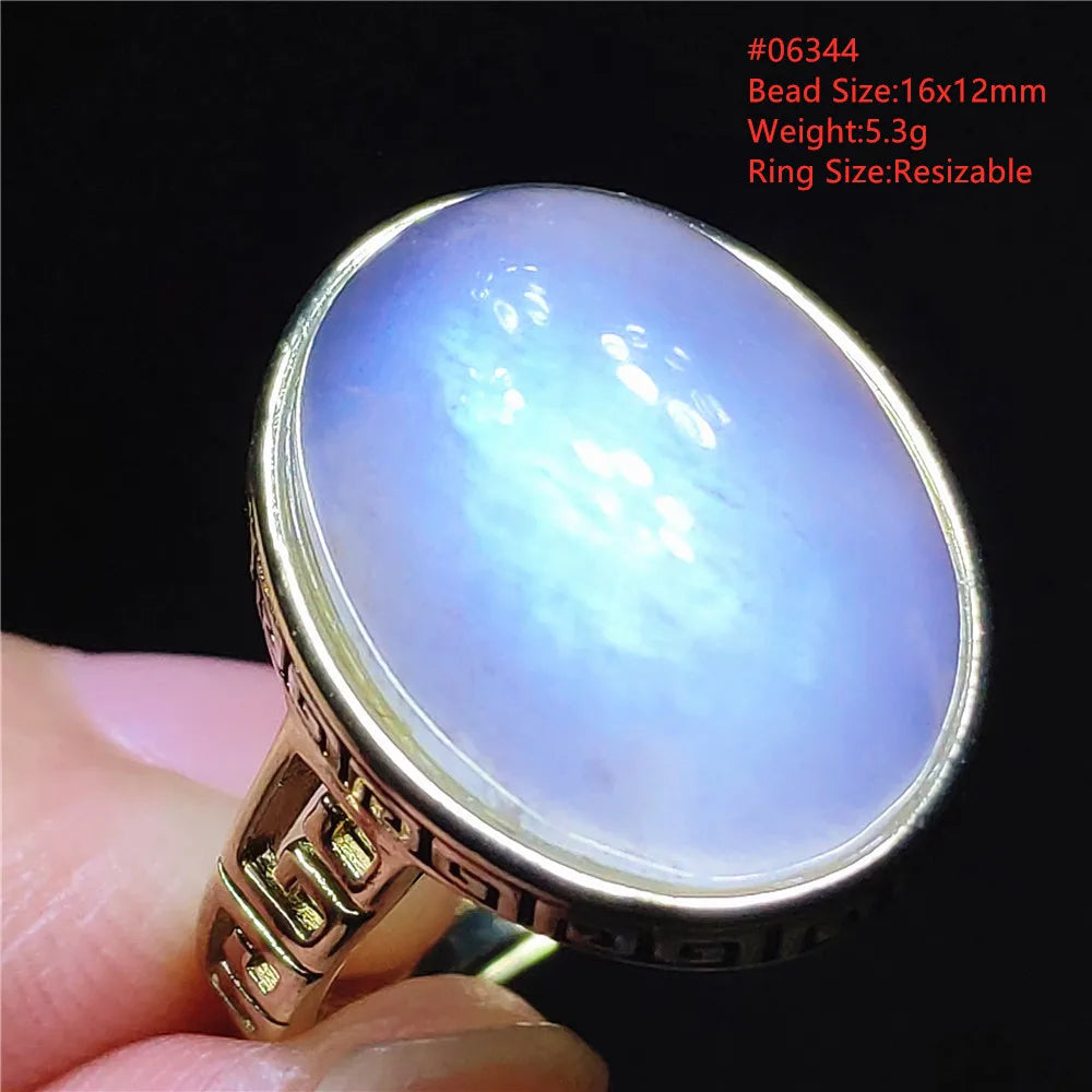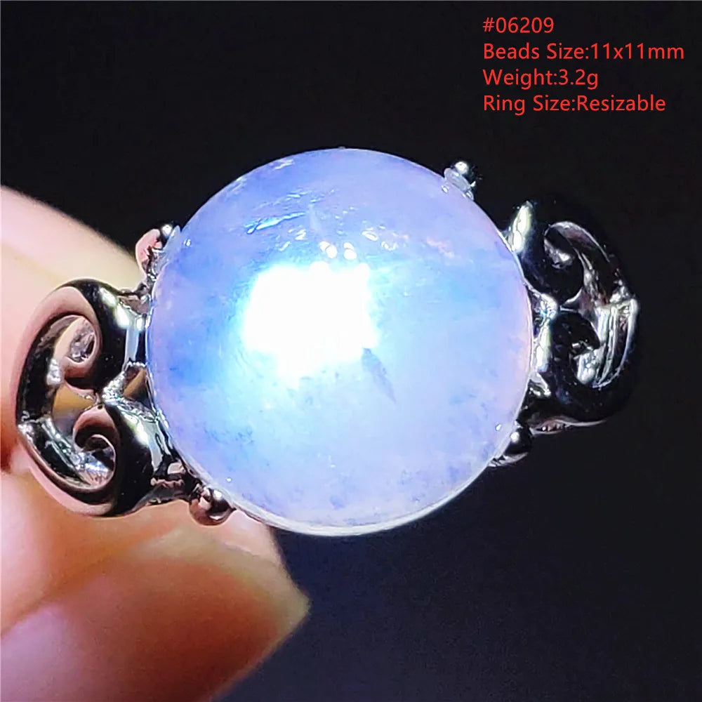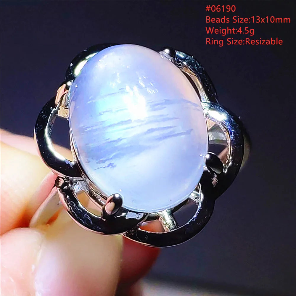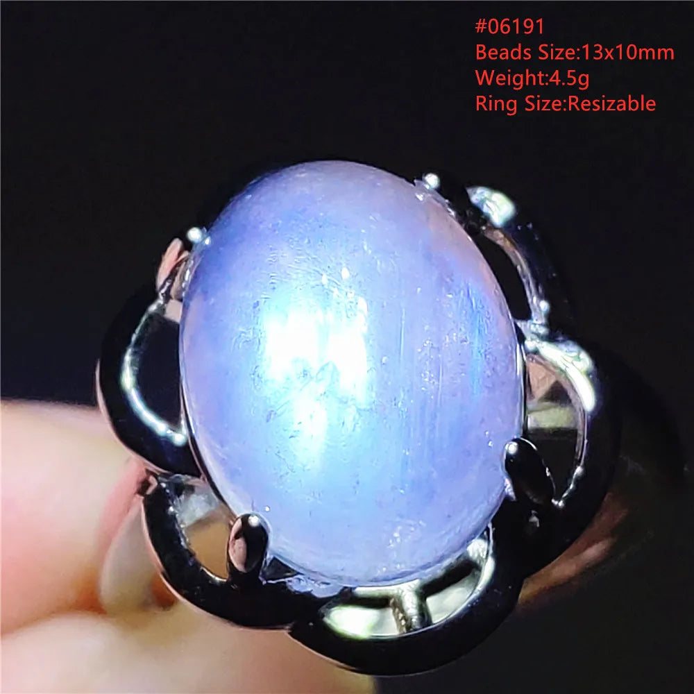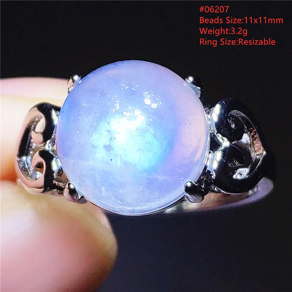 Natuurlijke blauwe maansteen ring ovaal verstelbaar alle maten vrouwen 925 zilver helderblauwe maansteen