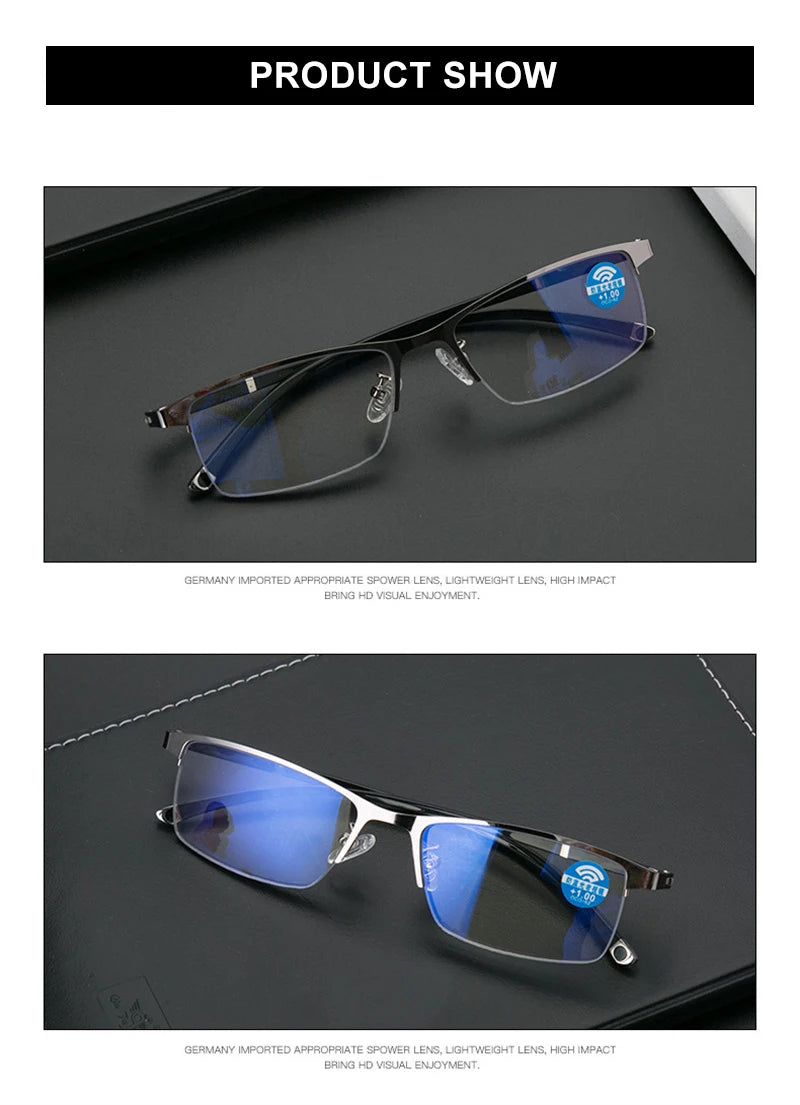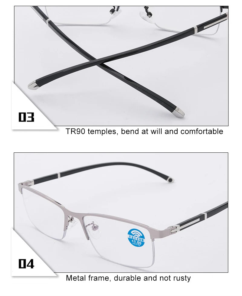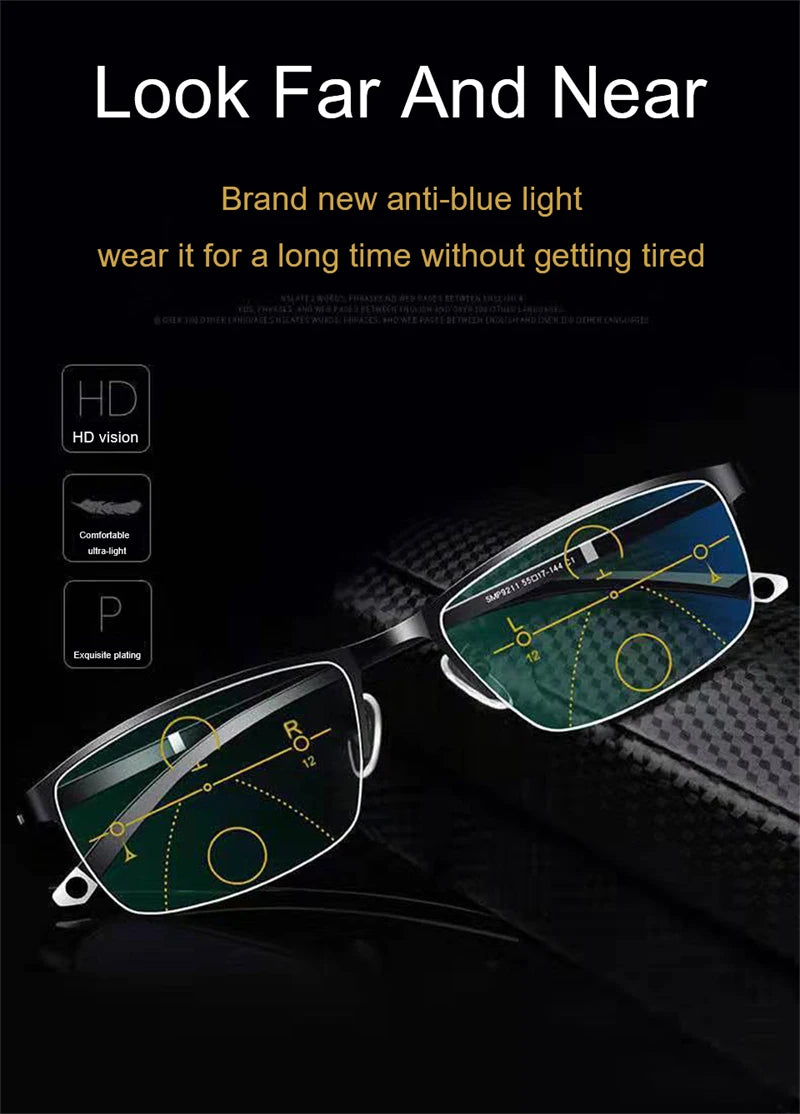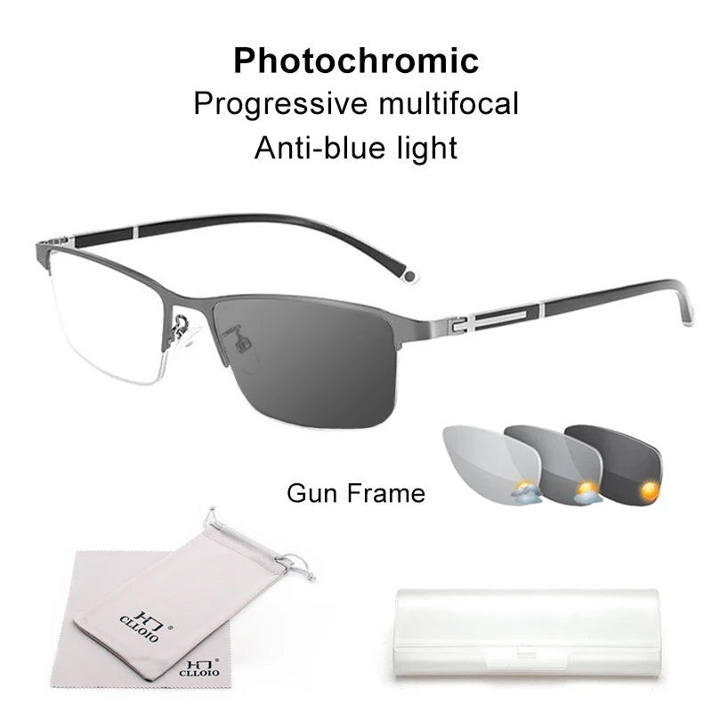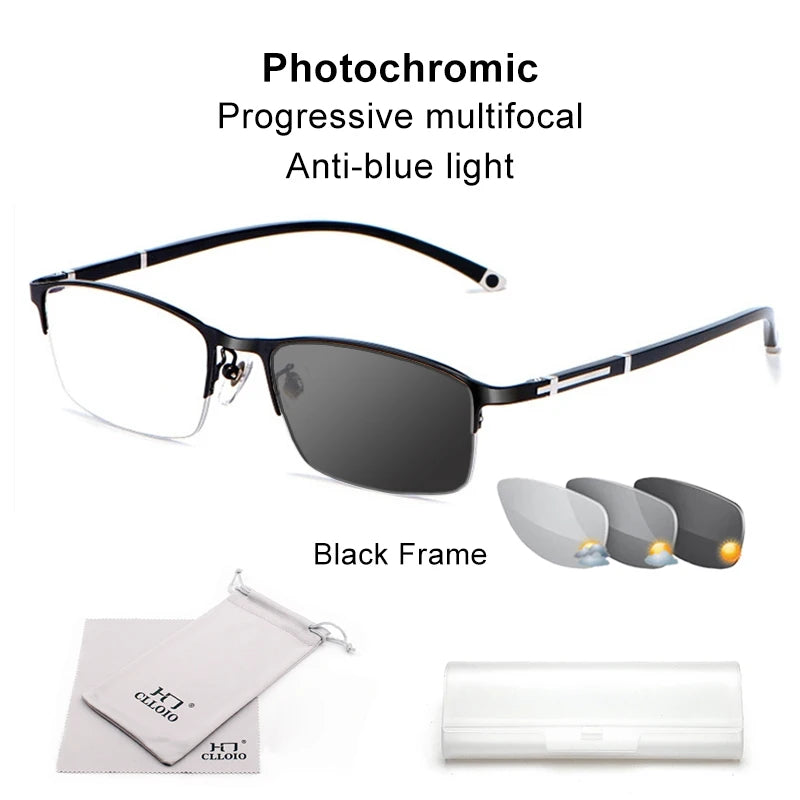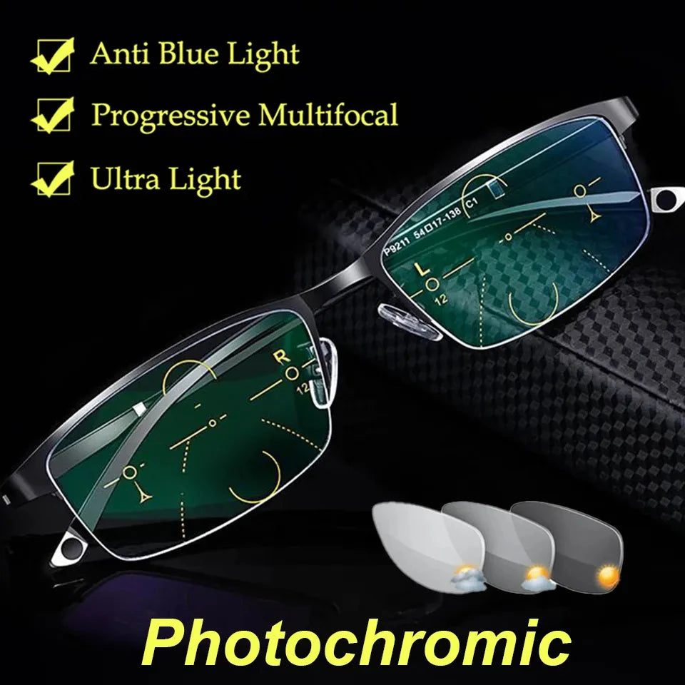 Fotochromatische leesbril heren progressief multifocaal anti-blauw licht