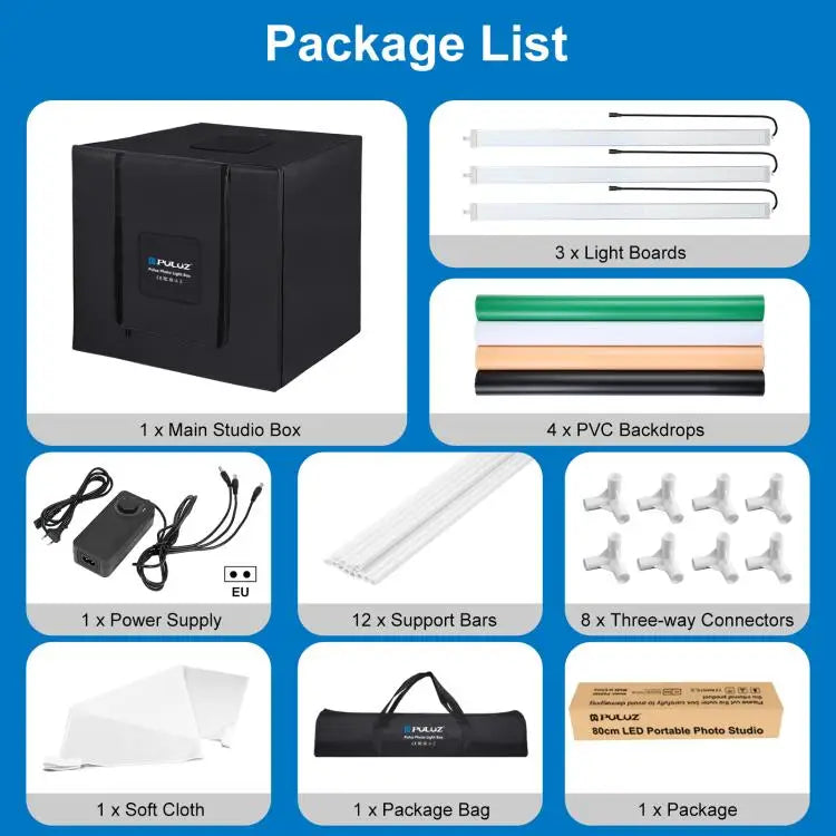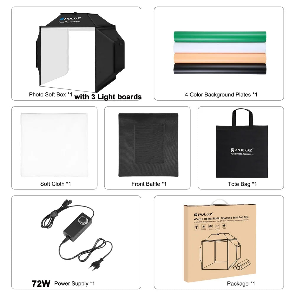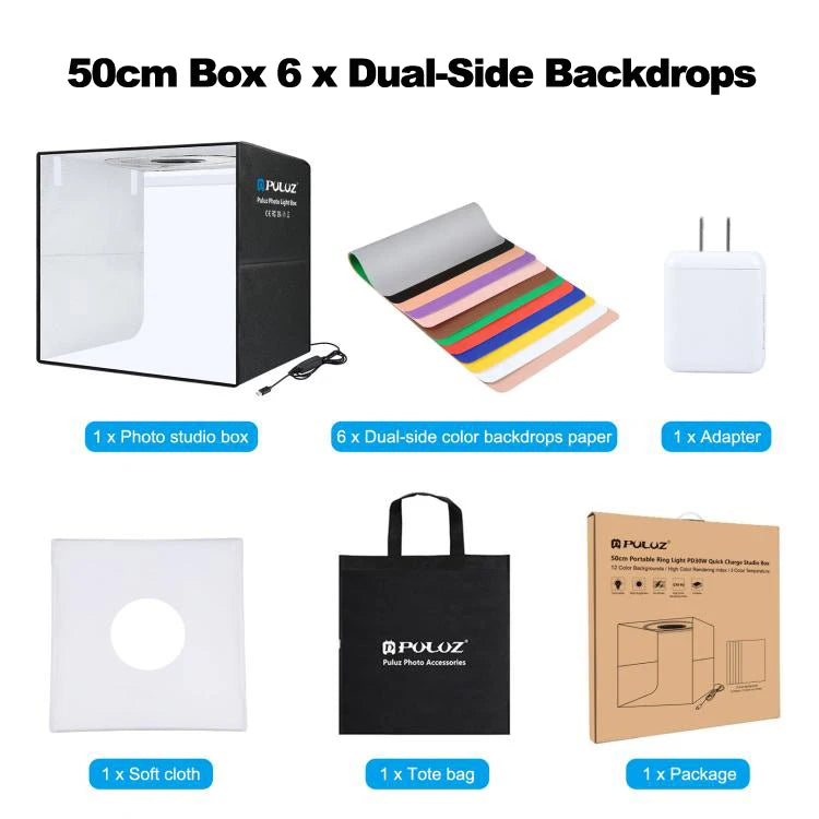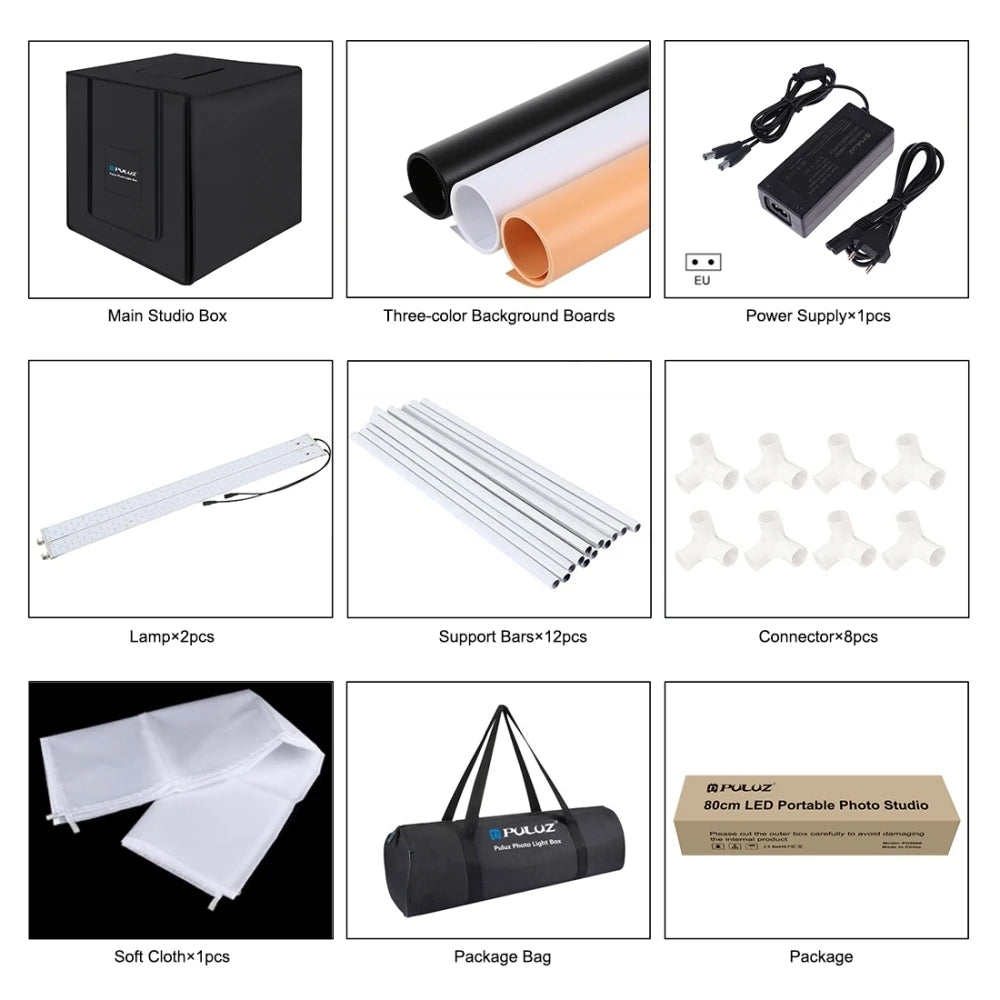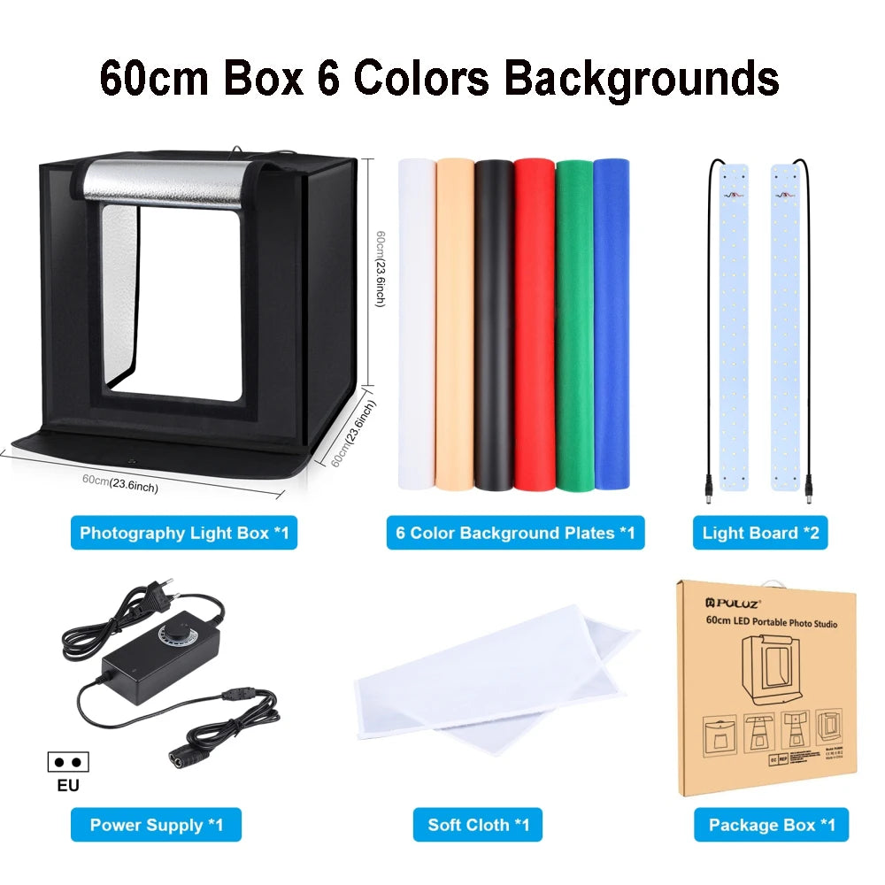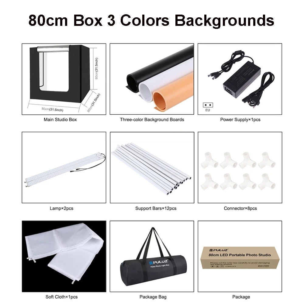 Puluz Lightbox 80 60 50 40 30cm Foto LED Licht Studio Kits 6 12 Kleuren Achte...