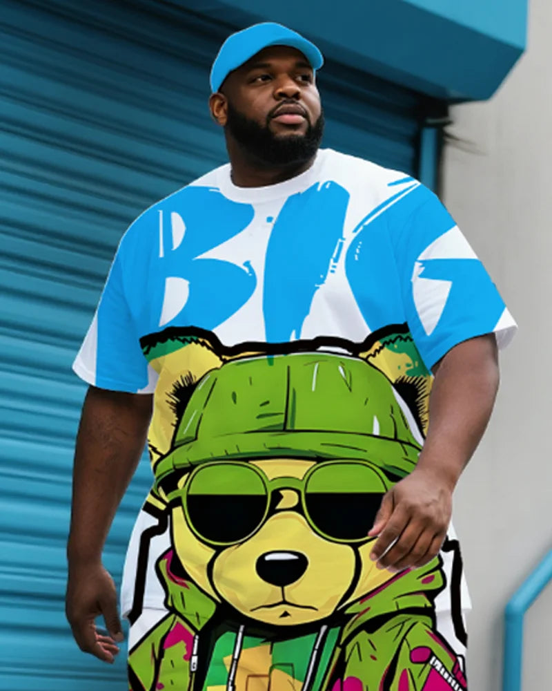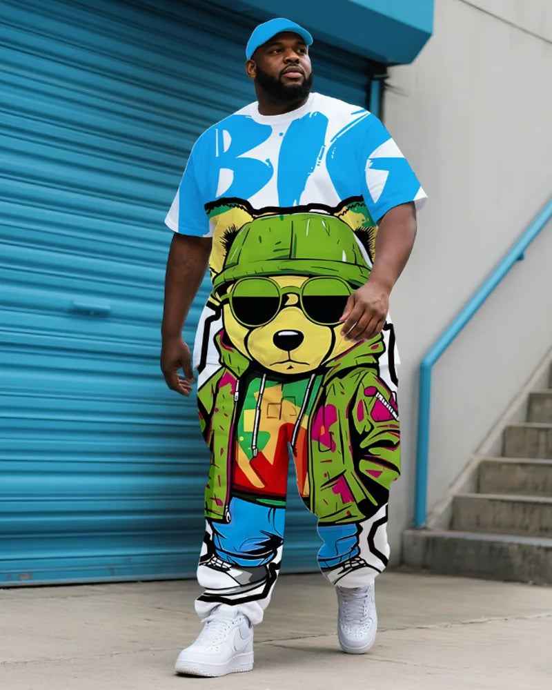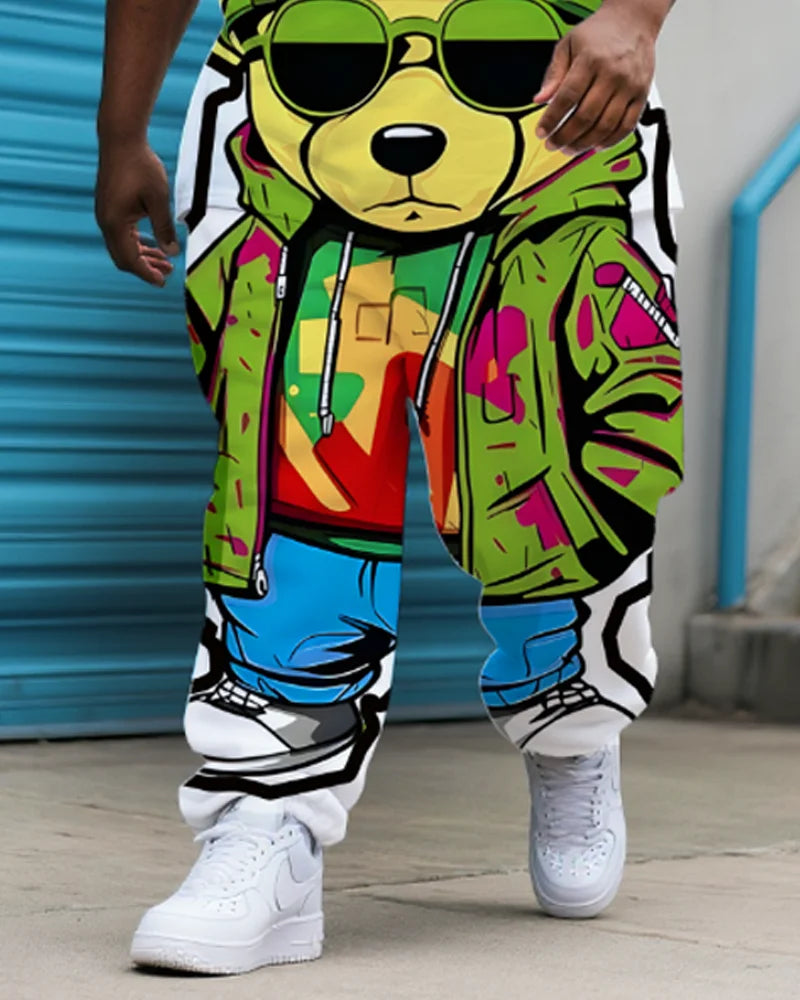 S-9XL Heren Plus Size Hip Hop Cartoon Print Korte Mouw T-shirt en Broek Tweed...