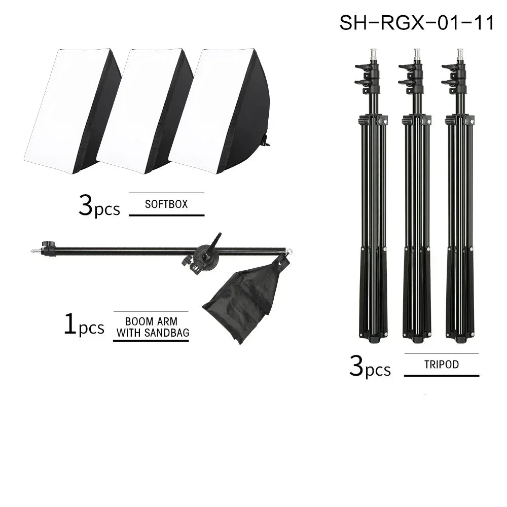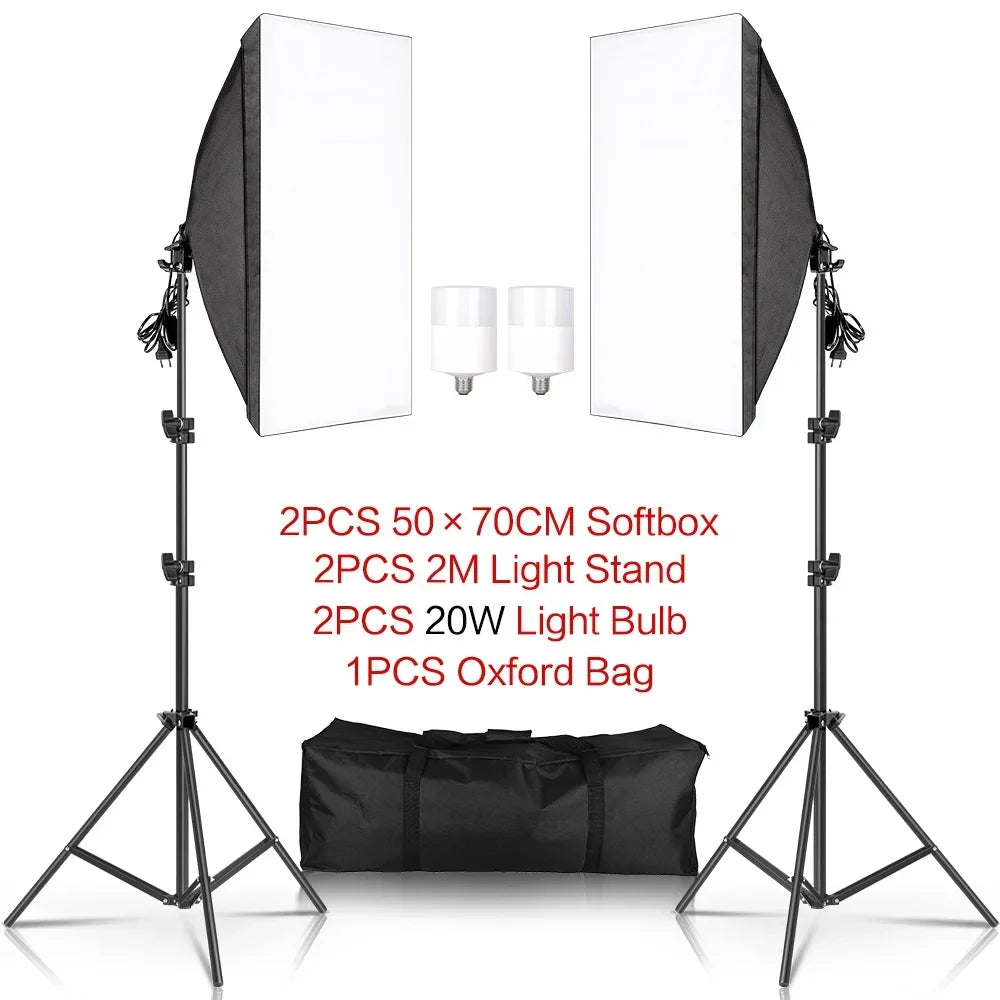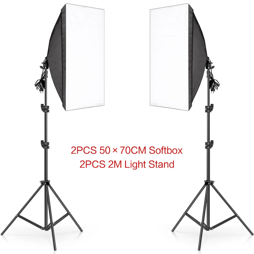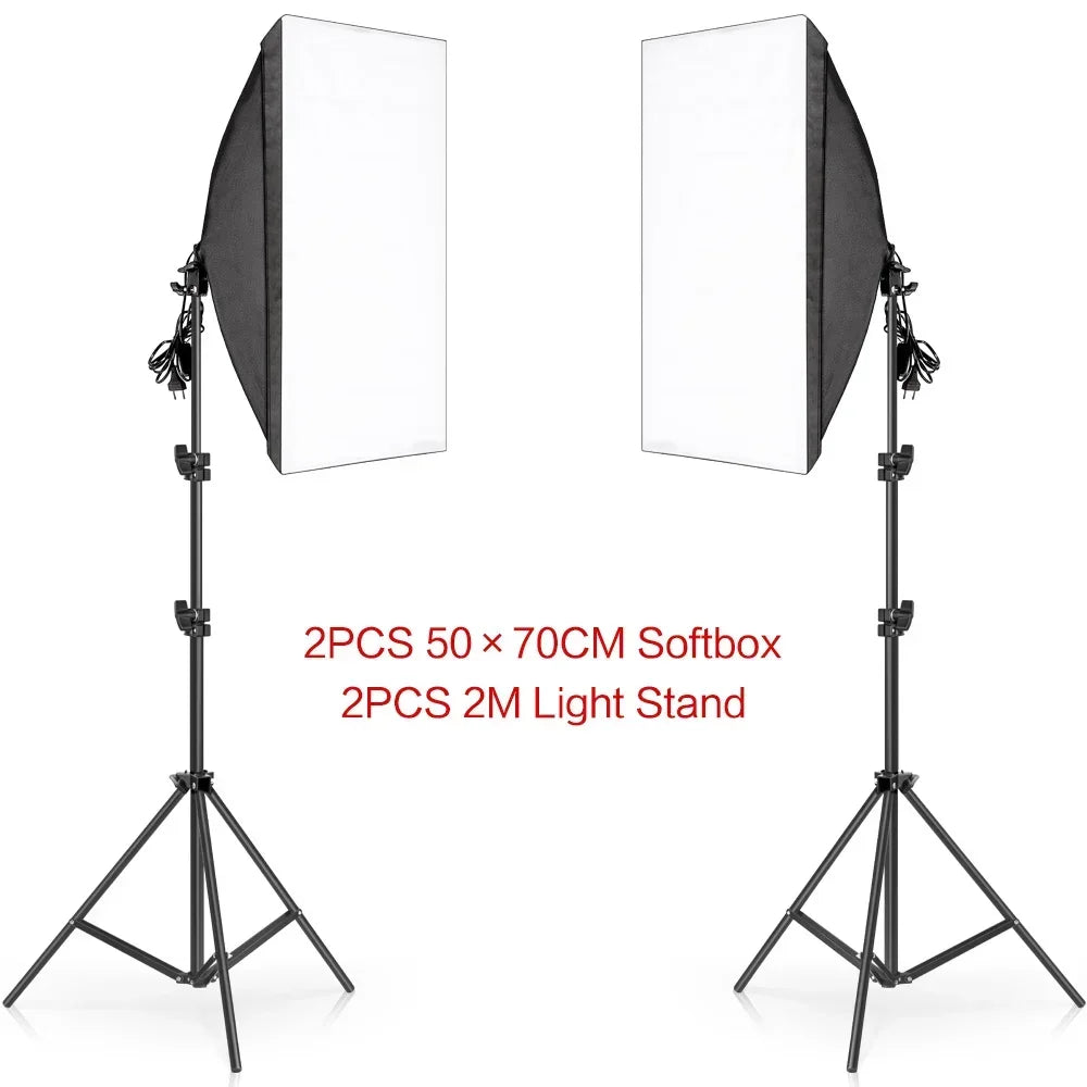 SH Lighting Kits Fotografie 50x70CM Softbox Professioneel Lichtsysteem met E2...