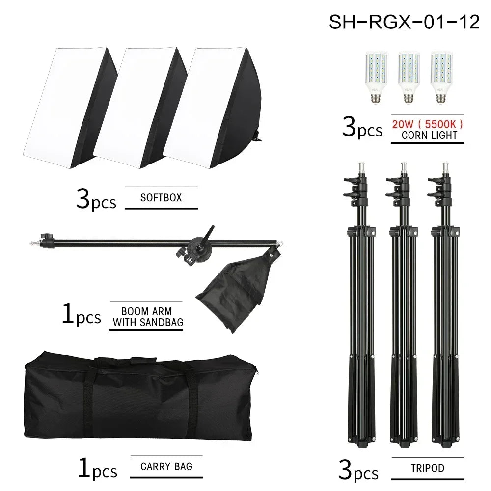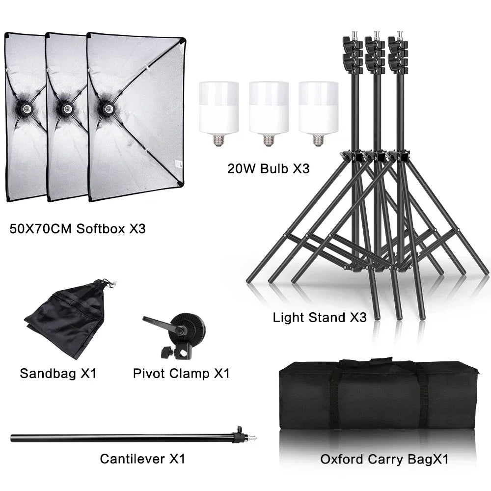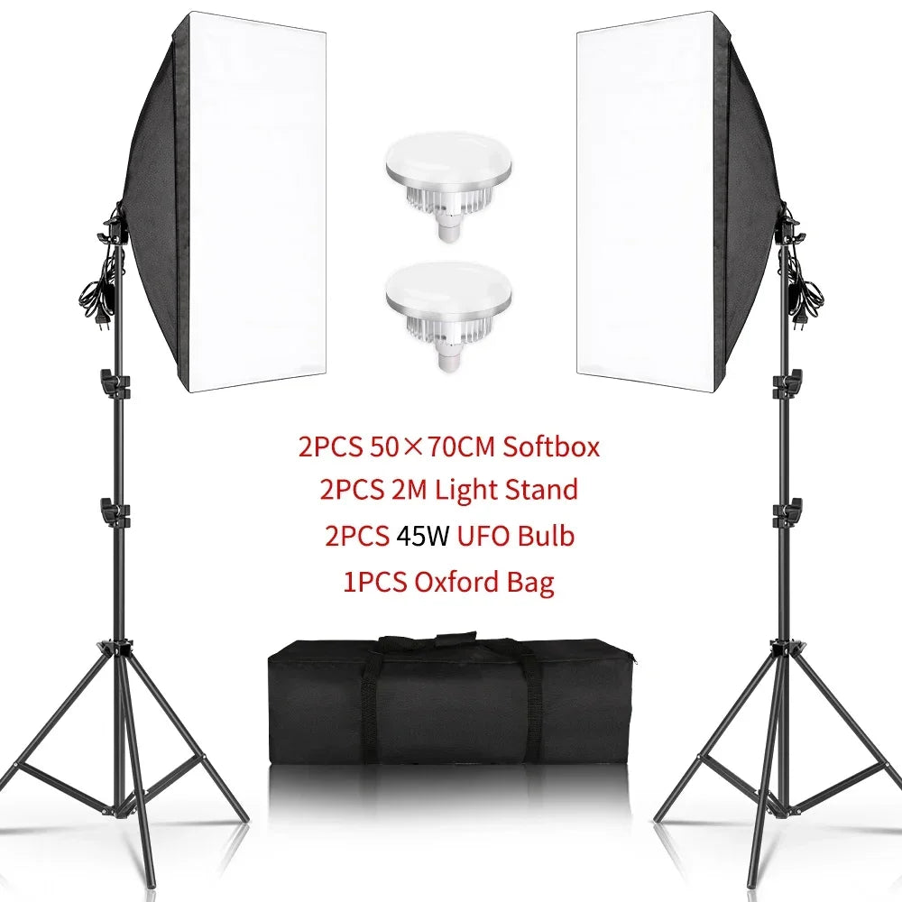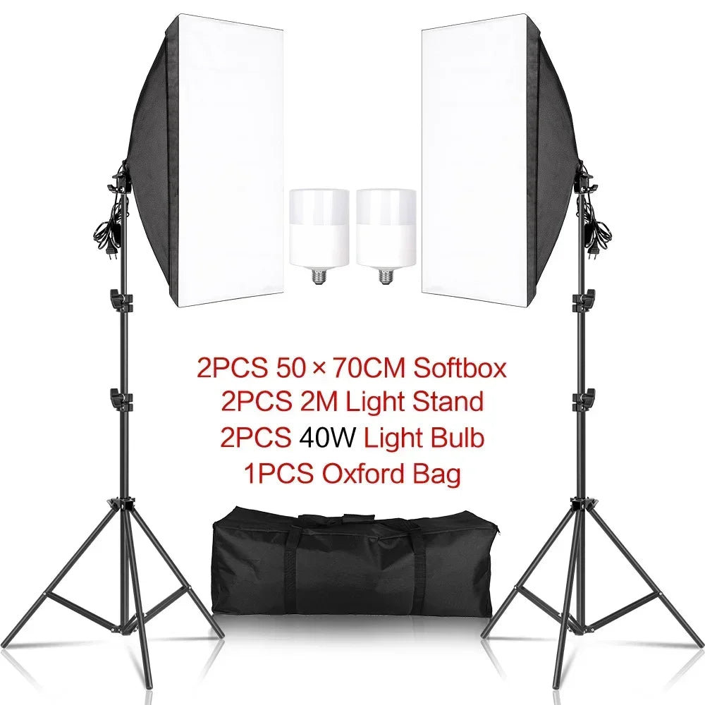 SH Lighting Kits Fotografie 50x70CM Softbox Professioneel Lichtsysteem met E2...