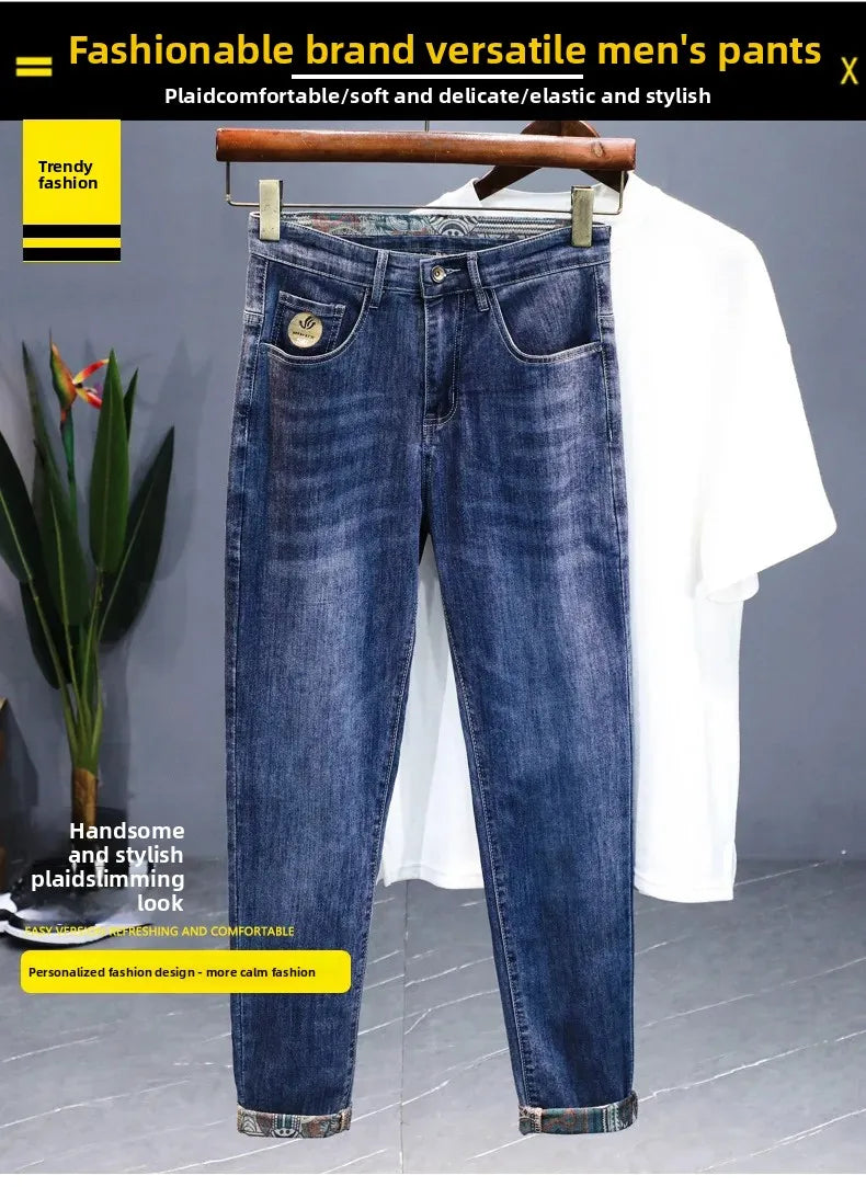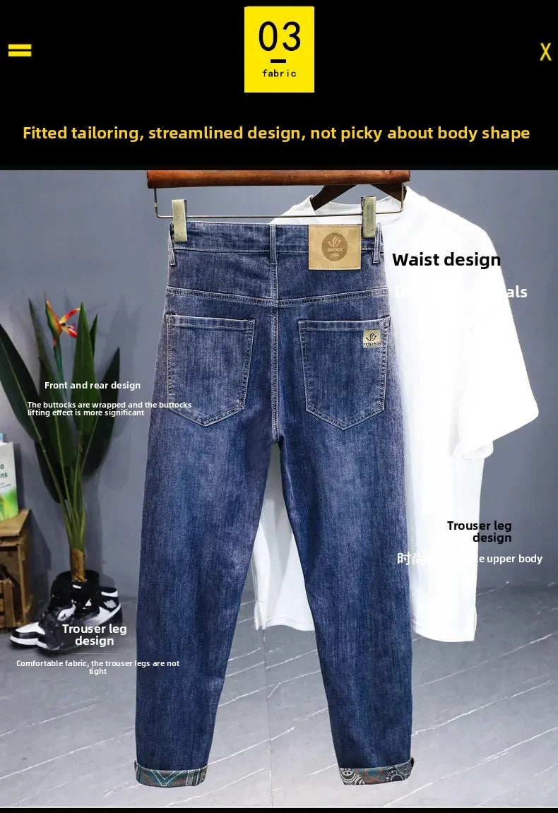 Zomer heren jeans Koreaanse mode Slim fit Comfortabel lichtgewicht Ritssluiti...