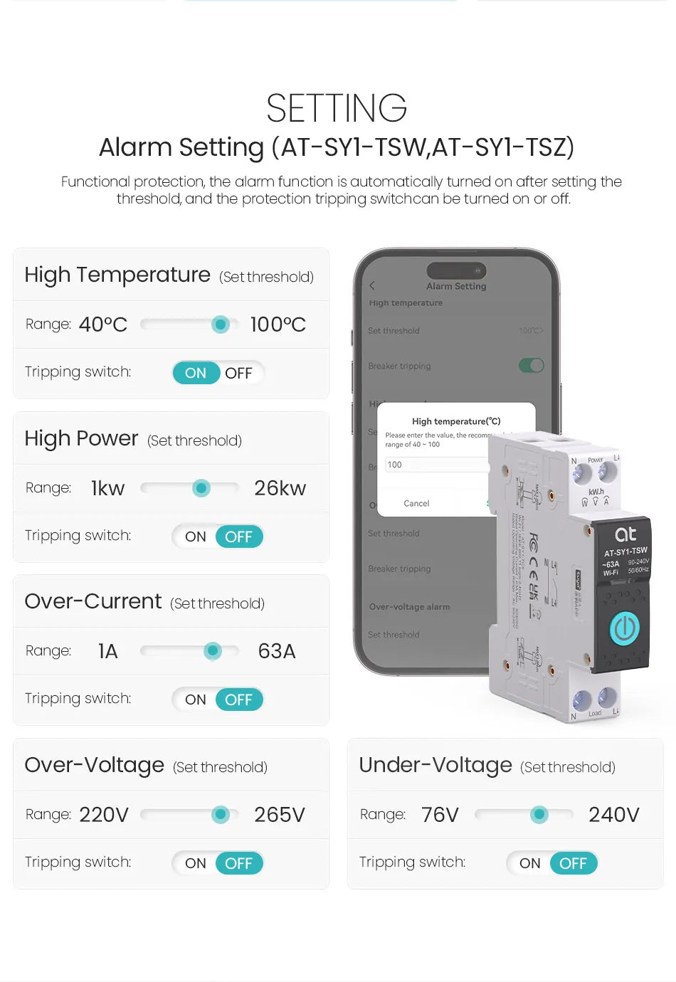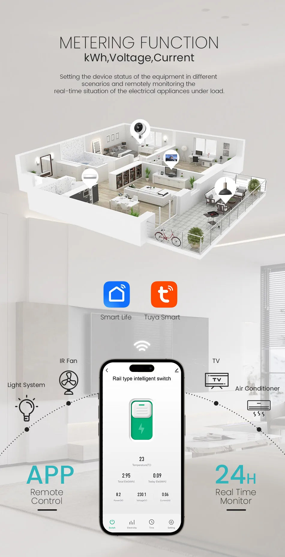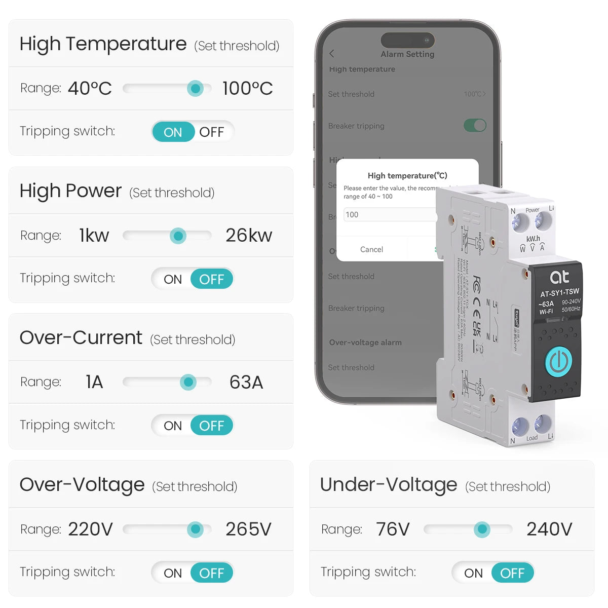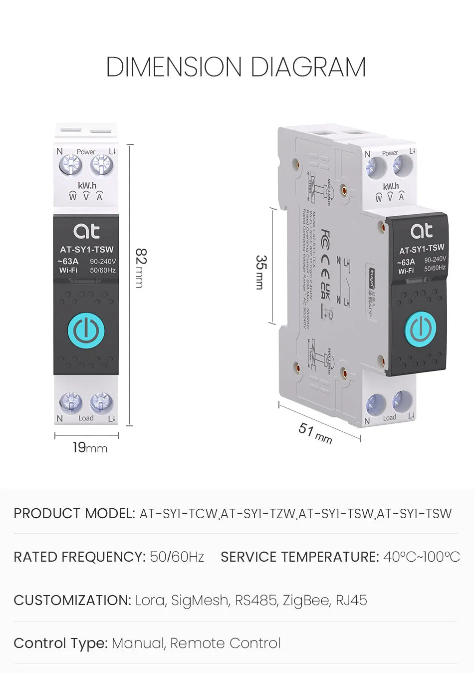 Tuya Wifi Smart Circuit Breaker Power Metering 1P 63A Smart Home draadloze af...