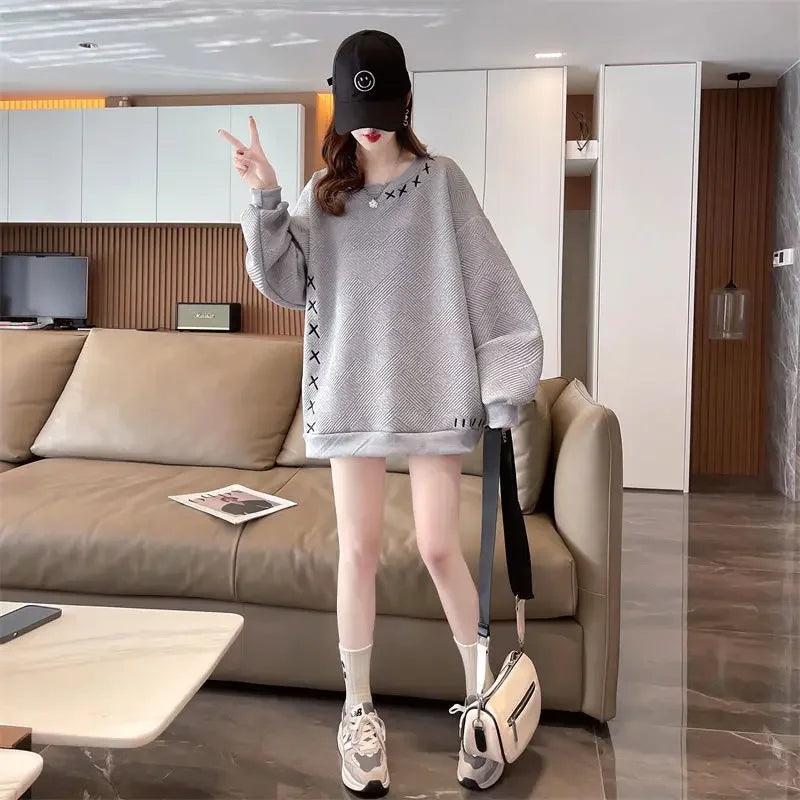 Waffle Loose Ins Stijl Chic Little Man Lazy Sweatshirt
