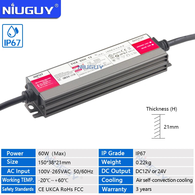 Waterdichte verlichtingstransformatoren AC 220V naar DC 12V 24V LED-drivervoe...