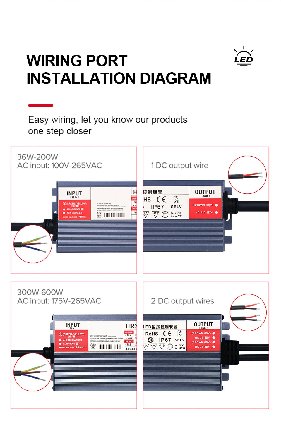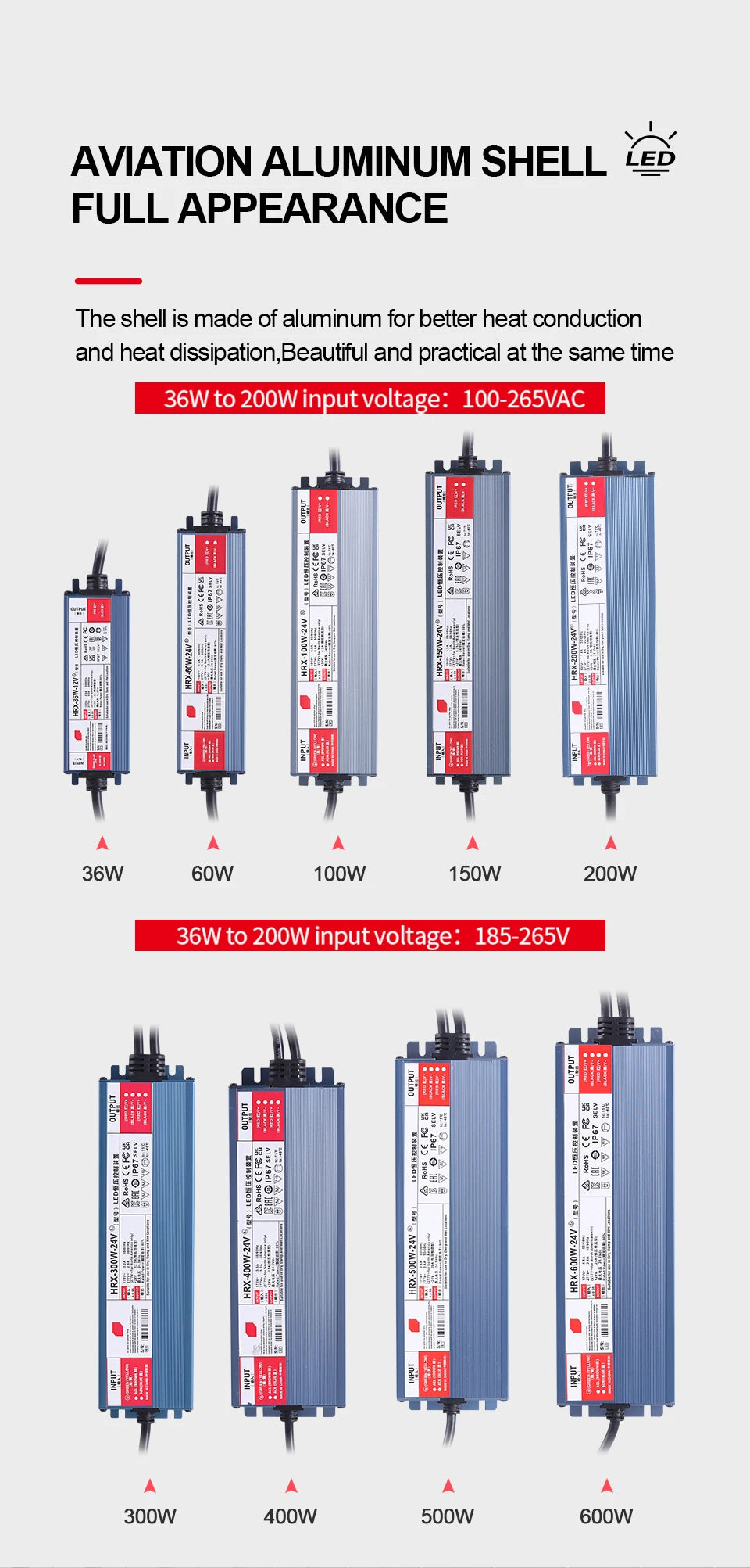 Ingangsspanning : AC 100-265V (36~200W), 175~265V (300~600W)