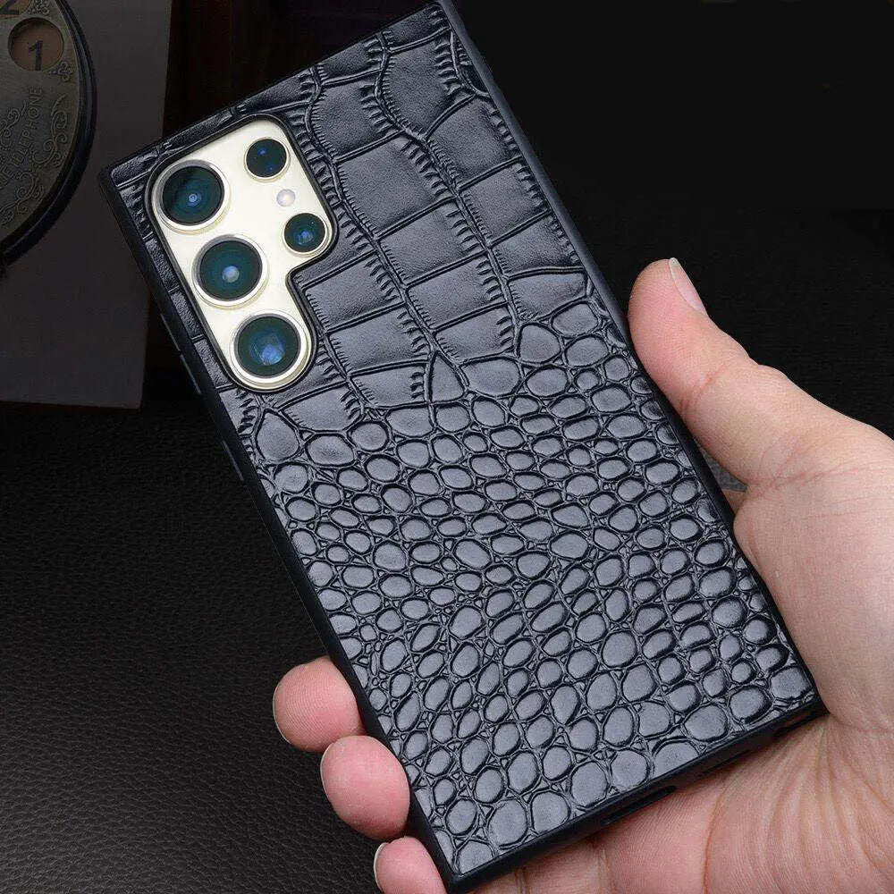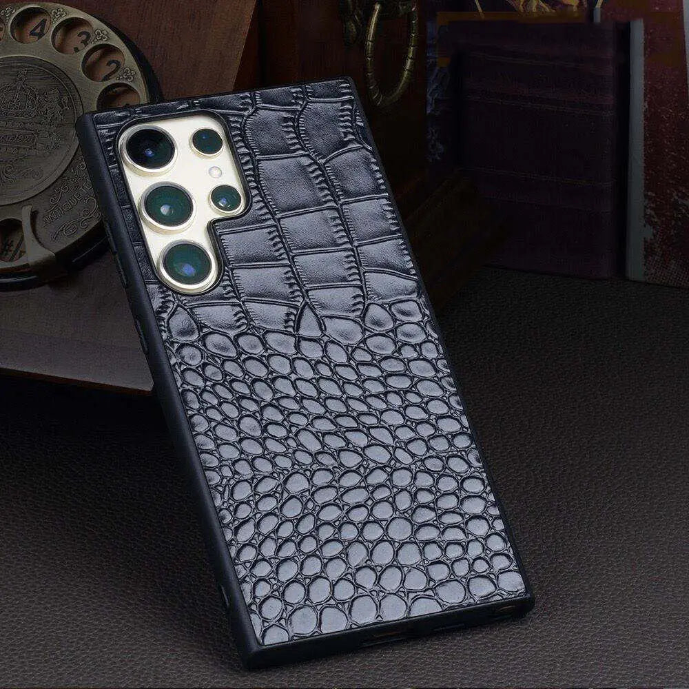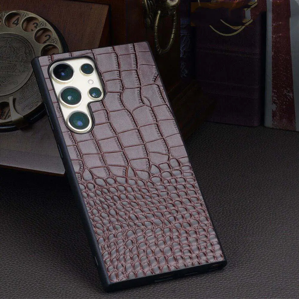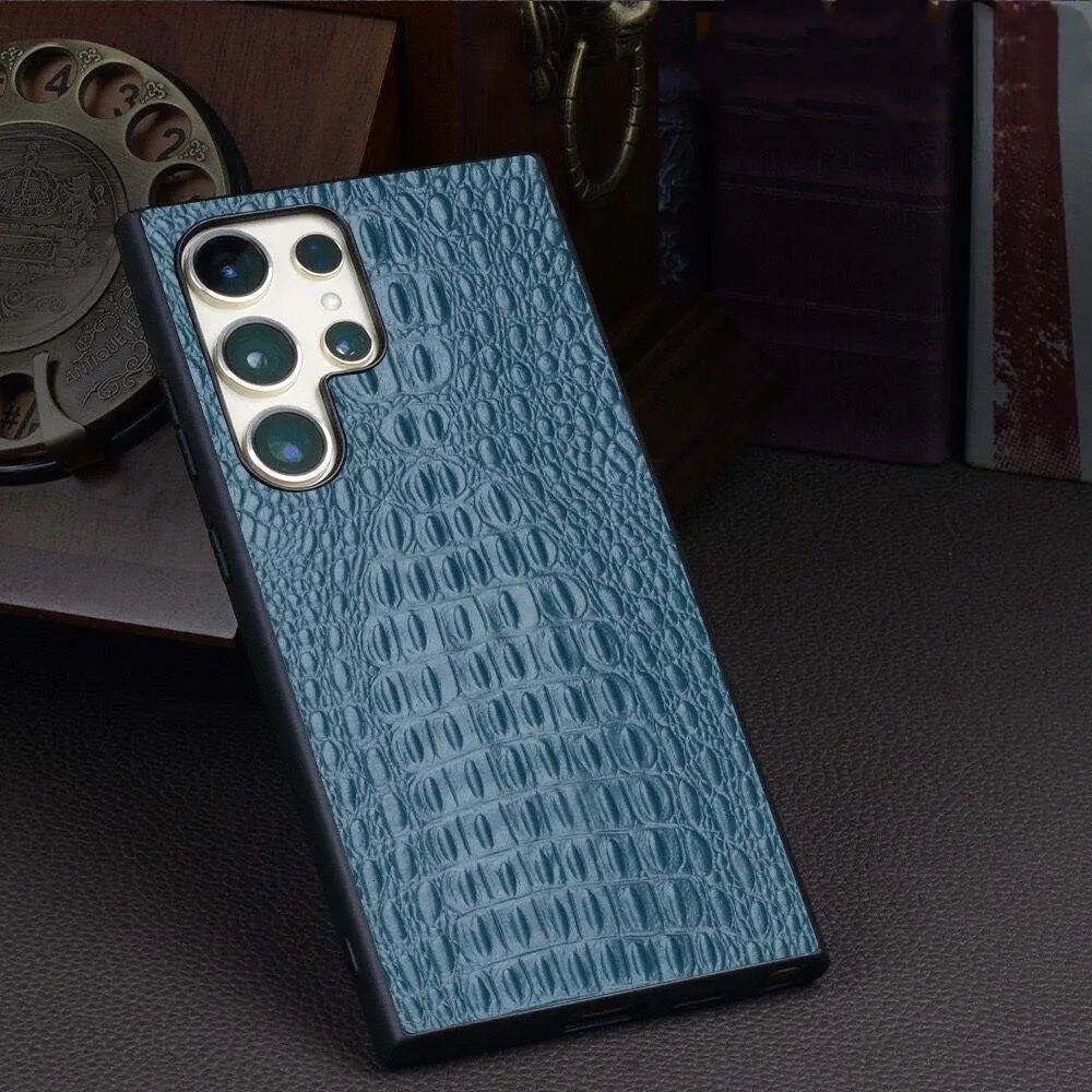 Echt koeienhuid leren krokodillenhoesje voor Samsung Galaxy S23 S24 S25 Ultra Business Achterkant