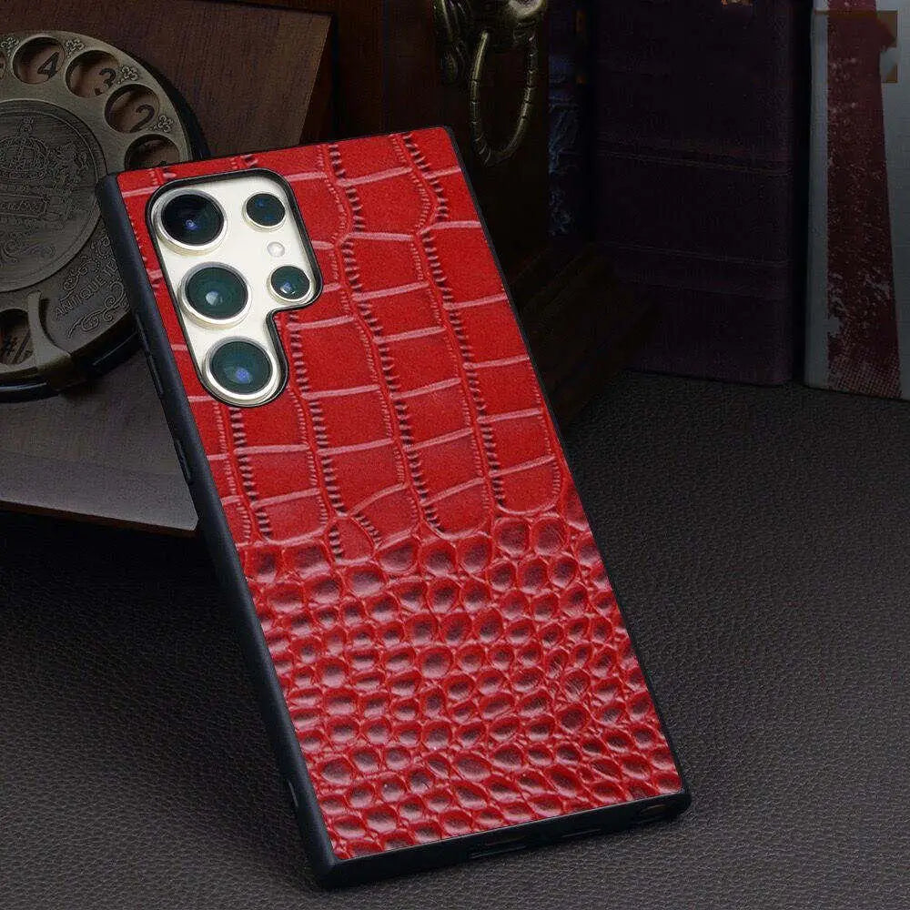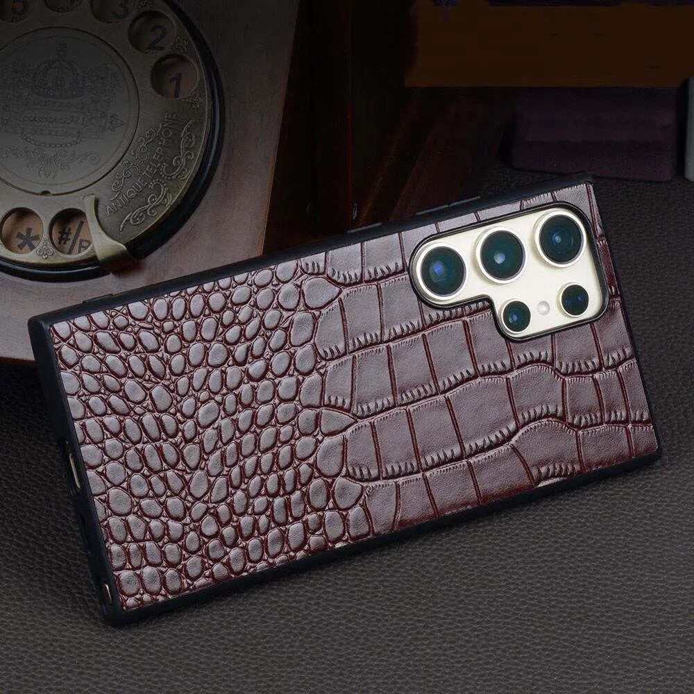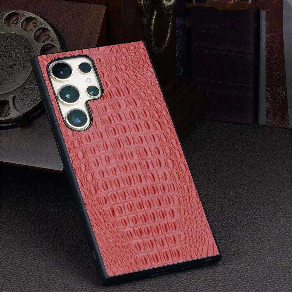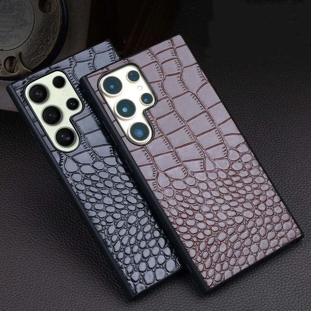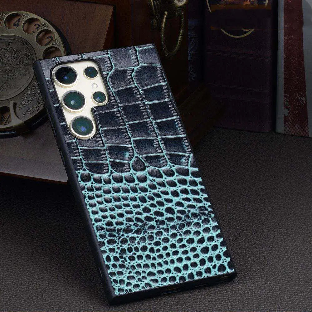 Echt koeienhuid leren krokodillenhoesje voor Samsung Galaxy S23 S24 S25 Ultra Business Achterkant