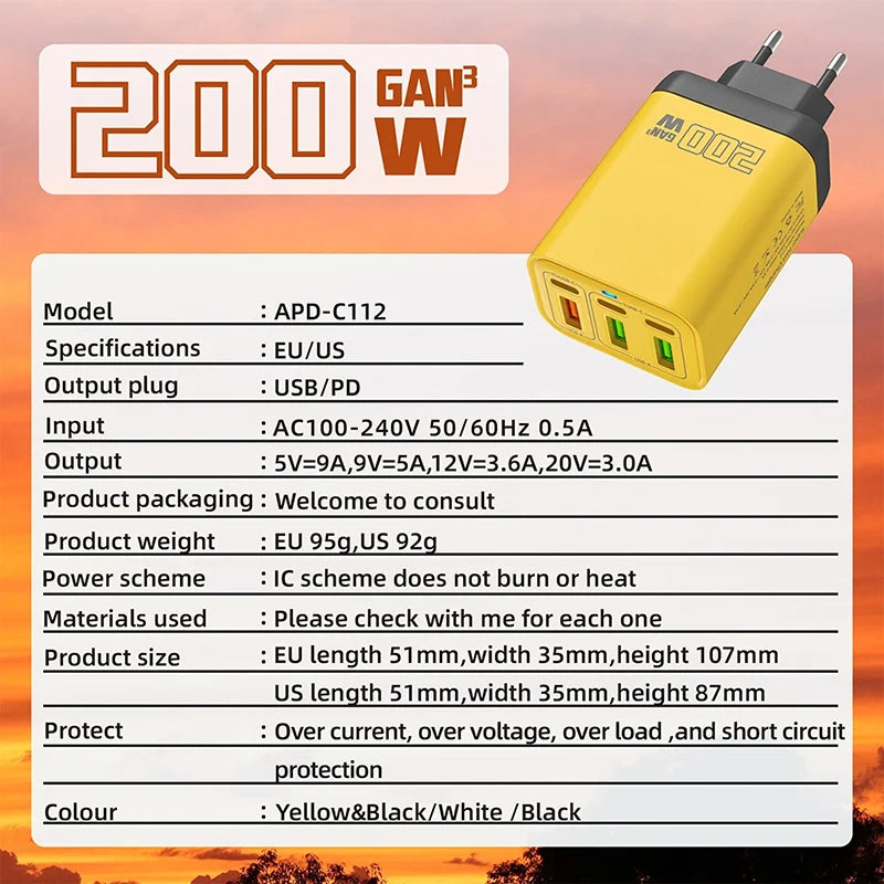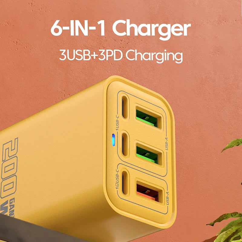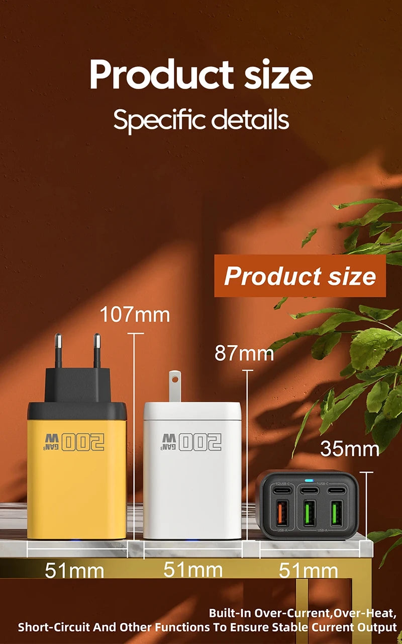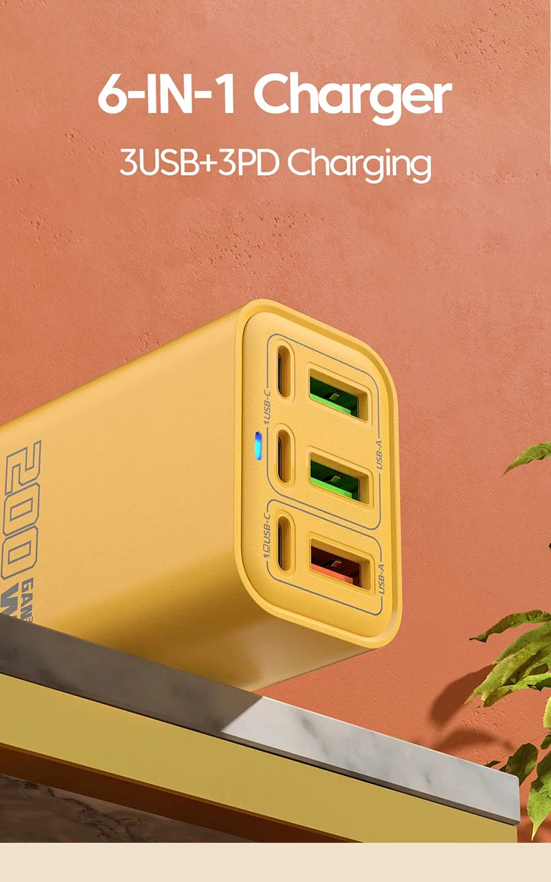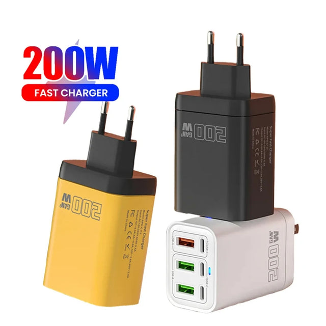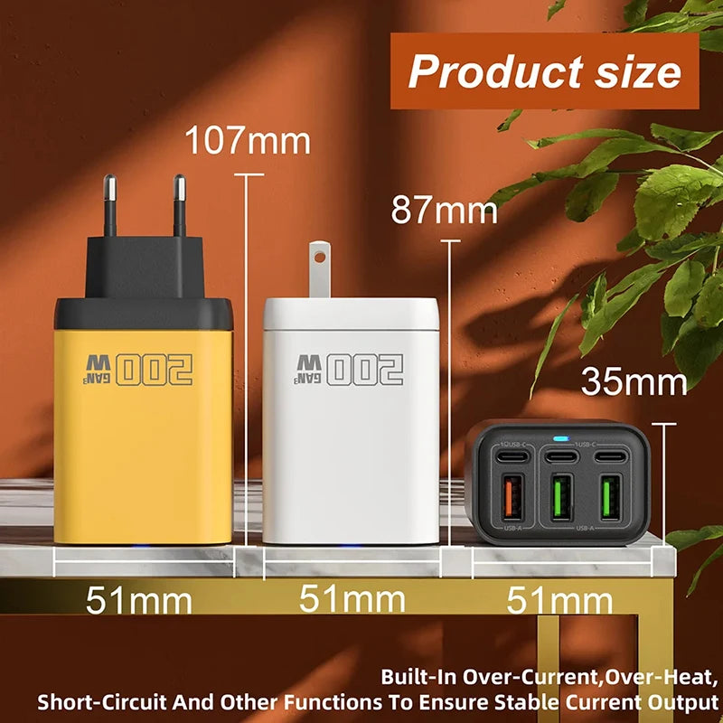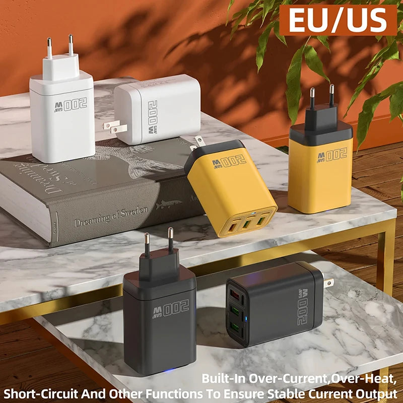 200W-oplader met licht 3A3C-multipoortoplader 5V2.4A-stroomadapter 60W snel