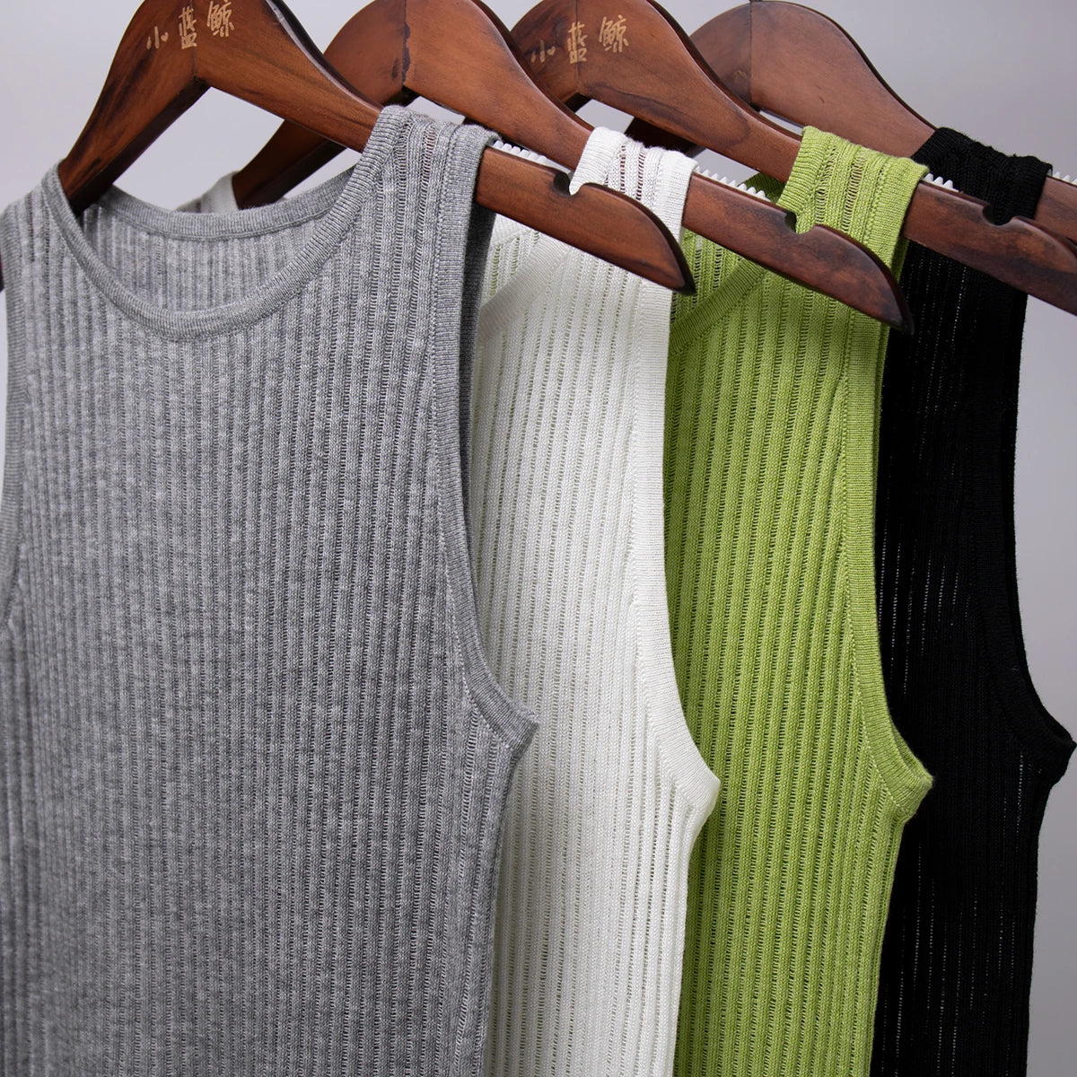 Bornladies Fashion Witte Wol Doorschijnende Dames Tanks Tops Outfit Mouwloos