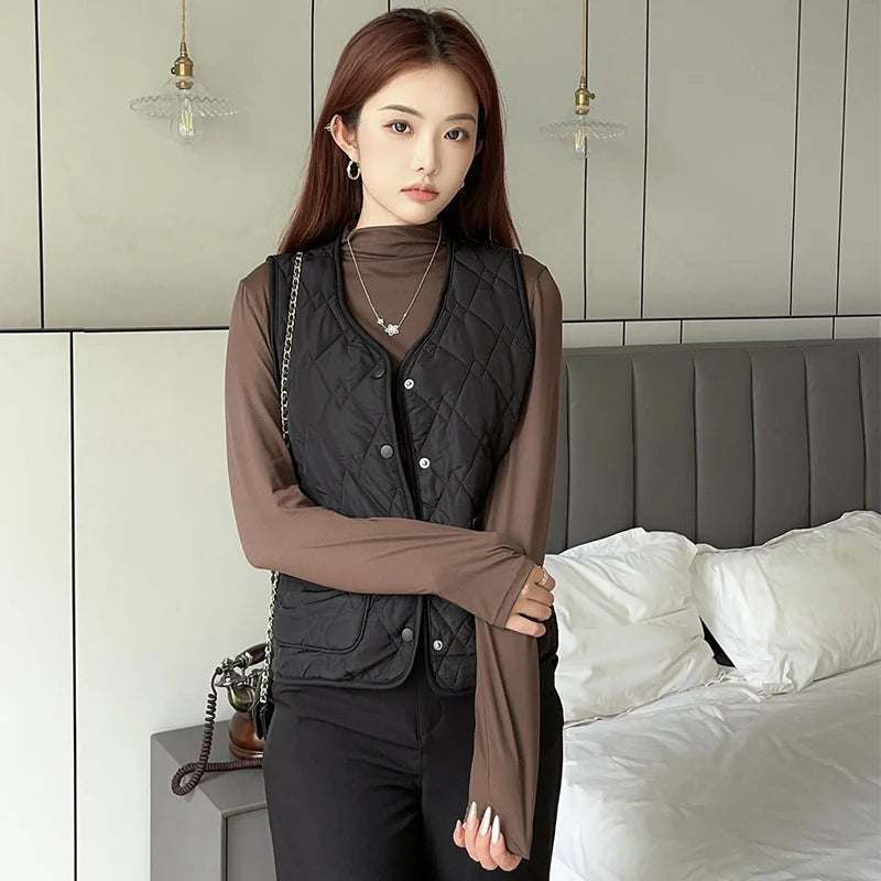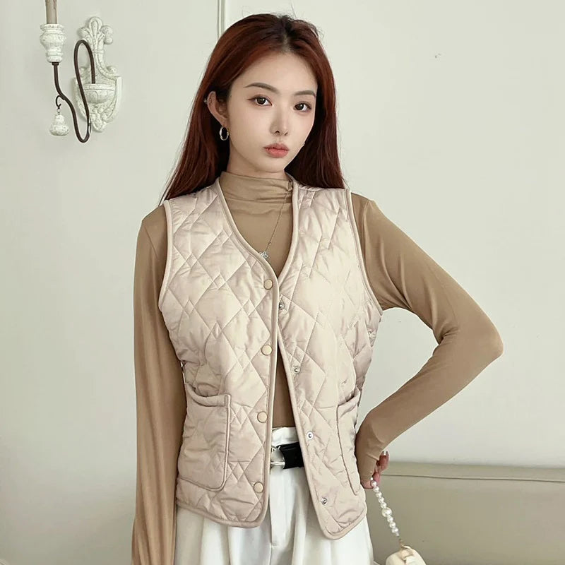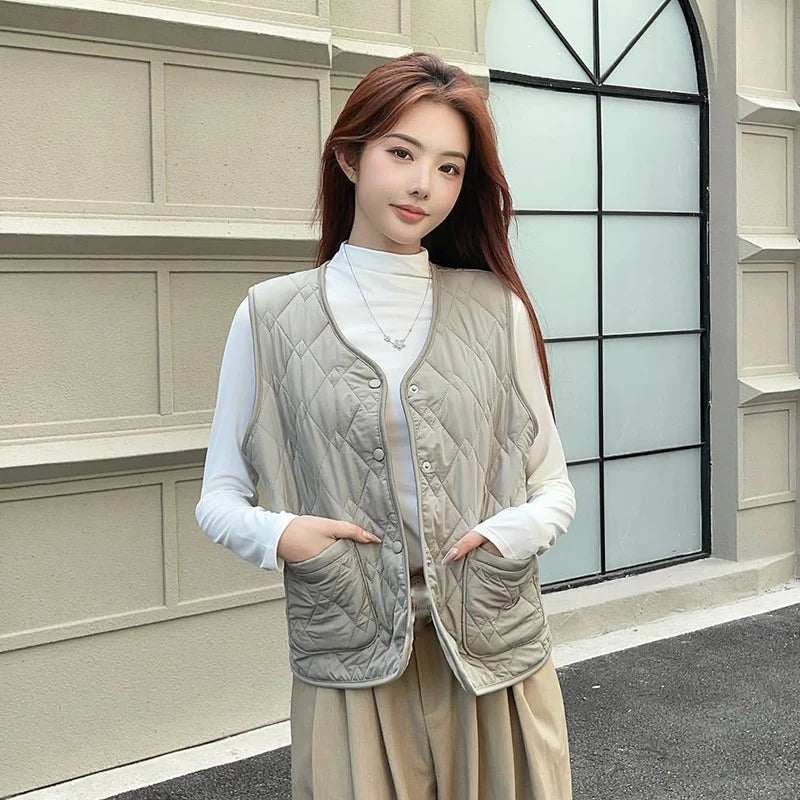 Mode enkelrijs katoenen vest dames herfst winter V-hals mouwloos katoen