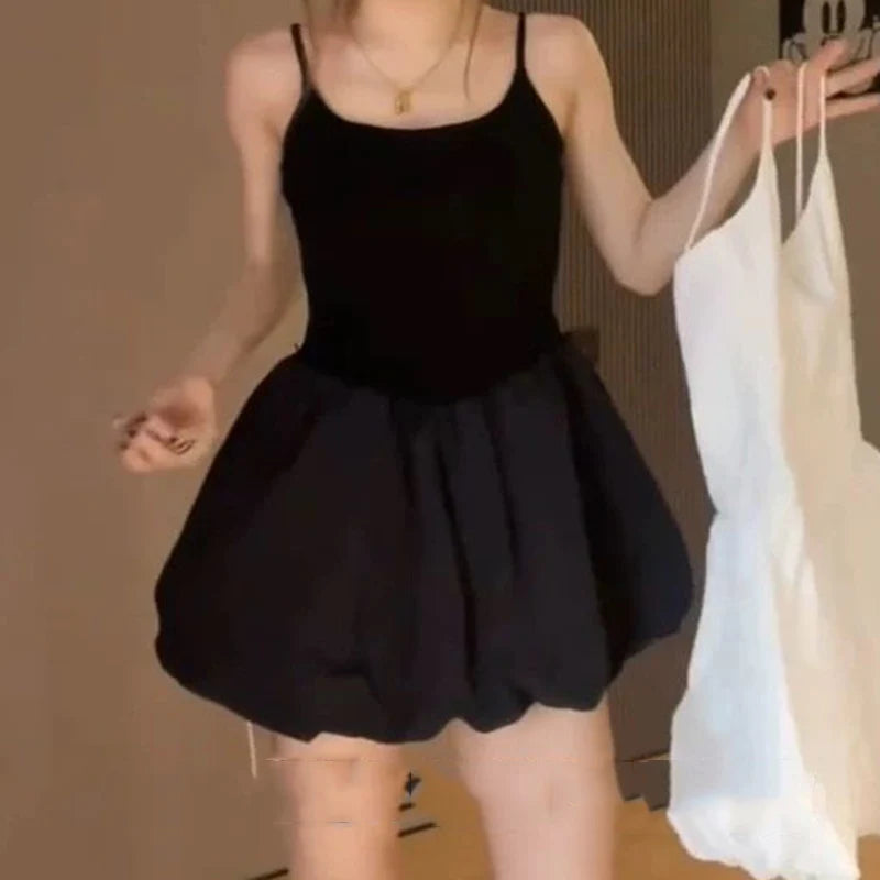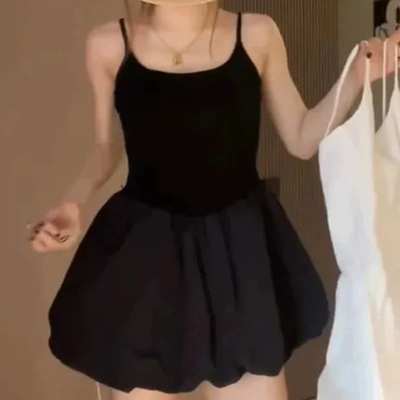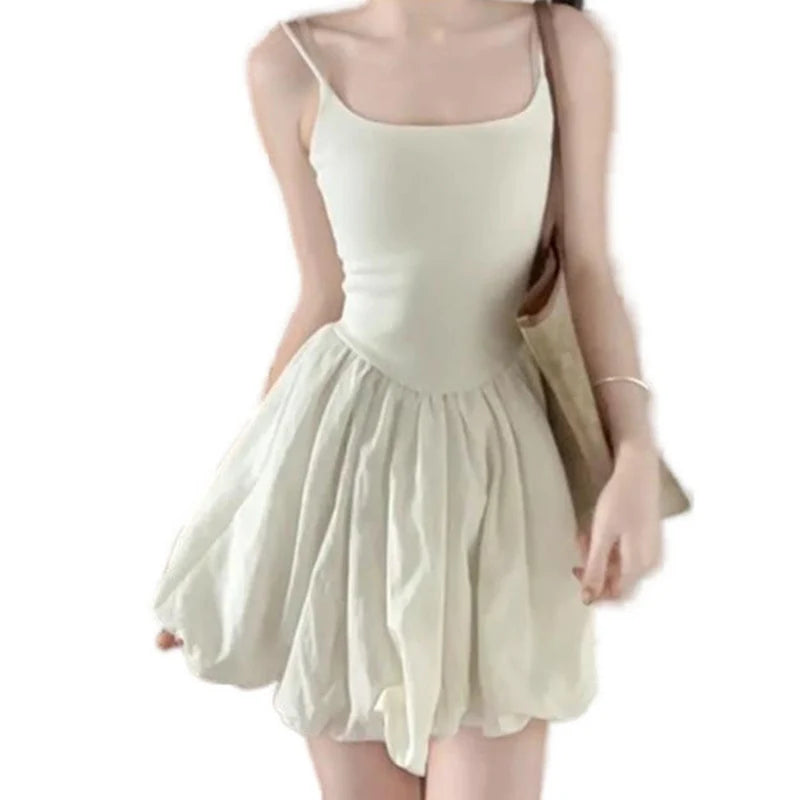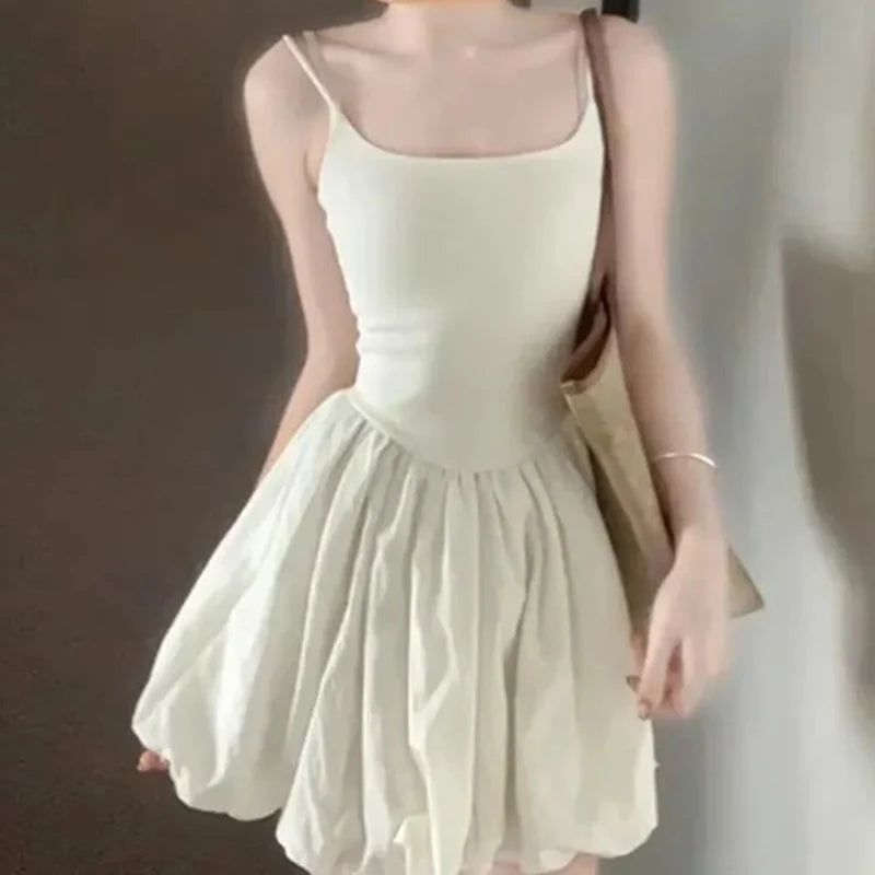 Franse effen ruche korte jurk voor vrouwen elegante spaghettibandjes slanke j...