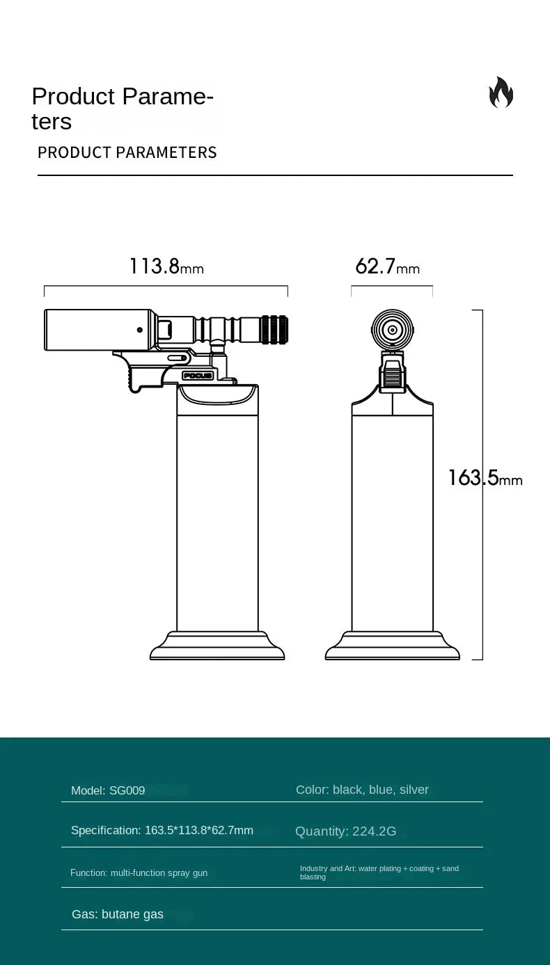 Krachtig metaallaspistool, winddichte blauwe vlam, gasaansteker voor buiten