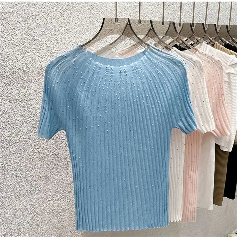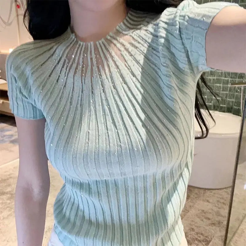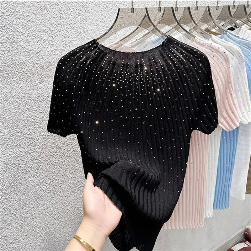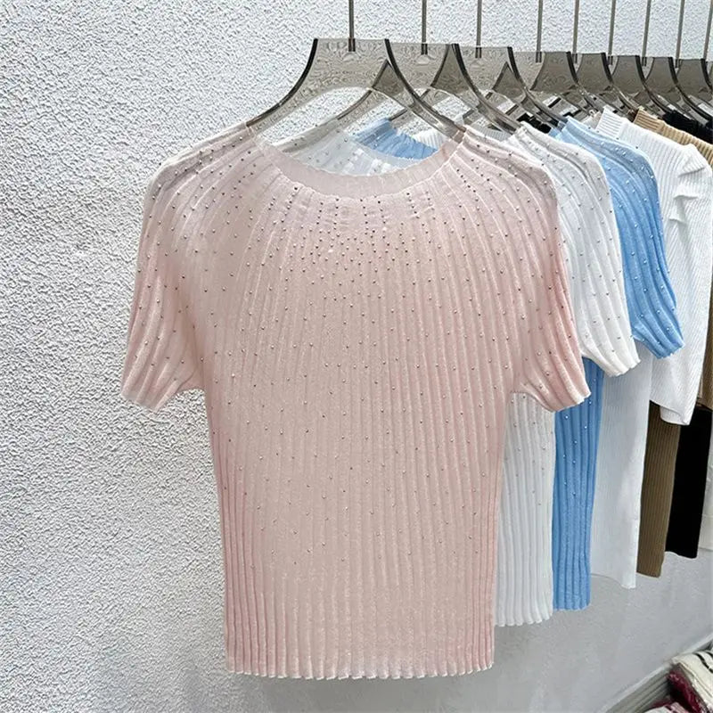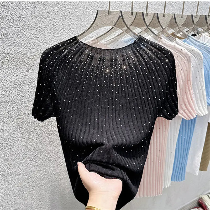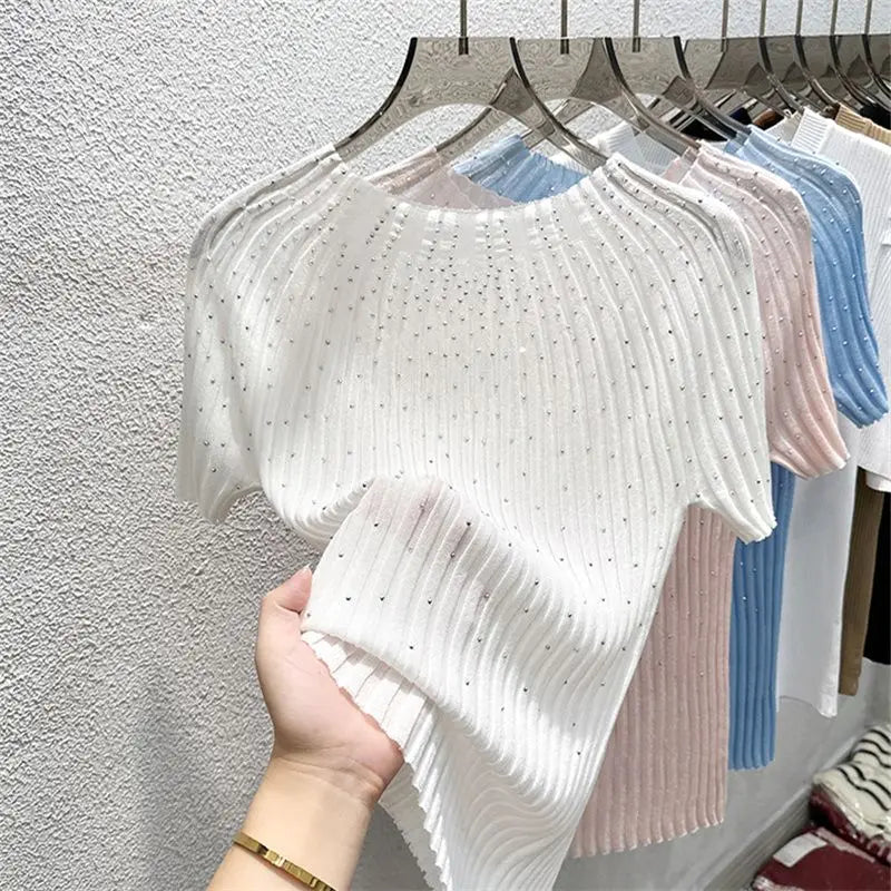 Slanke Diamond Ice Silk dunne trui top voor vrouwen Sweet Girl Slim en slank